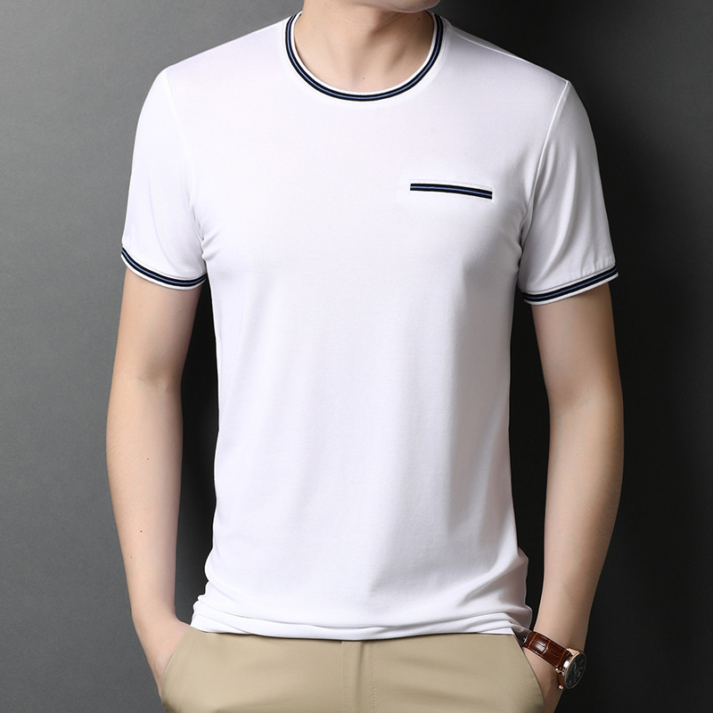 Áo thun ngắn tay dành cho nam, thiết kế dạng cổ tròn mặc liền. Sản phẩm có pha sợi tơ tự nhiên, mang lại cảm giác mát mẻ và nhẹ nhàng khi mặc. Kiểu dáng trẻ trung, đường may nổi bật tạo điểm nhấn tinh tế. Bề mặt vải mịn mang đến vẻ ngoài chỉn chu. Dễ dàng phối hợp với nhiều loại trang phục khác nhau, phù hợp cho những ngày hè oi bức. Giặt máy nhẹ nhàng để giữ form áo và chất vải được bền lâu. | Tên sản phẩm: Áo Thun Nam Chất Liệu Lụa Tơ Tằm Ngắn Tay Hàng Mùa Hè Phong Cách Trẻ Trung - Thời Trang Nam | Mã sản phẩm: B7896 - Giá: 720.000đ | Mã nhà sản xuất: TOREGS-G02Hình ảnh sản phẩm