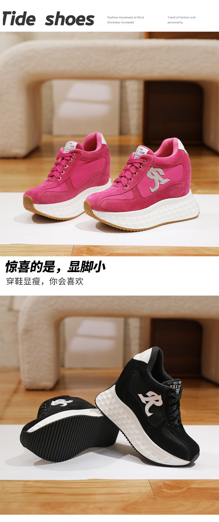 Đôi giày này có phần đế dày được thiết kế bên trong, giúp tăng chiều cao một cách tinh tế, phù hợp cho những có dáng người nhỏ. Phong cách dễ chịu lấy cảm hứng từ Hàn Quốc, kết hợp các mảng màu nhẹ nhàng tạo nên vẻ năng động. Bạn có thể dùng nó cho nhiều hoạt động thường ngày như đi dạo, tập thể dục nhẹ hay gặp gỡ bạn bè. Chất liệu nhẹ mang lại cảm giác thoải mái cho đôi chân trong suốt thời gian dài sử dụng. | Tên sản phẩm: Giày Thể Thao Nữ Tăng Chiều Cao Đế Cao - Giày Dép Nữ | Mã sản phẩm: B7899 - Giá: 1.830.000đ | Mã nhà sản xuất: QIDNG-G05Hình ảnh sản phẩm
