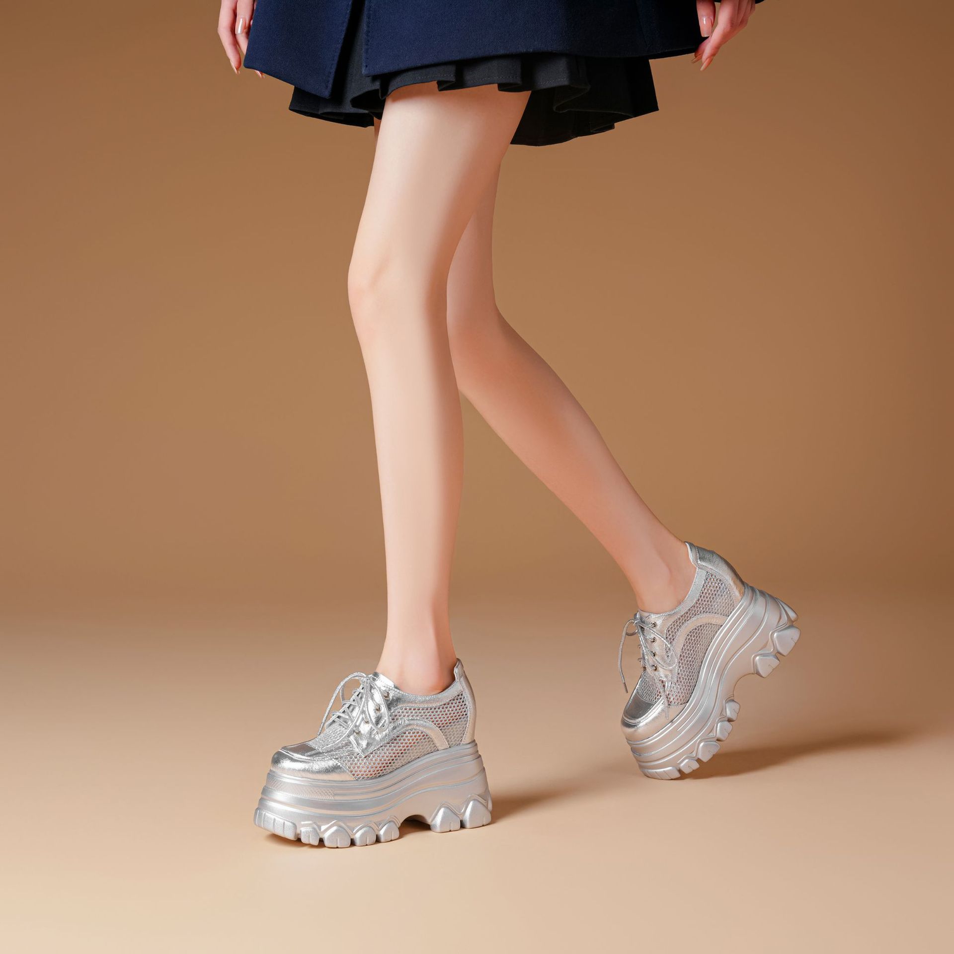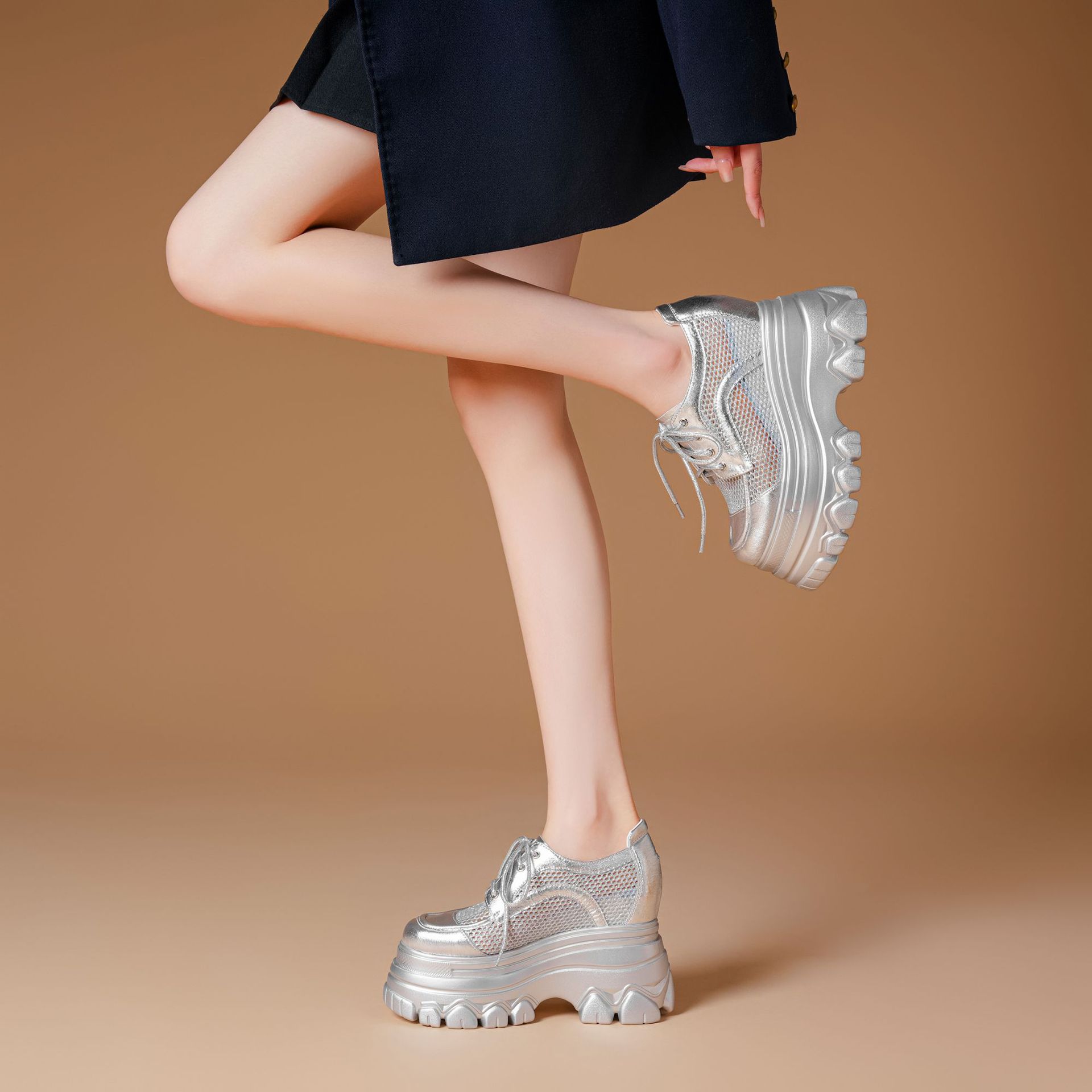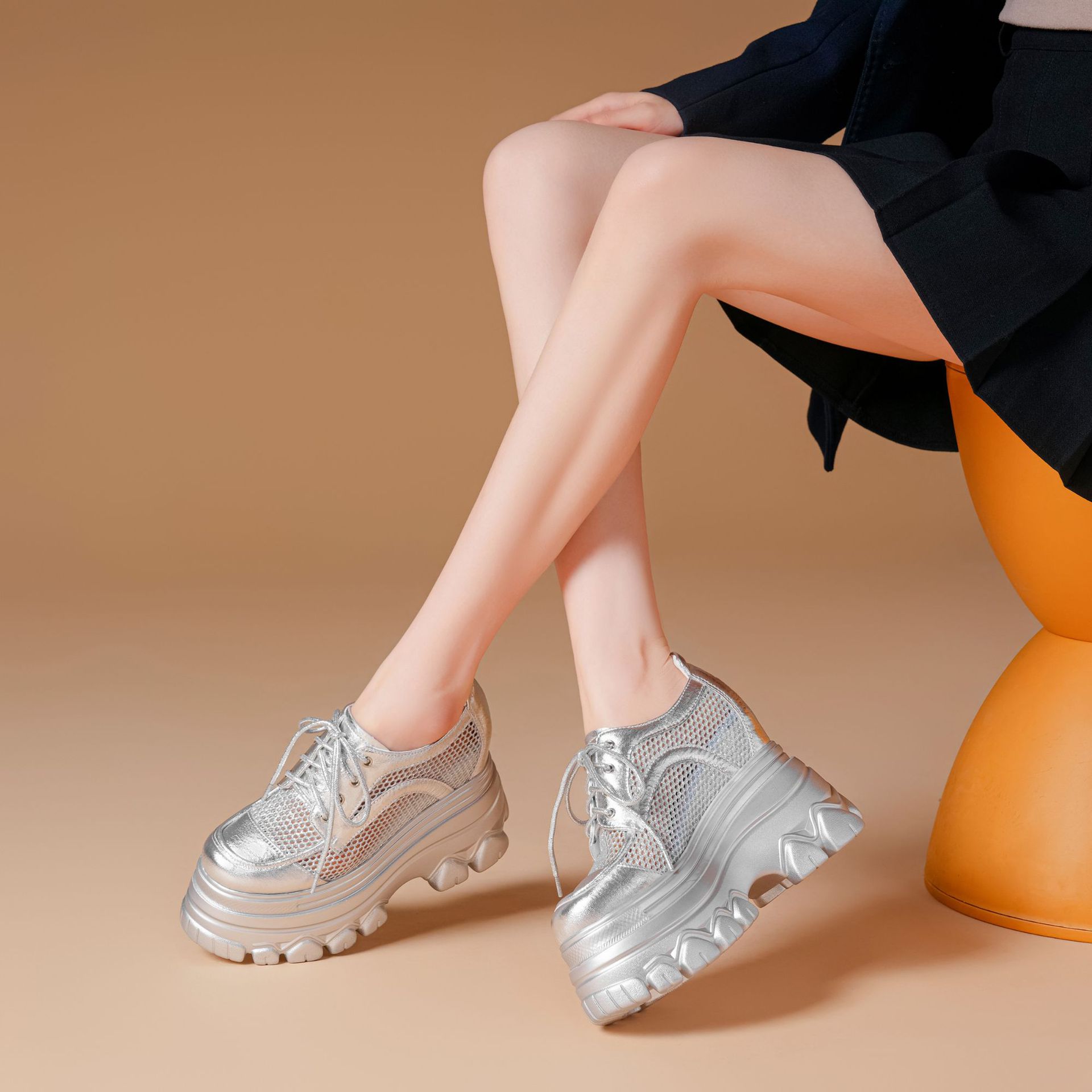 Đôi giày này có phần đế dày bên trong giúp tăng chiều cao lên đến mười hai phân. Chất vải lưới nhẹ và mềm tạo cảm giác thoáng mát, dễ chịu khi mang. Kiểu dáng kết hợp giữa giày thể thao năng động và dáng giày đế xuồng. Bề mặt phối màu hồng tươi sáng với chất liệu bóng mịn. Bạn chỉ cần xỏ chân vào và điều chỉnh dây giày hoặc khóa dán cho vừa vặn, phù hợp cho những lúc đi dạo hoặc sinh hoạt hằng ngày. | Tên sản phẩm: Giày Cao Gót Nữ Chất Liệu Vải Lưới Cao 12cm Tăng Chiều Cao Thoáng Khí Đế Cao - Giày Dép Nữ | Mã sản phẩm: B7924 - Giá: 1.830.000đ | Mã nhà sản xuất: QIDNG-G05Hình ảnh sản phẩm