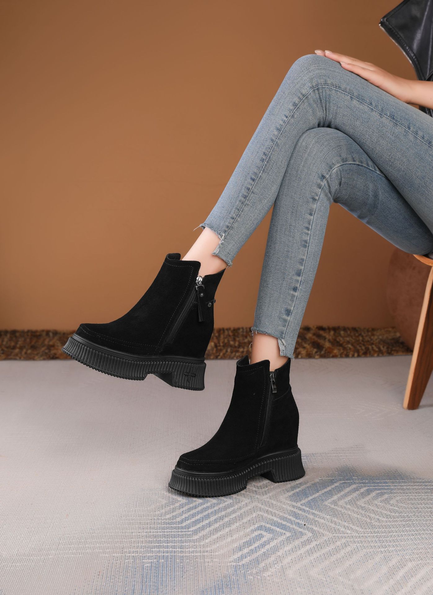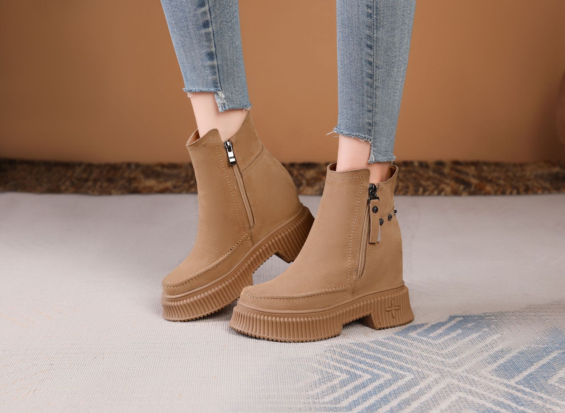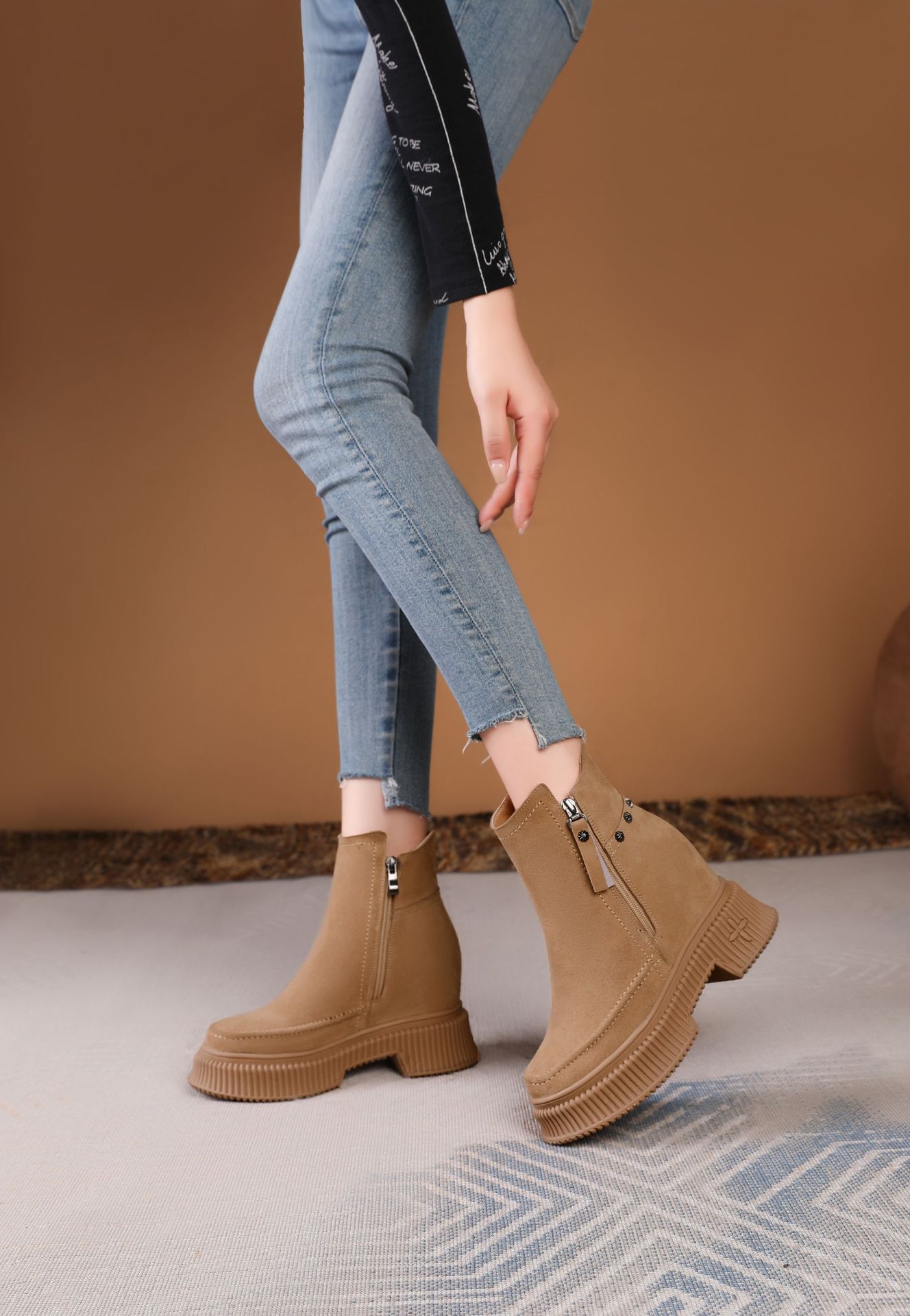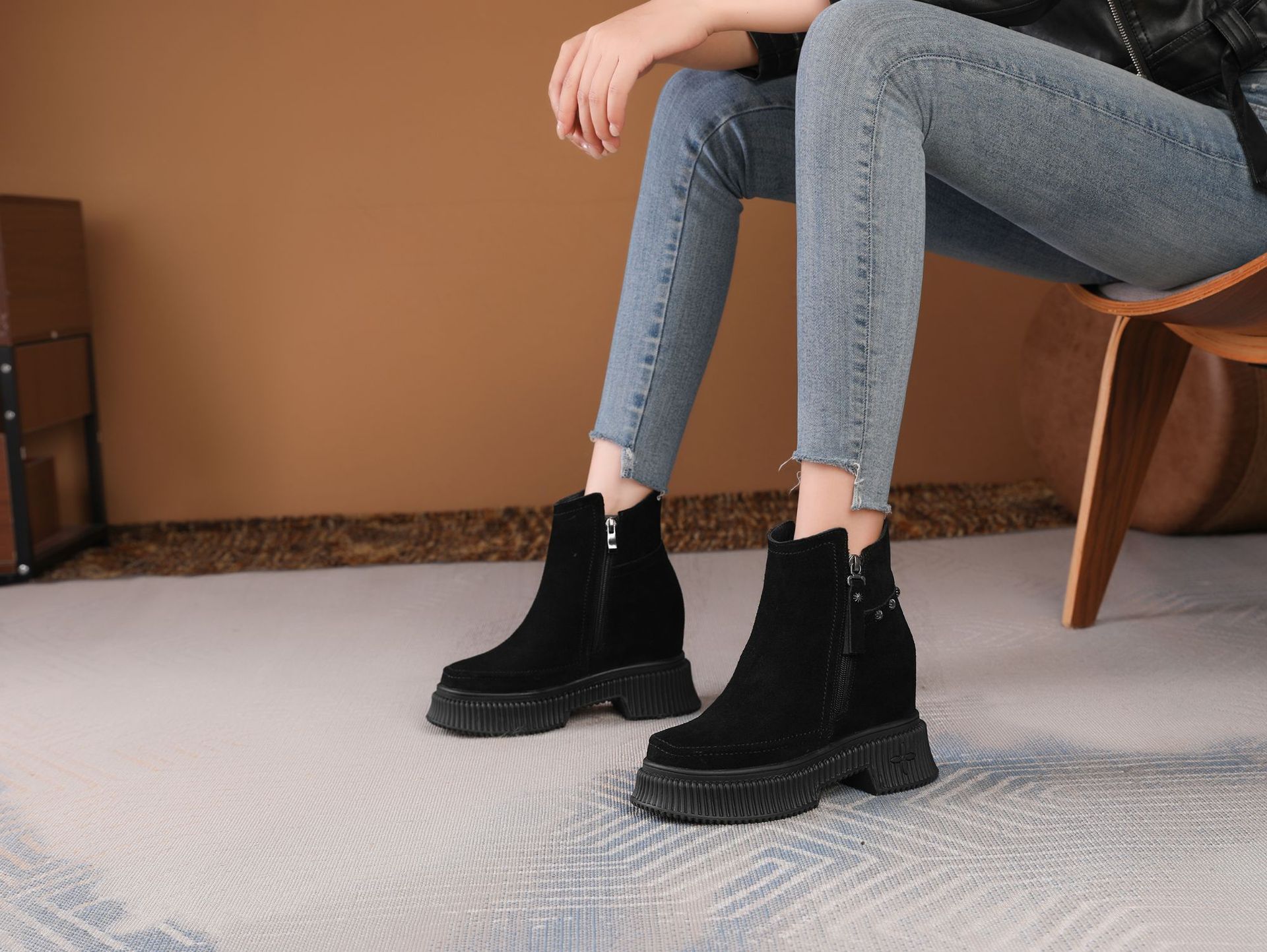 Đôi bốt cổ thấp này có điểm nhấn là phần đế dày bên trong, giúp tăng chiều cao một cách tự nhiên. Kiểu dáng mang phong cách cổ điển châu Âu, kết hợp khóa kéo bên hông cho việc mang vào dễ dàng. Sản phẩm thích hợp dùng trong mùa thu đông, phối hợp cùng nhiều loại trang phục khác nhau để tạo vẻ ngoài năng động. Chỉ cần xỏ chân vào và kéo khóa là bạn đã sẵn sàng để bước ra ngoài. | Tên sản phẩm: Boot Cổ Thấp Nữ Cao 10cm Tăng Chiều Cao Đế Cao Hàng Mùa Xuân Thu Đông Phục Cổ Cổ Điển - Giày Dép Nữ | Mã sản phẩm: B7928 - Giá: 1.730.000đ | Mã nhà sản xuất: QIDNG-G05Hình ảnh sản phẩm