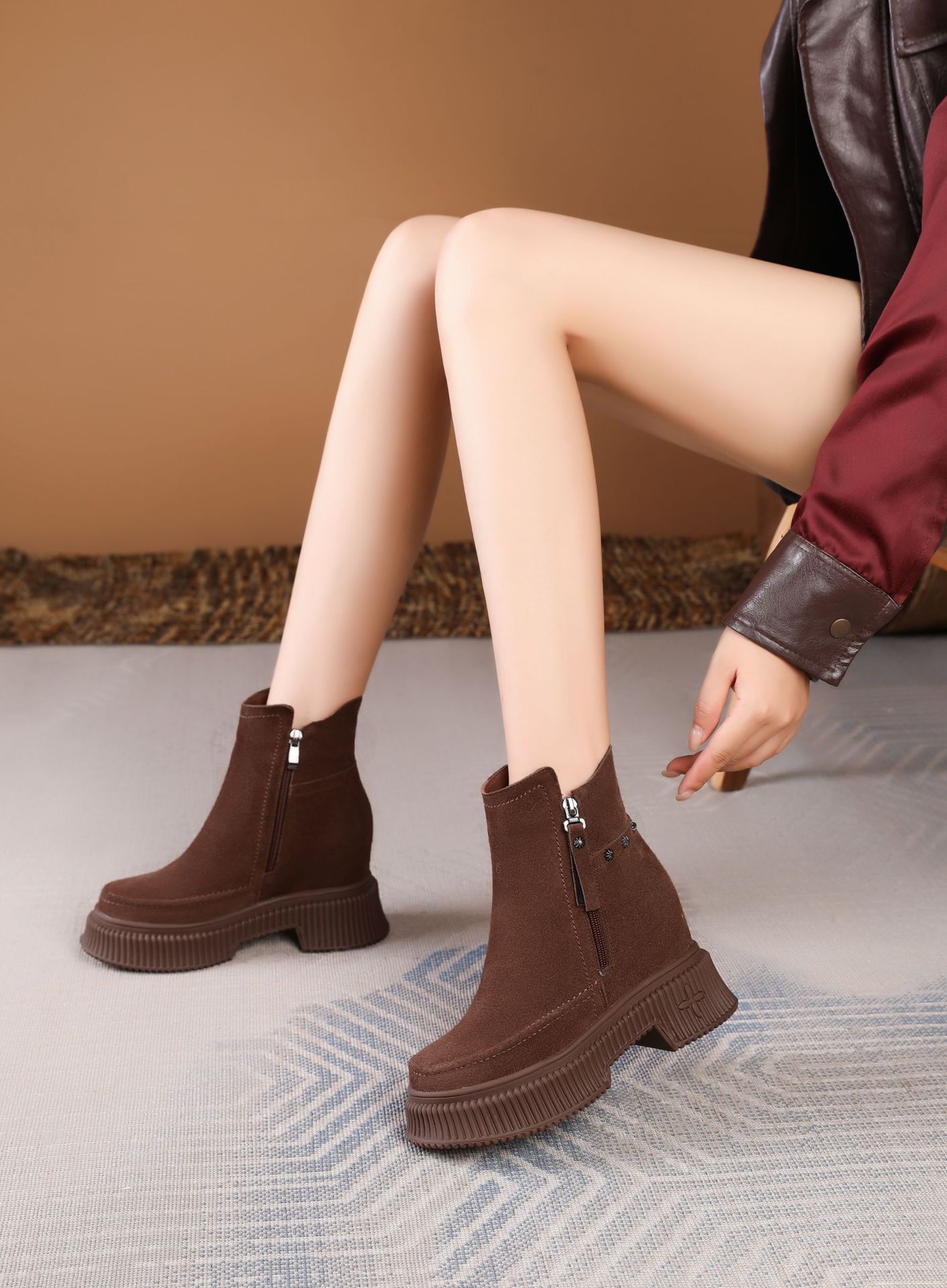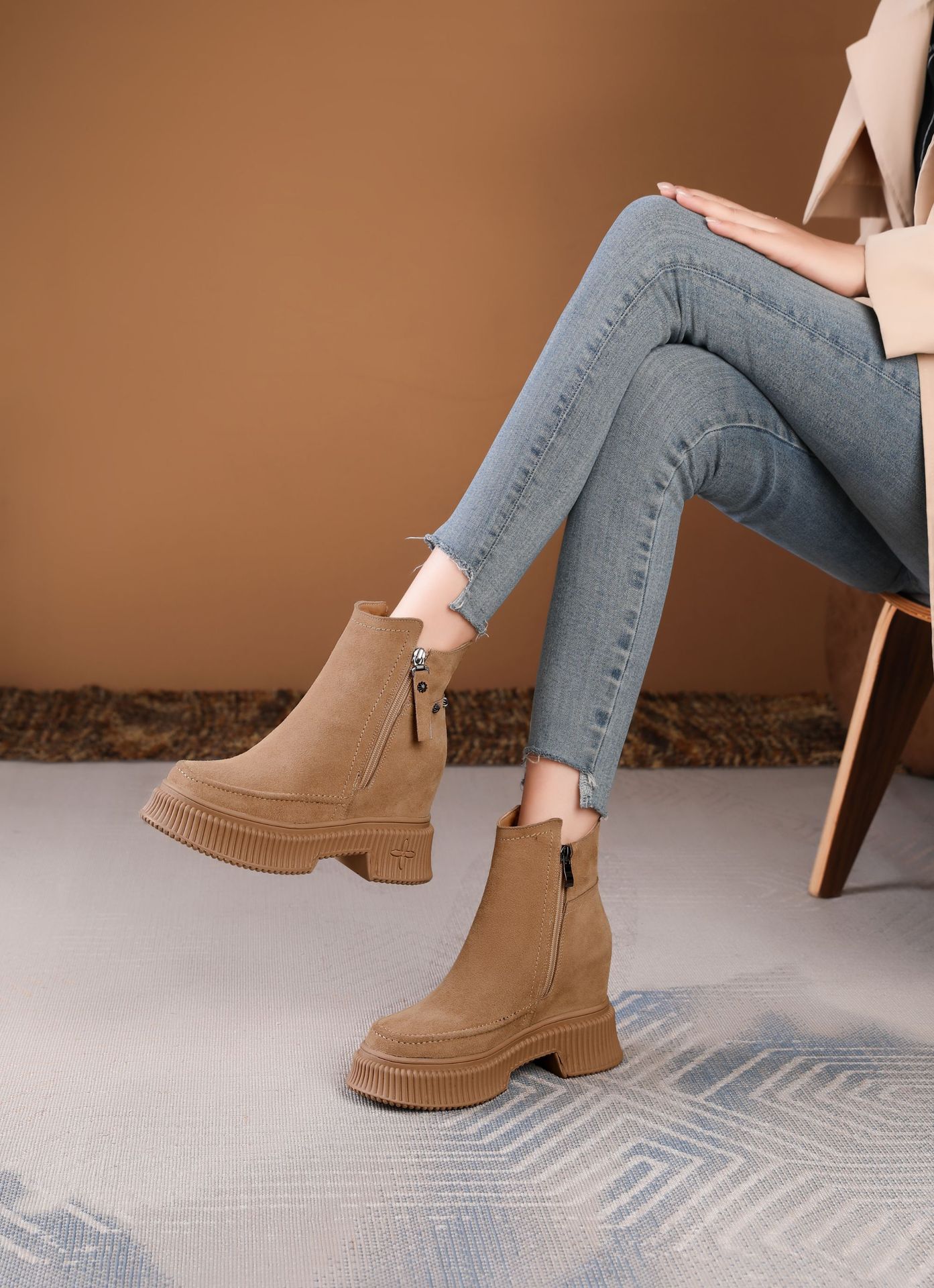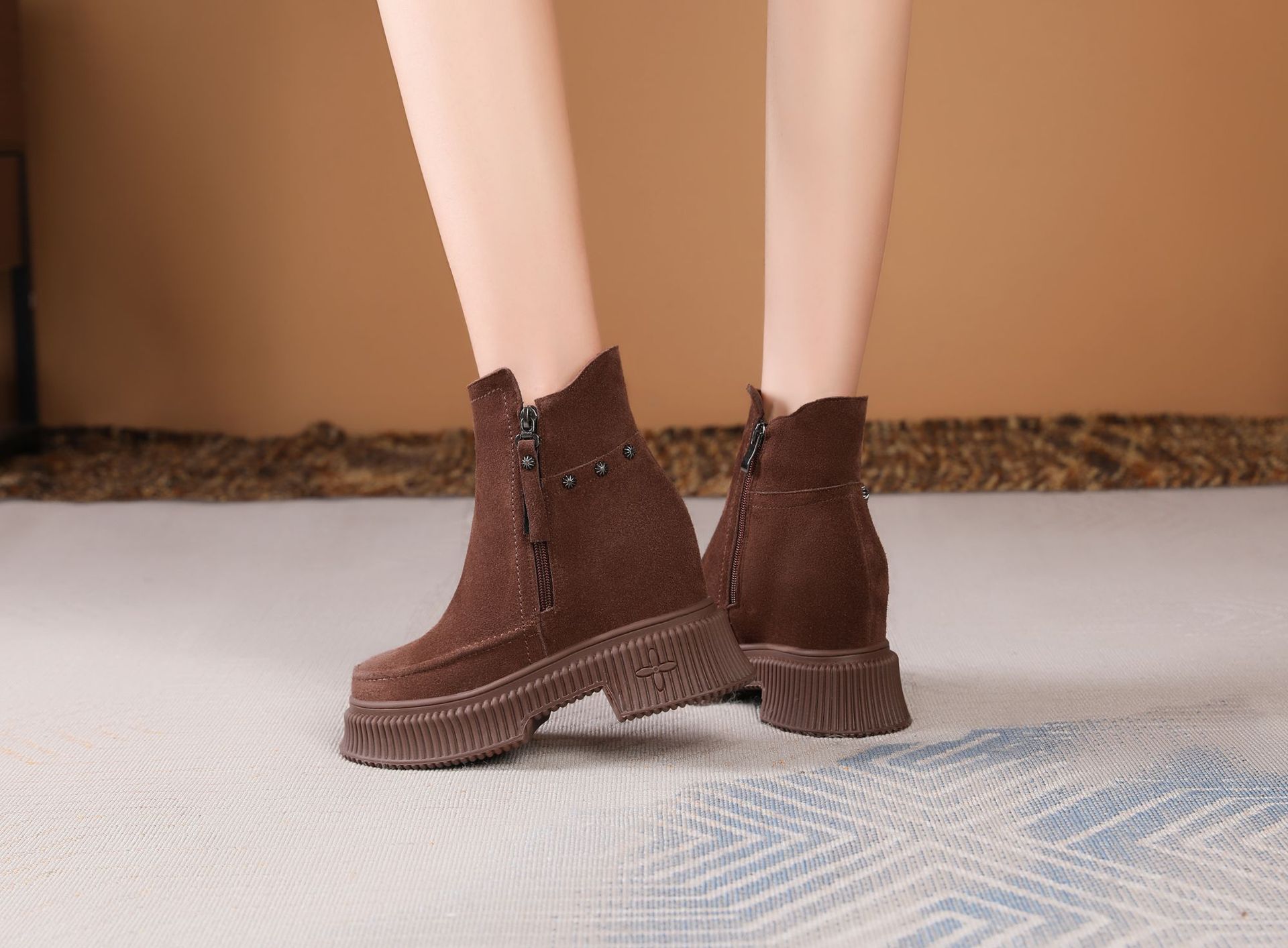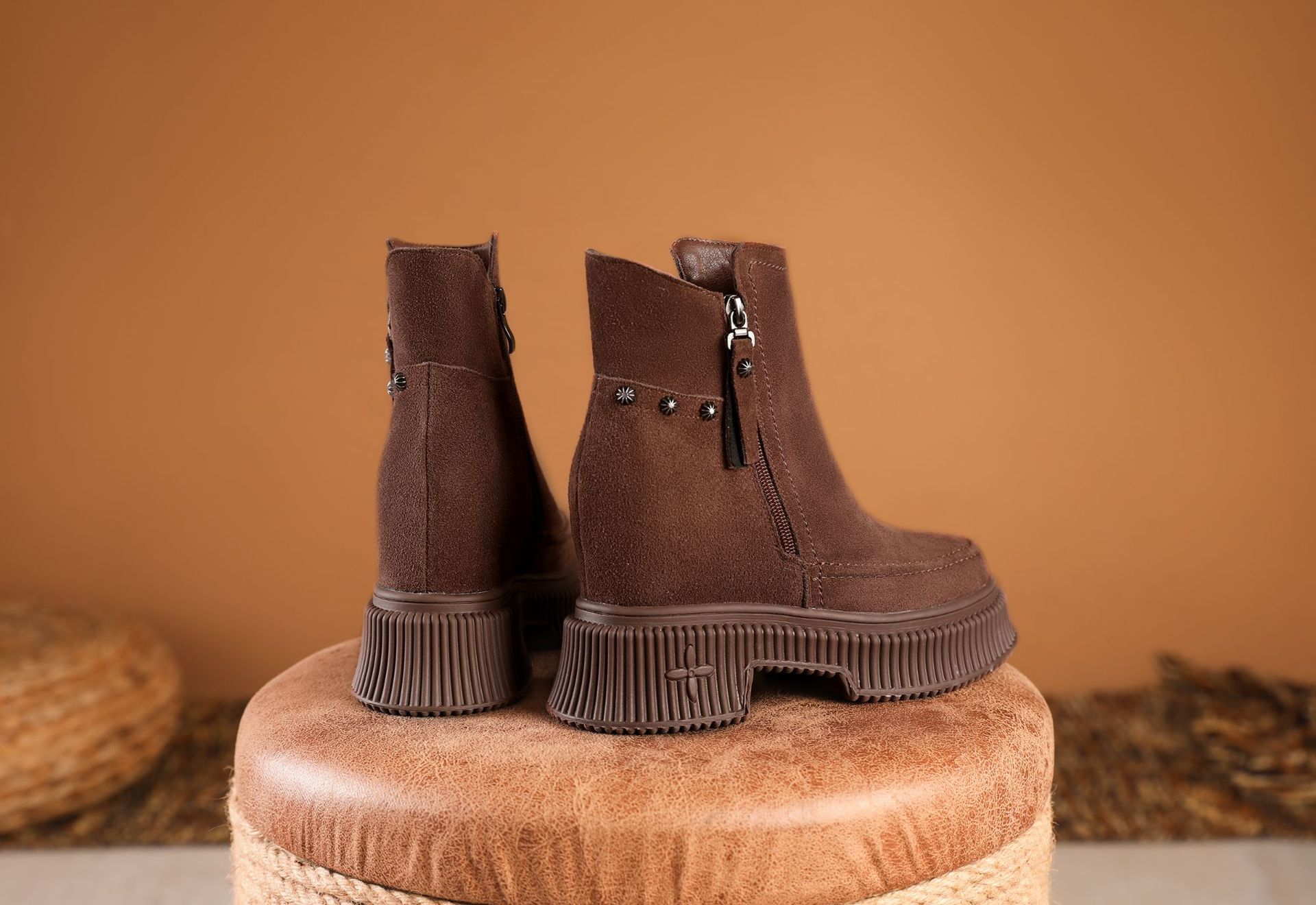 Đôi bốt cổ thấp này có điểm nhấn là phần đế dày bên trong, giúp tăng chiều cao một cách tự nhiên. Kiểu dáng mang phong cách cổ điển châu Âu, kết hợp khóa kéo bên hông cho việc mang vào dễ dàng. Sản phẩm thích hợp dùng trong mùa thu đông, phối hợp cùng nhiều loại trang phục khác nhau để tạo vẻ ngoài năng động. Chỉ cần xỏ chân vào và kéo khóa là bạn đã sẵn sàng để bước ra ngoài. | Tên sản phẩm: Boot Cổ Thấp Nữ Cao 10cm Tăng Chiều Cao Đế Cao Hàng Mùa Xuân Thu Đông Phục Cổ Cổ Điển - Giày Dép Nữ | Mã sản phẩm: B7928 - Giá: 1.730.000đ | Mã nhà sản xuất: QIDNG-G05Hình ảnh sản phẩm