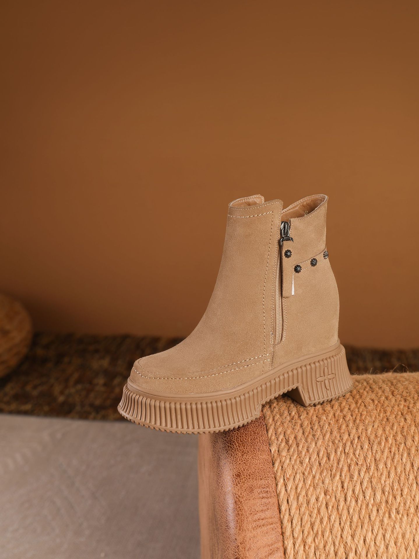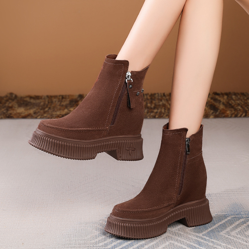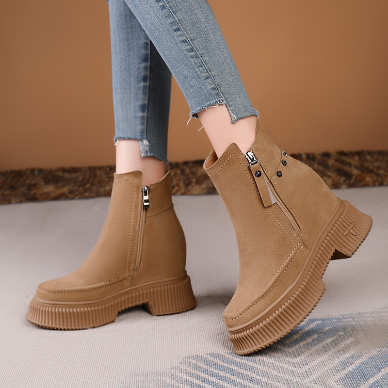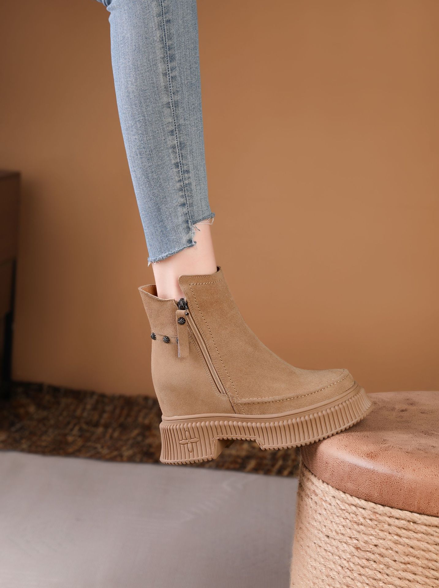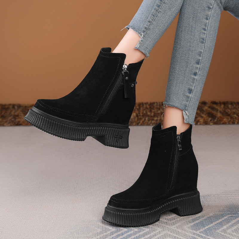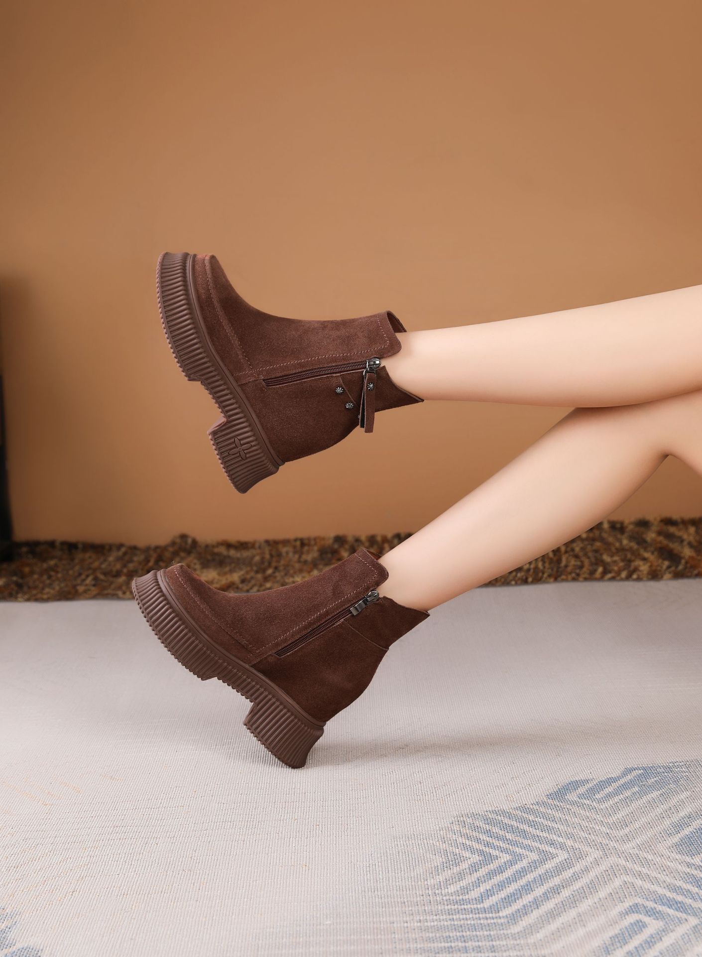 Đôi bốt cổ thấp này có điểm nhấn là phần đế dày bên trong, giúp tăng chiều cao một cách tự nhiên. Kiểu dáng mang phong cách cổ điển châu Âu, kết hợp khóa kéo bên hông cho việc mang vào dễ dàng. Sản phẩm thích hợp dùng trong mùa thu đông, phối hợp cùng nhiều loại trang phục khác nhau để tạo vẻ ngoài năng động. Chỉ cần xỏ chân vào và kéo khóa là bạn đã sẵn sàng để bước ra ngoài. | Tên sản phẩm: Boot Cổ Thấp Nữ Cao 10cm Tăng Chiều Cao Đế Cao Hàng Mùa Xuân Thu Đông Phục Cổ Cổ Điển - Giày Dép Nữ | Mã sản phẩm: B7928 - Giá: 1.730.000đ | Mã nhà sản xuất: QIDNG-G05Hình ảnh sản phẩm