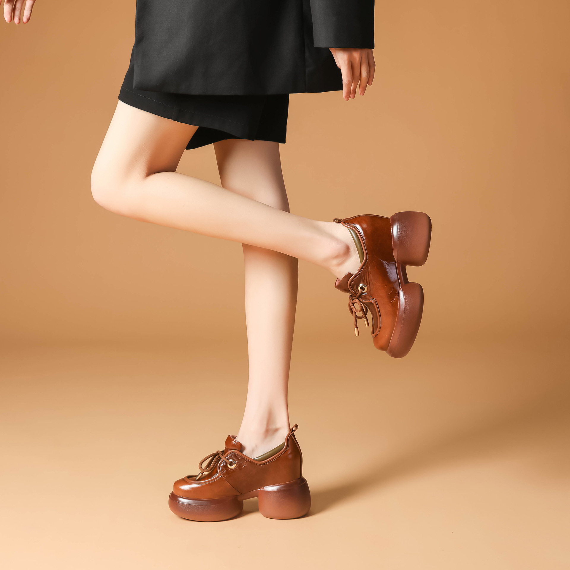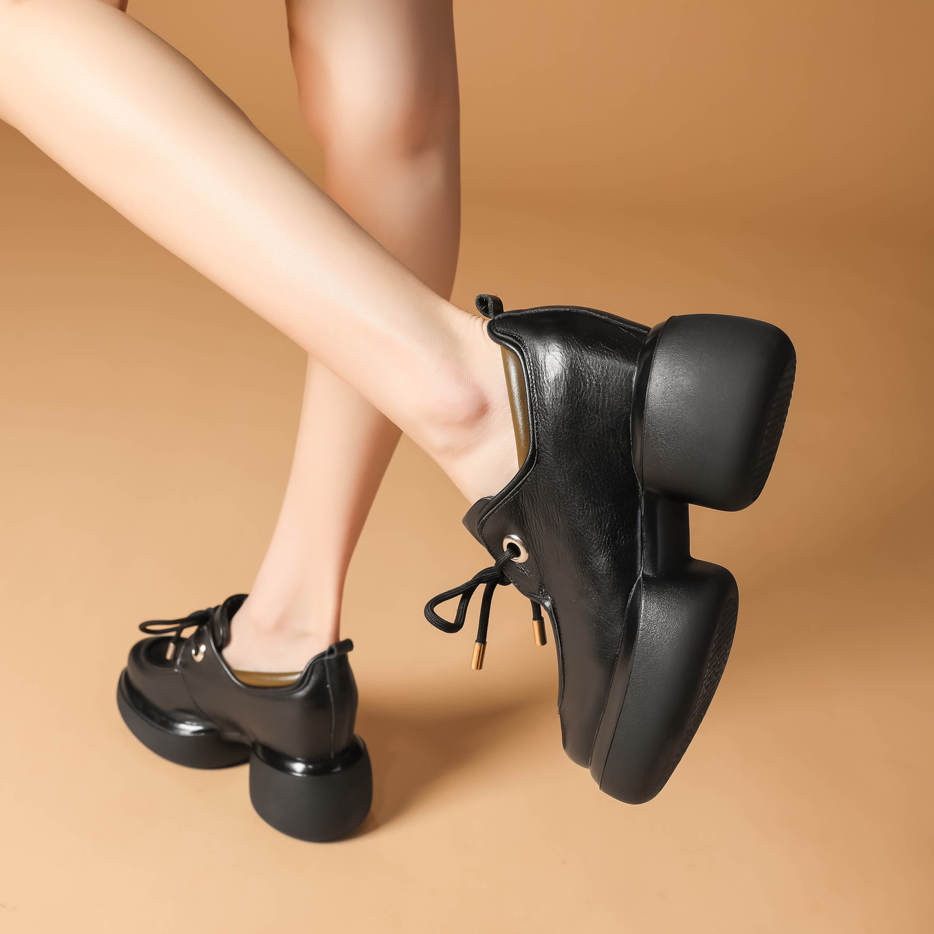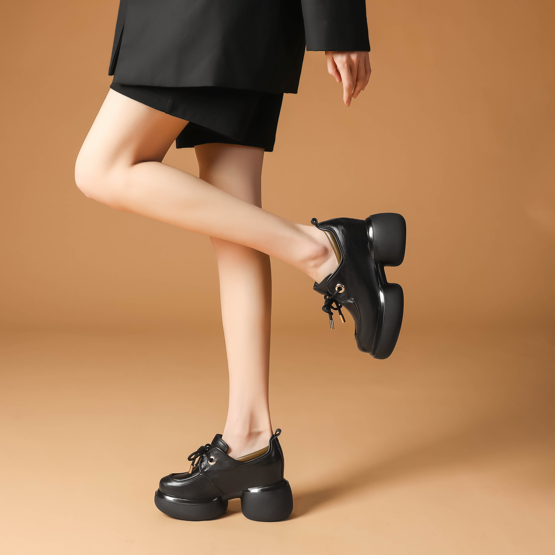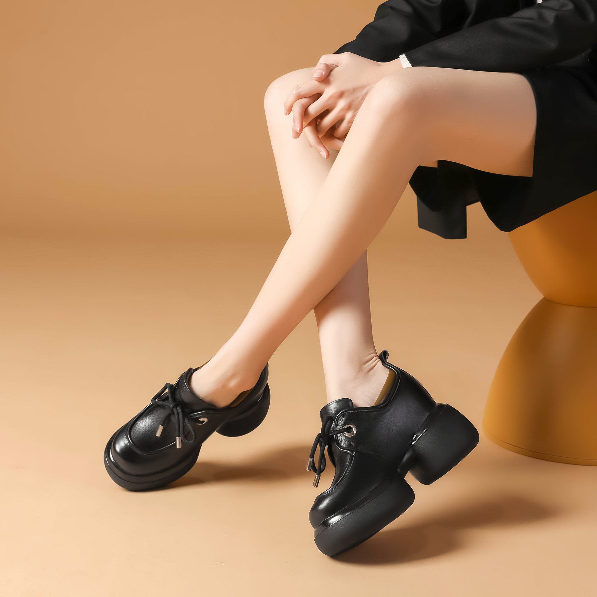 Đôi giày da này mang phong cách cổ điển châu Âu, với phần đế dày vừa phải giúp tăng chiều cao một cách tinh tế. Thiết kế có dây cột tạo điểm nhấn, kết hợp cùng phần gót chắc chắn. Kiểu dáng dễ dàng phối hợp với nhiều trang phục khác nhau như quần jeans, váy hay quần âu. Sản phẩm phù hợp cho những dịp đi làm, đi học hoặc dạo phố. Bạn chỉ cần xỏ chân vào, điều chỉnh dây và thắt nút cho vừa vặn là đã có ngay một phong cách thời trang. | Tên sản phẩm: Giày Da Nữ Cao 10cm Gót Vuông Đế Cao Hàng Mùa Xuân Thu Đông Phục Cổ Cổ Điển - Giày Dép Nữ | Mã sản phẩm: B7931 - Giá: 1.730.000đ | Mã nhà sản xuất: QIDNG-G05Hình ảnh sản phẩm