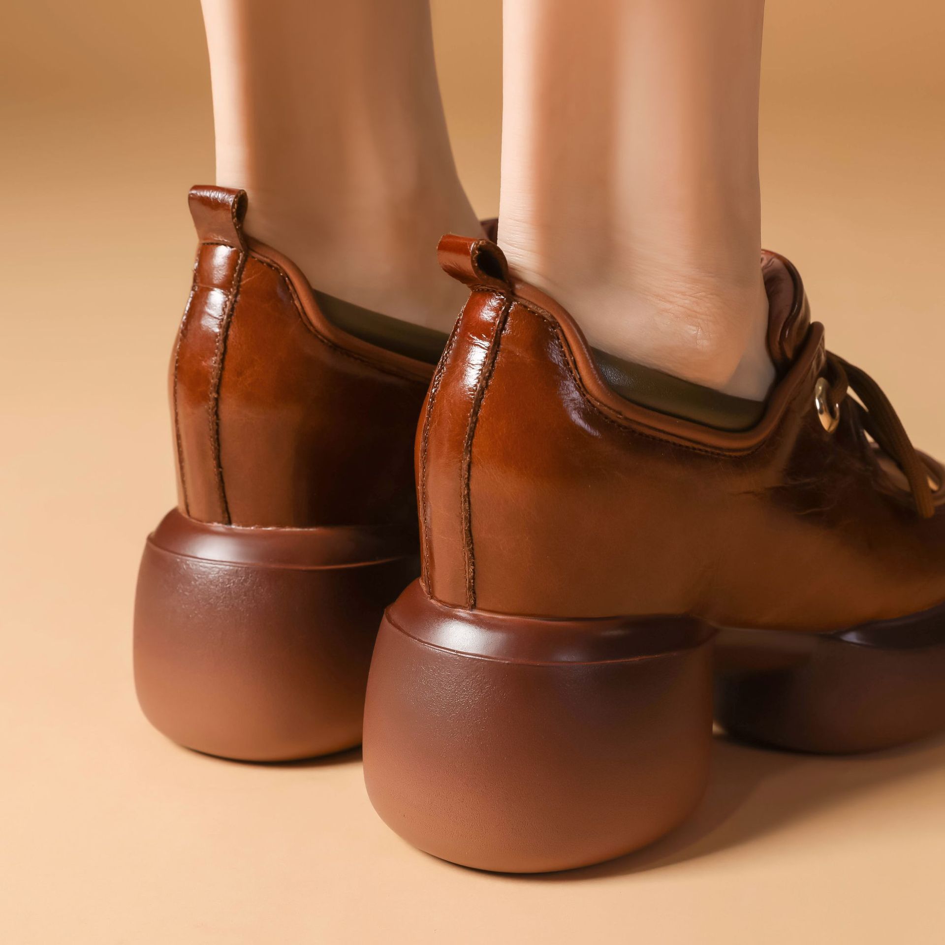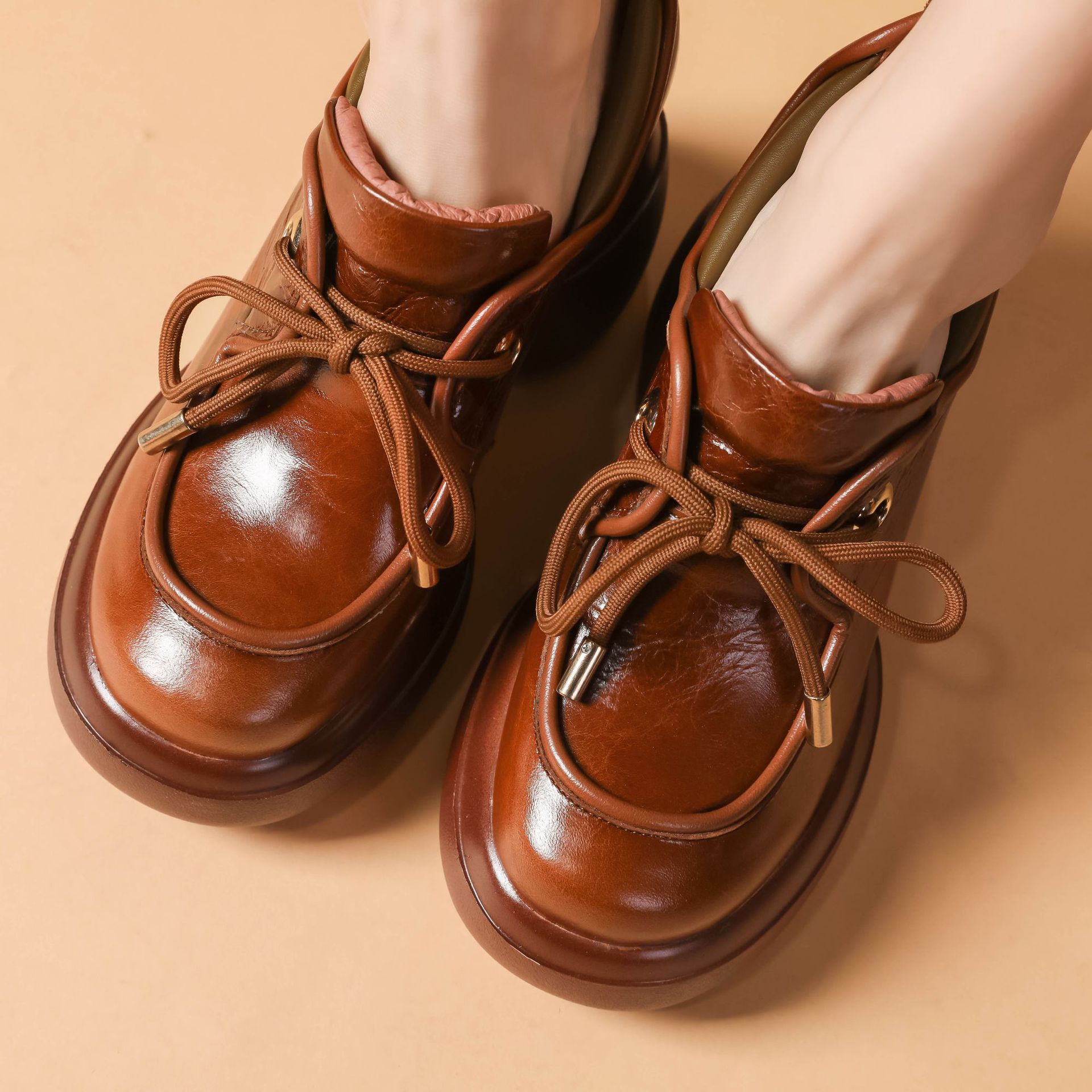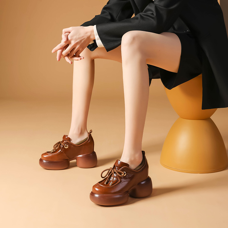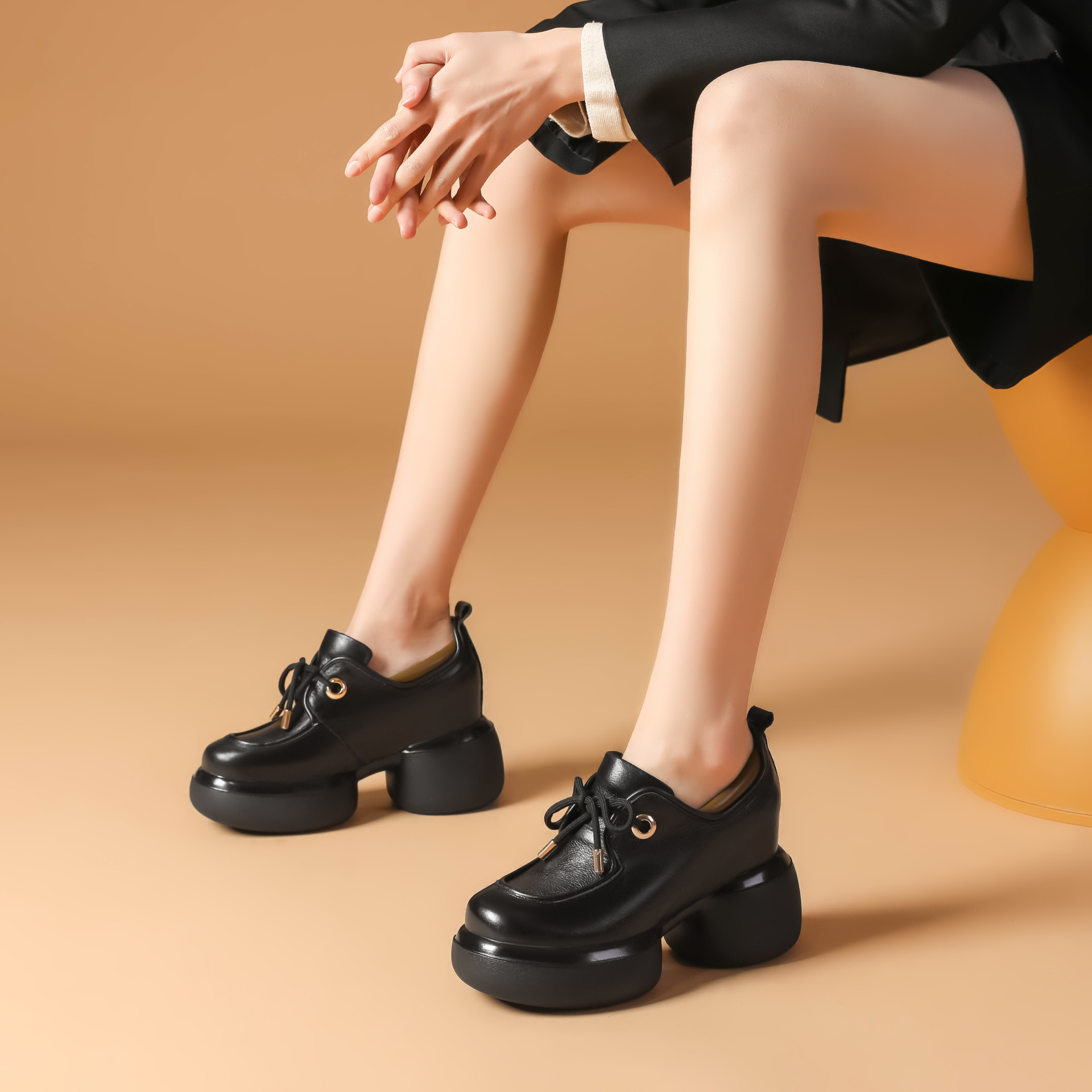Đôi giày da này mang phong cách cổ điển châu Âu, với phần đế dày vừa phải giúp tăng chiều cao một cách tinh tế. Thiết kế có dây cột tạo điểm nhấn, kết hợp cùng phần gót chắc chắn. Kiểu dáng dễ dàng phối hợp với nhiều trang phục khác nhau như quần jeans, váy hay quần âu. Sản phẩm phù hợp cho những dịp đi làm, đi học hoặc dạo phố. Bạn chỉ cần xỏ chân vào, điều chỉnh dây và thắt nút cho vừa vặn là đã có ngay một phong cách thời trang. | Tên sản phẩm: Giày Da Nữ Cao 10cm Gót Vuông Đế Cao Hàng Mùa Xuân Thu Đông Phục Cổ Cổ Điển - Giày Dép Nữ | Mã sản phẩm: B7931 - Giá: 1.730.000đ | Mã nhà sản xuất: QIDNG-G05Hình ảnh sản phẩm