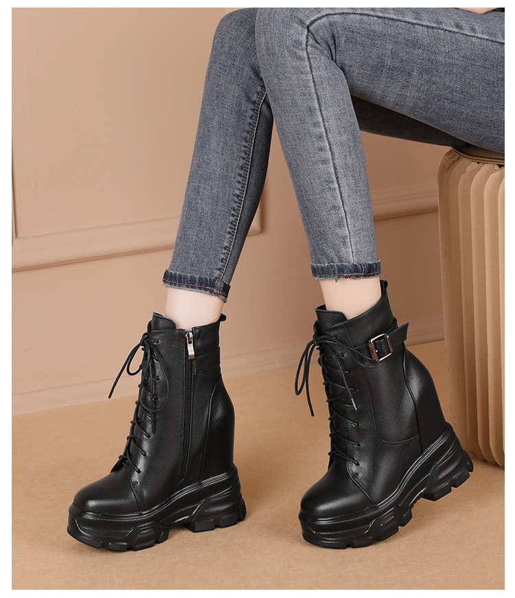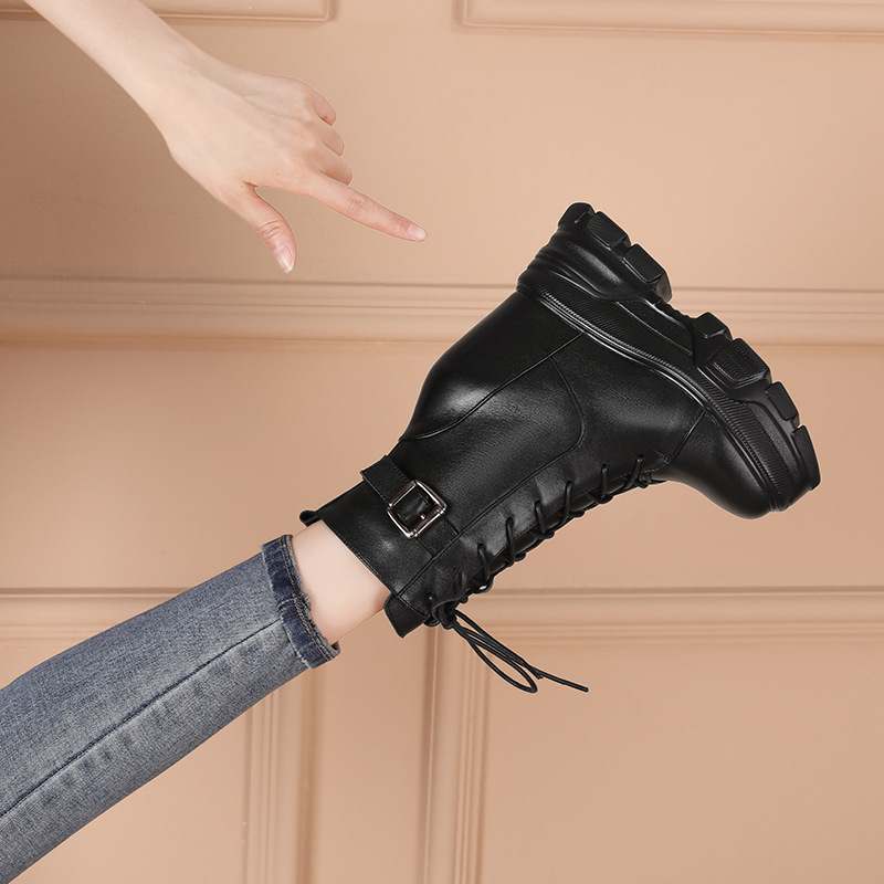 Đôi bốt cổ thấp mới ra mắt, có qu cài phong cách mạnh mẽ. Sản phẩm được thiết kế với đế rất dày bên trong, giúp tăng chiều cao lên đến 14cm một cách nhẹ nhàng. Kiểu dáng trẻ trung, năng động, phù hợp để phối cùng nhiều loại trang phục khác nhau. Chỉ cần buộc dây và cài qu cho vừa chân là bạn đã có ngay một phong cách thời trang cá tính cho những ngày thu. | Tên sản phẩm: Giày Boot Cổ Thấp Nữ Tăng Chiều Cao Đế Cao Hàng Mùa Xuân Thu Đông - Giày Dép Nữ | Mã sản phẩm: B7936 - Giá: 2.210.000đ | Mã nhà sản xuất: QIDNG-G05Hình ảnh sản phẩm