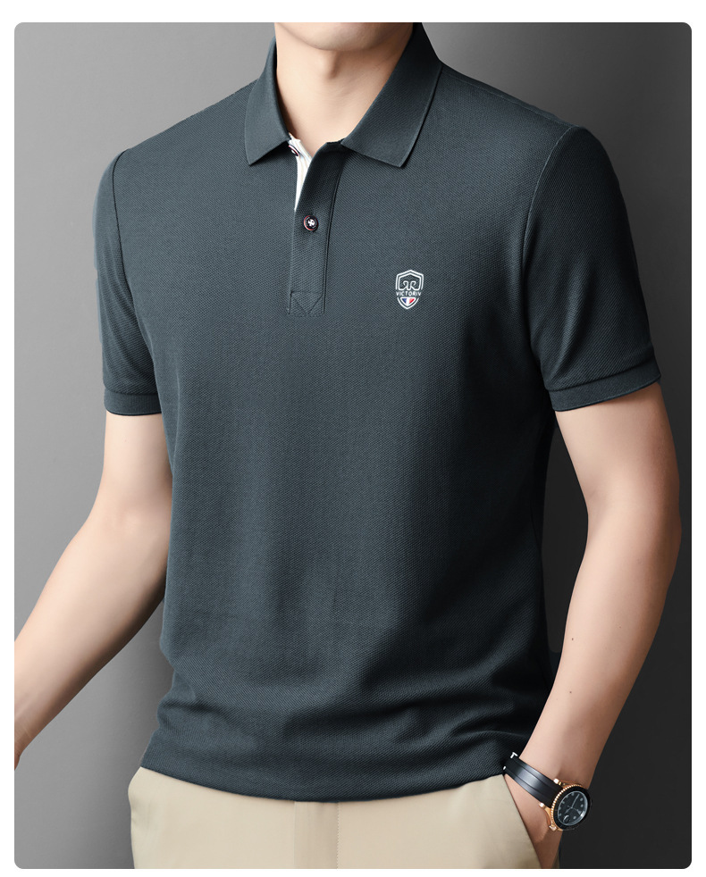 Áo thun cổ bẻ dành cho nam, thiết kế dáng ôm vừa vặn, phù hợp cho những dịp thường ngày. Chất vải mỏng nhẹ, thoáng mát, giúp người mặc cảm thấy dễ chịu trong thời tiết nóng. Sản phẩm có nhiều màu đơn sắc dễ phối đồ. Có thể mặc đi làm hoặc dạo phố, dễ dàng giặt sạch và bảo quản như các loại áo thun thông thường. | Tên sản phẩm: Áo Thun Nam Ngắn Tay Hàng Mùa Hè Trung Niên - Thời Trang Nam | Mã sản phẩm: B7949 - Giá: 770.000đ | Mã nhà sản xuất: TOREGS-G02Hình ảnh sản phẩm