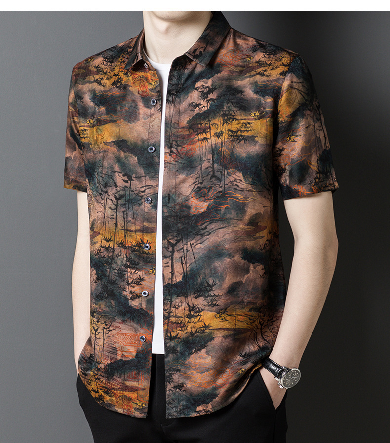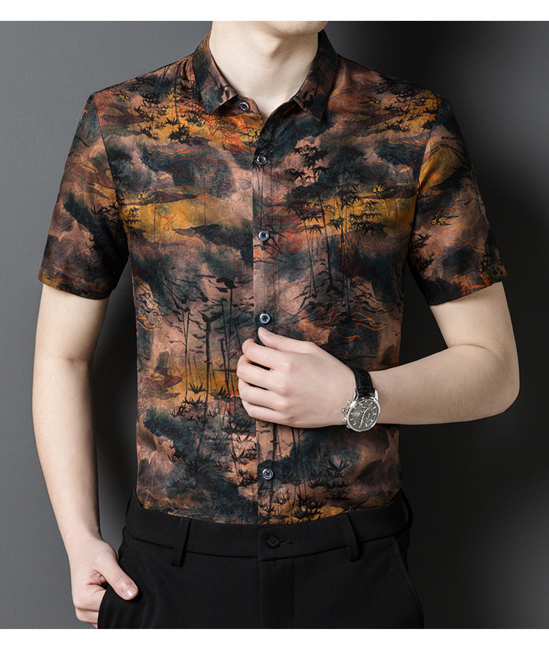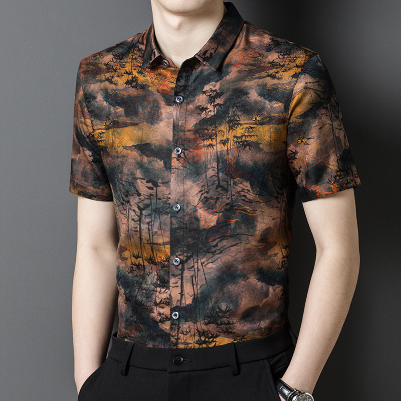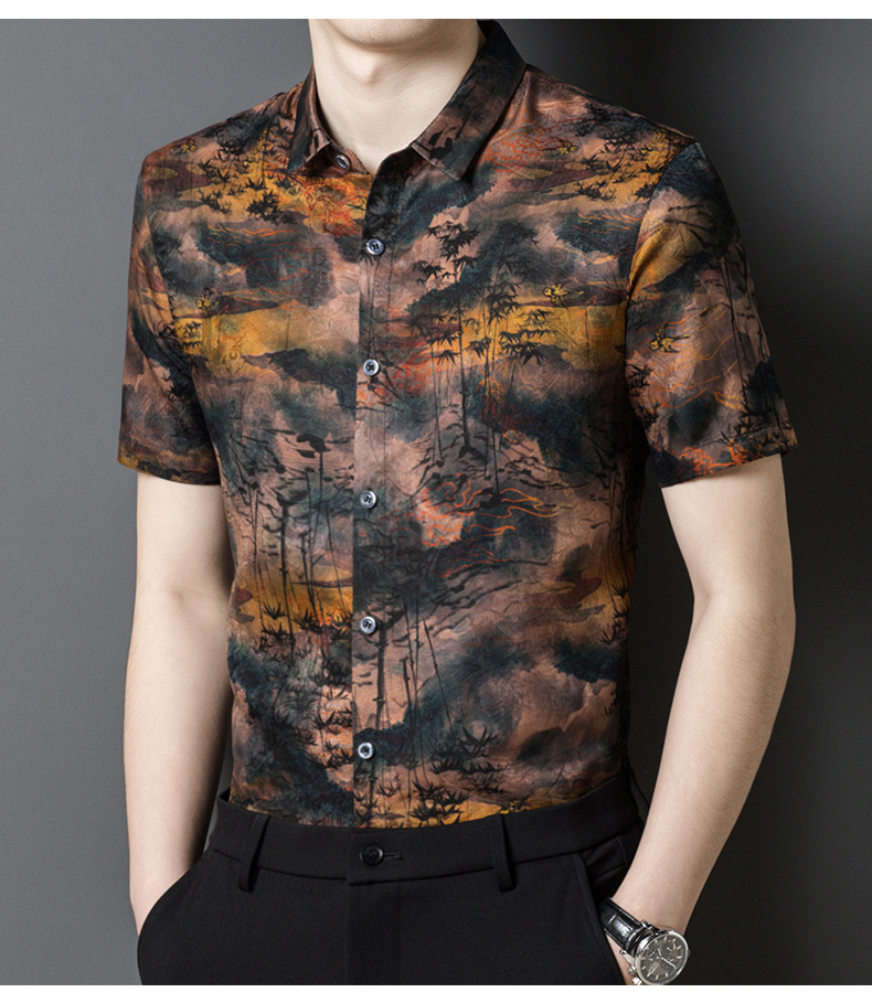 Áo sơ mi nam ngắn tay, dệt từ sợi tơ tằm tự nhiên, mang đến cảm giác mát mẻ và dễ chịu cho ngày hè. Chất vải nhẹ, thoáng khí, thấm hút mồ hôi tốt. Kiểu dáng kết hợp giữa đi làm và dạo phố, phù hợp nhiều dịp. Họa tiết trên vải tựa như những áng mây hồng, tạo điểm nhấn nổi bật nhưng vẫn lịch sự. Mặc kèm quần tây hoặc quần âu thông thường, giặt nhẹ nhàng để bảo quản chất vải. | Tên sản phẩm: Áo Sơ Mi Nam Chất Liệu Lụa Tơ Tằm Ngắn Tay Hàng Mùa Hè Trung Niên Phục Cổ Cổ Điển - Thời Trang Nam | Mã sản phẩm: B7963 - Giá: 2.870.000đ | Mã nhà sản xuất: TOREGS-G06Hình ảnh sản phẩm