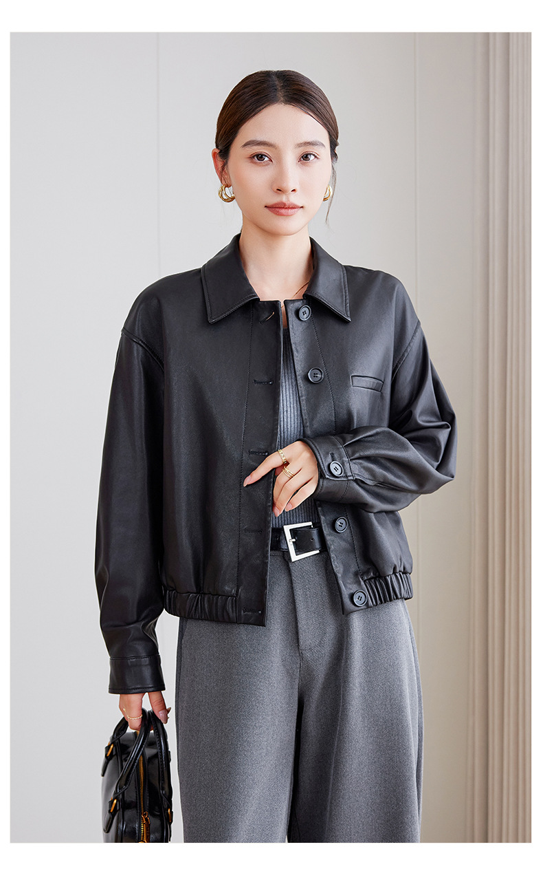 Áo khoác da ngắn dành cho nữ, thiết kế theo phong cách cổ điển nhẹ nhàng. Chất liệu da thật mang đến cảm giác mềm mại và bền chắc. Phần eo có dây thun co giãn tạo sự thoải mái, vừa vặn. Kiểu dáng ngắn gọn, dễ dàng phối cùng nhiều trang phục như quần jeans hay váy. Sản phẩm phù hợp cho những ngày thu mát mẻ. Có thể mặc trực tiếp, giữ gìn bằng cách lau sạch nhẹ nhàng sau khi sử dụng. | Tên sản phẩm: Áo Da Nữ Chất Liệu Da Bò Hàng Mùa Xuân Thu Đông Phục Cổ Cổ Điển - Thời Trang Nữ | Mã sản phẩm: B7983 - Giá: 8.420.000đ | Mã nhà sản xuất: HADG-G06Hình ảnh sản phẩm