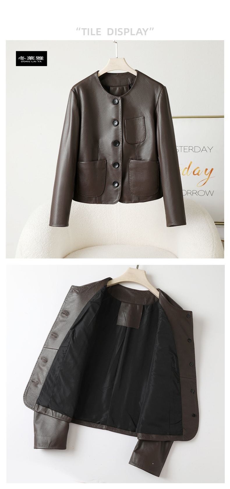 Áo khoác da dành cho nữ, được làm từ chất liệu da dê mềm mại và bền đẹp. Kiểu dáng ngắn, ôn cơ thể tạo nên vẻ ngoài gọn gàng và năng động. Thiết kế cổ tròn, phong cách thư giãn mang hơi hướng hiện đại, phù hợp cho nhiều dịp. Dễ dàng phối cùng quần jeans và áo thun để tạo set đồ đi chơi, hoặc mặc với váy để có diện mạo thanh lịch. Sản phẩm thích hợp dùng vào mùa xuân và mùa thu. | Tên sản phẩm: Áo Da Nữ Chất Liệu Da Bò Dáng Ôm Hàng Mùa Xuân Thu Đông - Thời Trang Nữ | Mã sản phẩm: B8004 - Giá: 3.890.000đ | Mã nhà sản xuất: HADGA-G06Hình ảnh sản phẩm