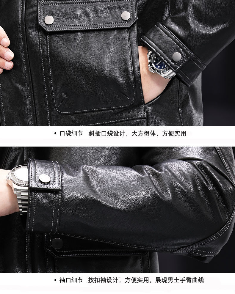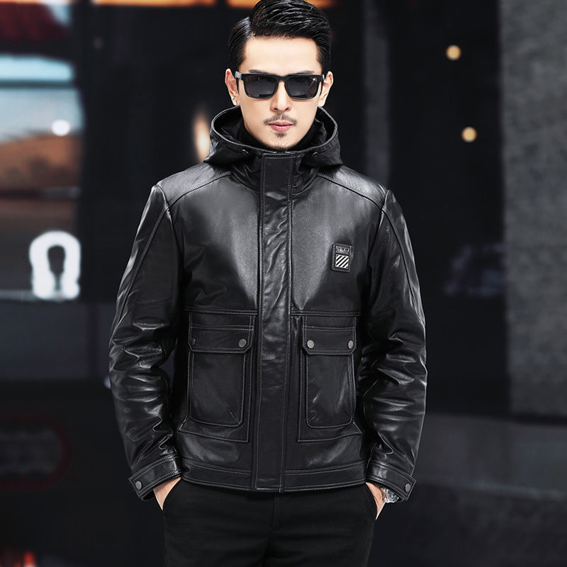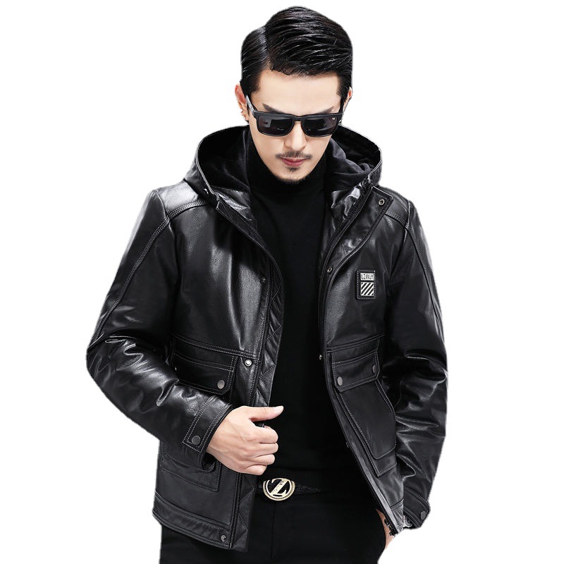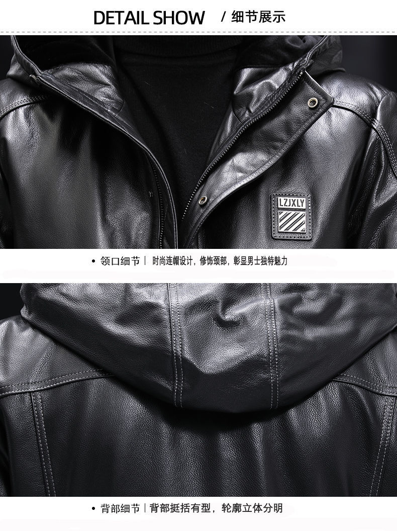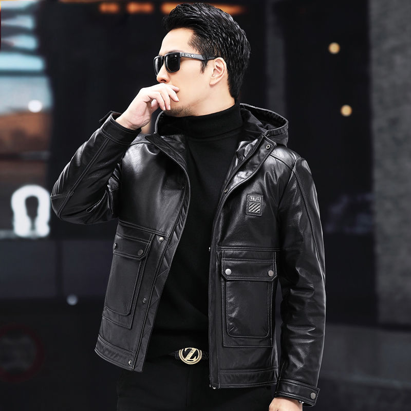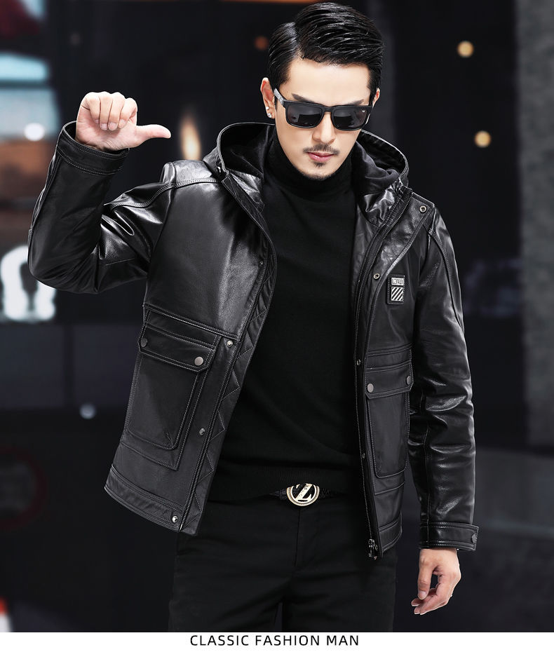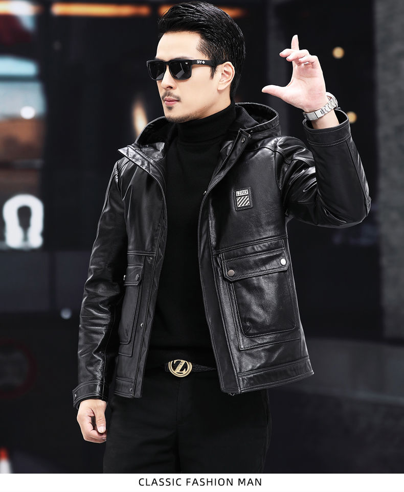 Áo khoác da kiểu dáng ôm dành cho nam, có mũ và được lót bên trong bằng lớp áo lông vũ giữ ấm. Sản phẩm làm từ chất liệu da thật lấy từ lớp da bên ngoài của con bò, mang đến cảm giác mềm mại và bền chắc. Thiết kế năng động phù hợp cho việc di chuyển bằng xe máy hoặc mặc hằng ngày. Cách dùng đơn giản, mặc trực tiếp và kéo khóa khóa lại là được. | Tên sản phẩm: Áo Da Nam Chất Liệu Da Bò Dáng Ôm Mũ Liền - Thời Trang Nam | Mã sản phẩm: B8018 - Giá: 8.140.000đ | Mã nhà sản xuất: HADGA-G06Hình ảnh sản phẩm