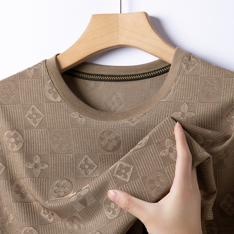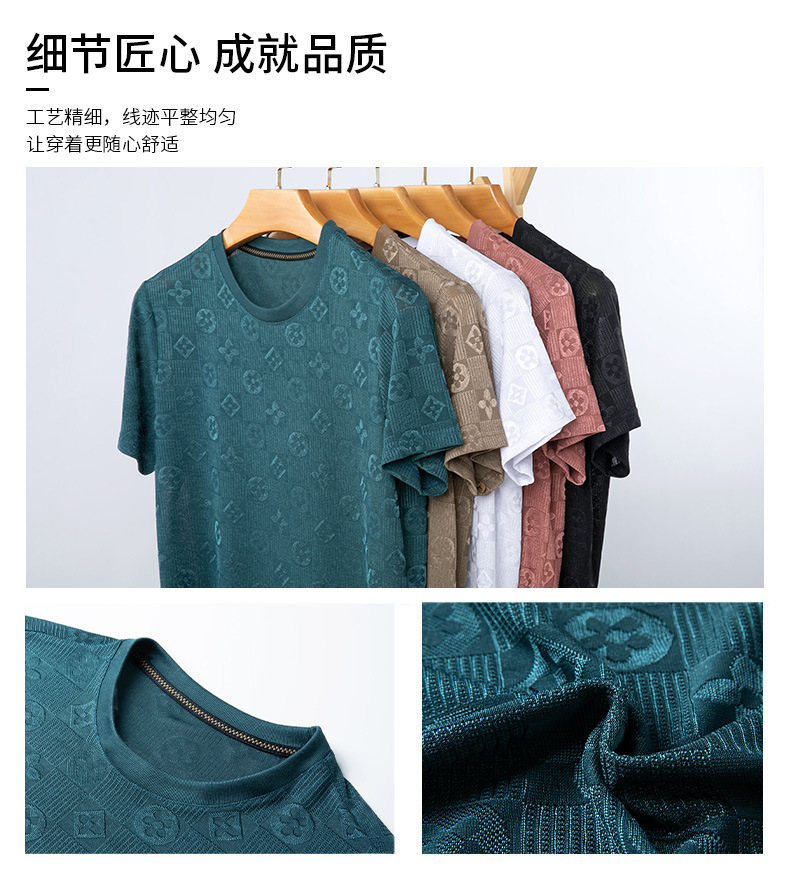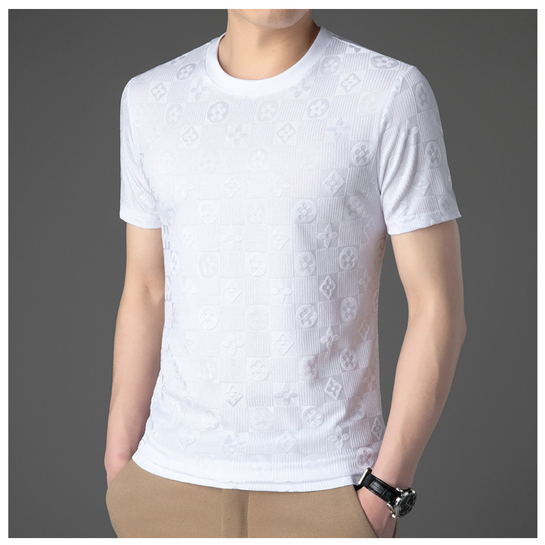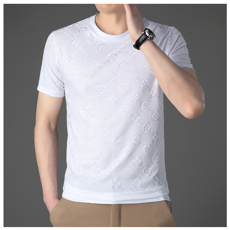 Áo thun ngắn tay dành cho nam, kiểu dáng cổ tròn và form chuẩn. Chất vải dệt kim mềm mại, có độ co giãn và thấm hút mồ hôi tốt, mang lại cảm giác mát mẻ khi mặc. Trên áo có họa tiết dệt nổi tinh tế, tăng thêm phần sinh động. Sản phẩm phù hợp cho những ngày hè oi bức, có thể kết hợp cùng quần shorts hoặc quần jeans. Giặt bằng nước thường để giữ form áo và độ bền màu. | Tên sản phẩm: Áo Thun Nam Áo Len Ngắn Tay Họa Tiết Hoa Thoáng Khí Hàng Mùa Hè - Thời Trang Nam | Mã sản phẩm: B8030 - Giá: 670.000đ | Mã nhà sản xuất: TOREGS-G02Hình ảnh sản phẩm