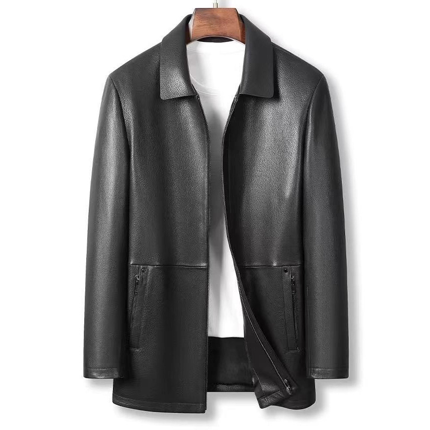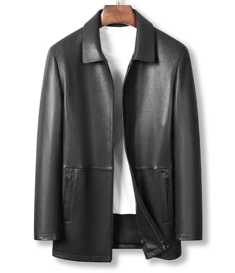 Áo khoác da thật dành cho nam, kiểu dáng ôm vừa vặn và dài qua hông. Sản phẩm được làm từ chất liệu da dê nguyên lớp, mang đến cảm giác mềm mại và bền chắc. Cổ áo thiết kế kiểu bẻ, phong cách thoải mái, phù hợp cho tiết trời thu. Bạn có thể mặc kết hợp với áo thun và quần jeans để tạo nên vẻ ngoài năng động, hoặc mặc cùng áo sơ mi trong những dịp cần sự lịch sự nhẹ nhàng. | Tên sản phẩm: Áo Da Nam Chất Liệu Da Bò Dáng Ôm Kín Cổ Hàng Mùa Xuân Thu Đông - Thời Trang Nam | Mã sản phẩm: B8037 - Giá: 9.070.000đ | Mã nhà sản xuất: HADGA-G06Hình ảnh sản phẩm