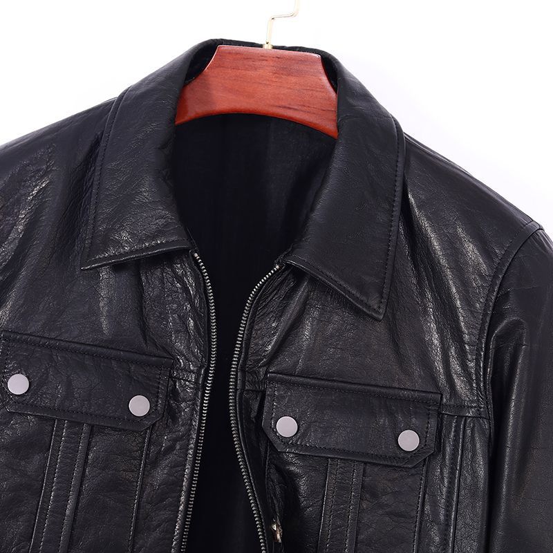 Áo khoác da nam thiết kế ngắn gọn, ôm vừa vặn, phù hợp mặc trong tiết trời mùa xuân và mùa thu. Sản phẩm được làm từ lớp da bò tự nhiên, bề mặt có hiệu ứng bóng mờ đặc trưng. Kiểu dáng cổ bẻ, kết hợp phong cách thời trang năng động. Bạn có thể mặc kèm với áo thun và quần jeans để tạo vẻ ngoài cá tính. Sản phẩm cần được lau chùi nhẹ nhàng bằng khăn mềm và bảo quản nơi khô ráo. | Tên sản phẩm: Áo Da Nam Chất Liệu Da Bò Dáng Ôm Kín Cổ Hàng Mùa Xuân Thu Đông - Thời Trang Nam | Mã sản phẩm: B8041 - Giá: 6.060.000đ | Mã nhà sản xuất: HADGA-G06Hình ảnh sản phẩm