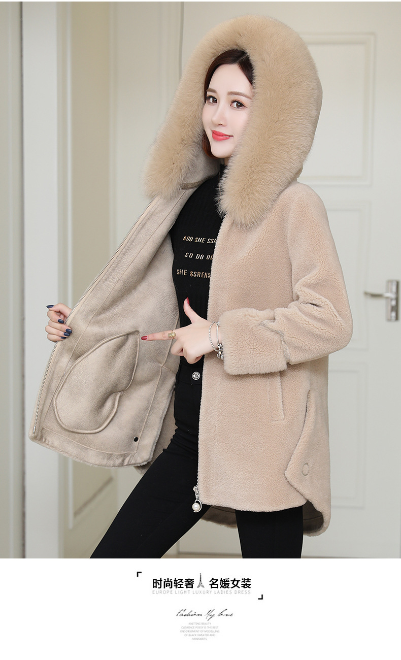 Áo khoác dành cho mùa thu đông với phần lông cổ được làm từ lông cáo tự nhiên, tạo điểm nhấn thanh lịch. Chất liệu chính kết hợp giữa lớp lông cừu ấm áp bên trong và lớp ngoài bền chắc. Thiết kế có mũ trùm tiện lợi, giúp giữ ấm tốt hơn cho phần đầu và cổ. Sản phẩm phù hợp mặc trong tiết trời lạnh, dễ dàng phối cùng nhiều loại trang phục khác nhau để tạo nên vẻ ngoài ấm cúng và thoải mái. | Tên sản phẩm: Áo Lông Nữ Mũ Liền Hàng Mùa Xuân Thu Đông - Thời Trang Nữ | Mã sản phẩm: B8043 - Giá: 5.370.000đ | Mã nhà sản xuất: HADGA-G06Hình ảnh sản phẩm