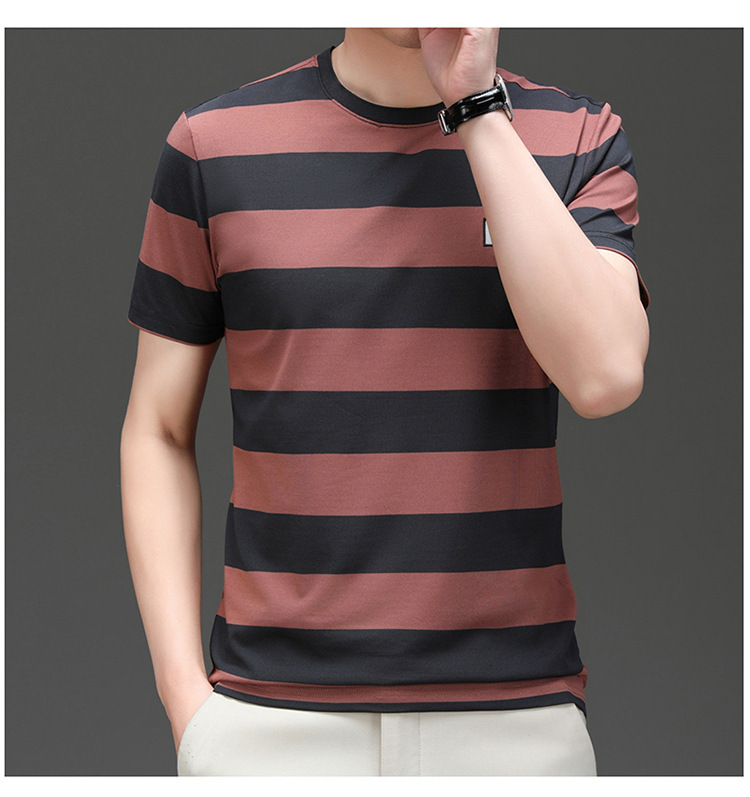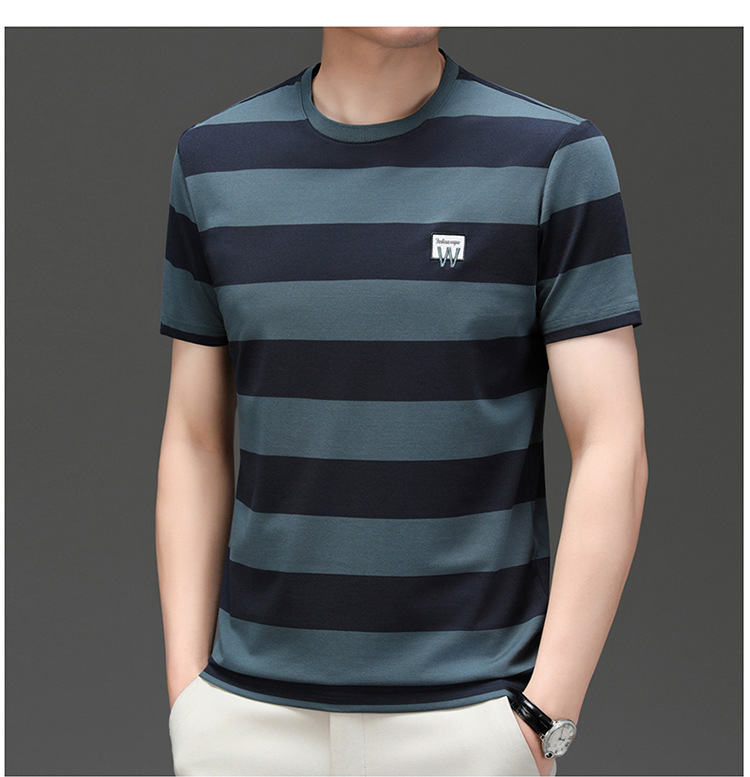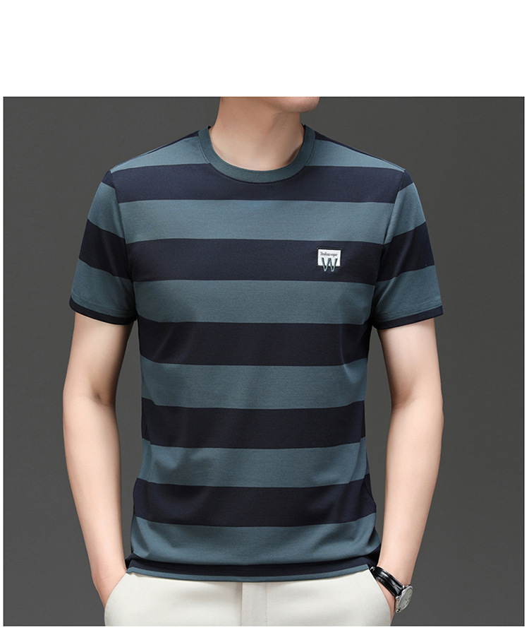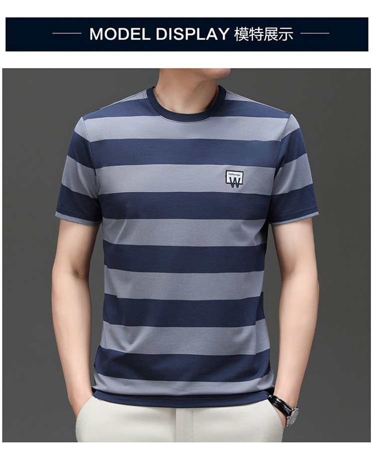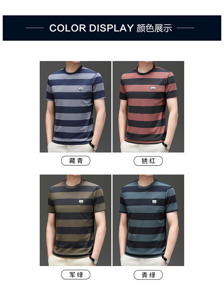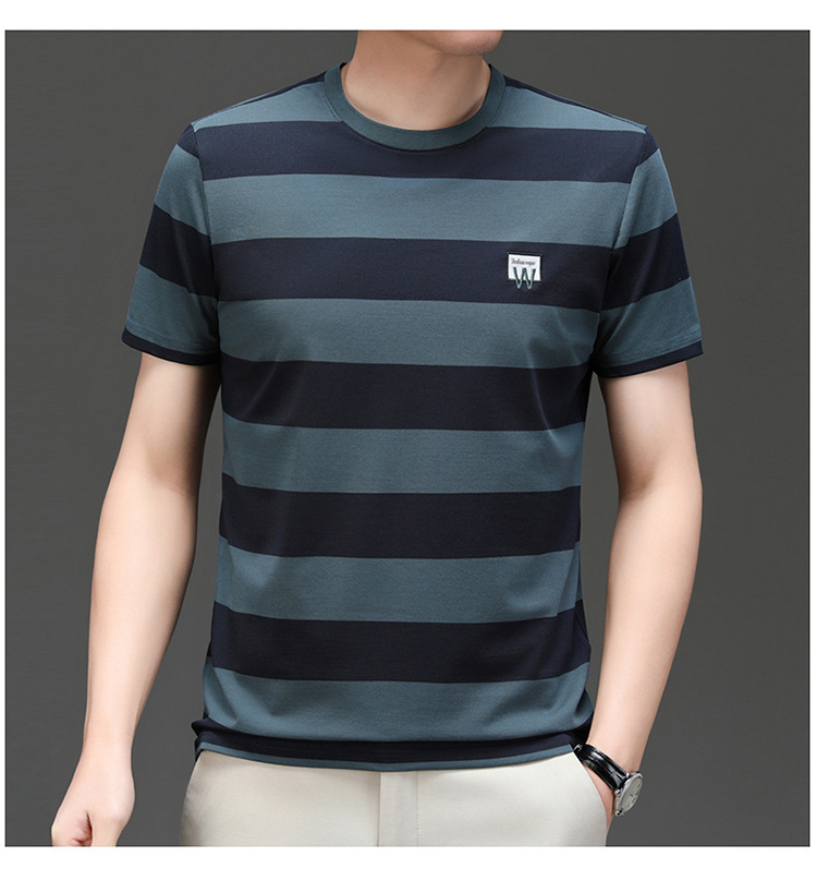 Áo thun ngắn tay dành cho nam với thiết kế cổ tròn dễ mặc. Sản phẩm có họa tiết sọc phối màu nổi bật, tạo điểm nhấn trẻ trung và năng động. Kiểu dáng thoải mái, phù hợp cho mùa hè. Bạn có thể dễ dàng kết hợp với quần short hoặc quần jeans để tạo nên những bộ trang phục hằng ngày một cách đơn giản. Chất vải mềm mại, mang lại cảm giác dễ chịu khi mặc cả ngày dài. | Tên sản phẩm: Áo Thun Nam Ngắn Tay Hàng Mùa Hè Phong Cách Trẻ Trung - Thời Trang Nam | Mã sản phẩm: B8080 - Giá: 770.000đ | Mã nhà sản xuất: TOREGS-G02Hình ảnh sản phẩm
