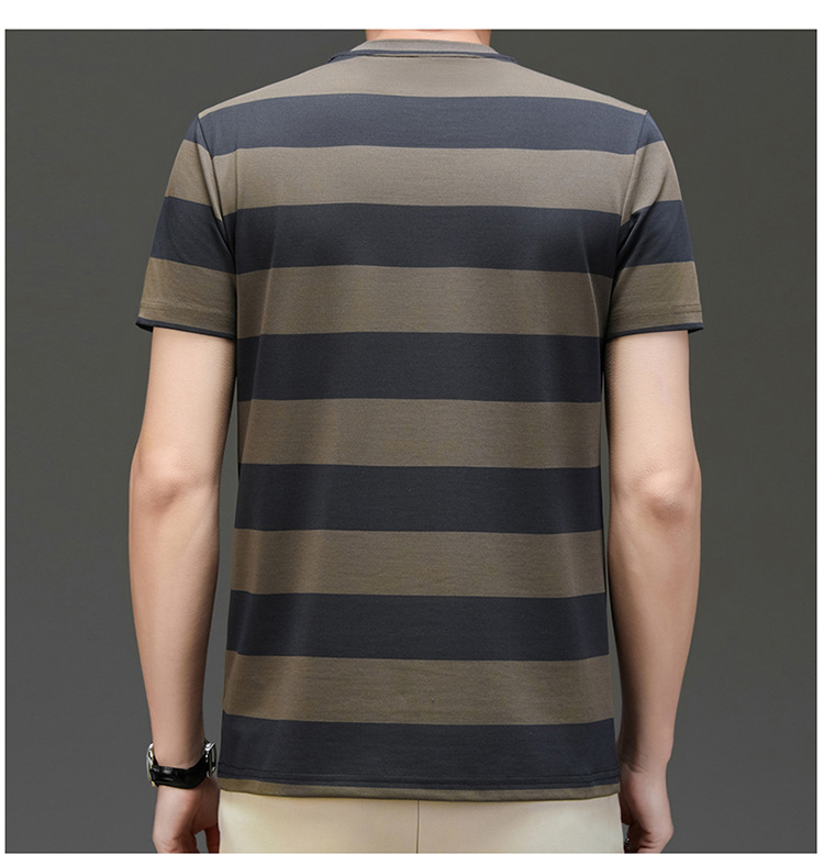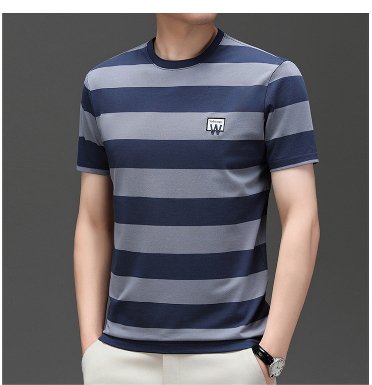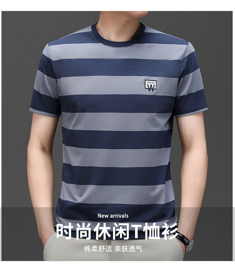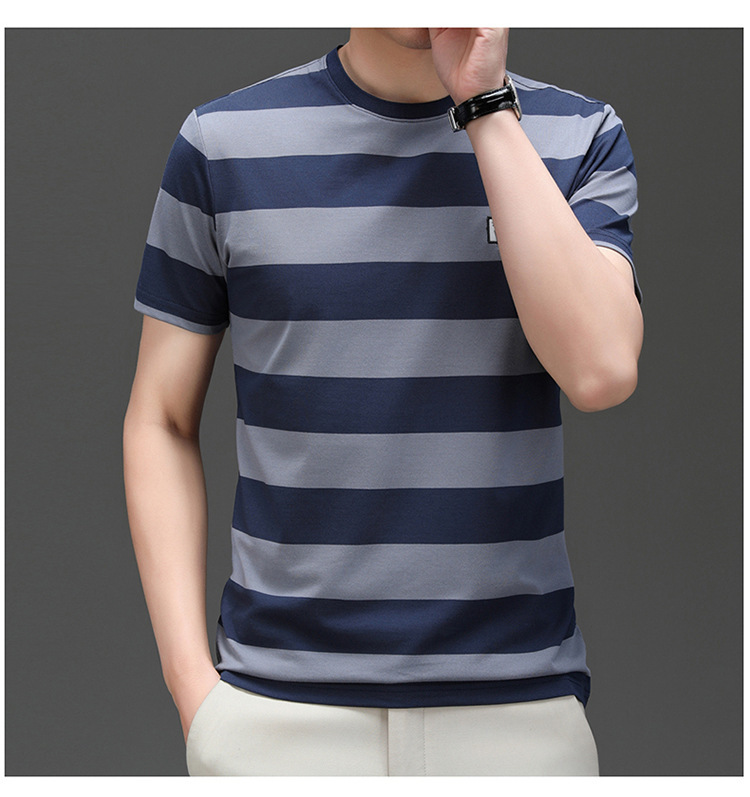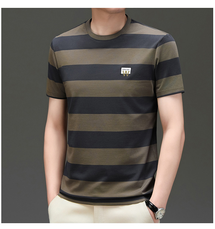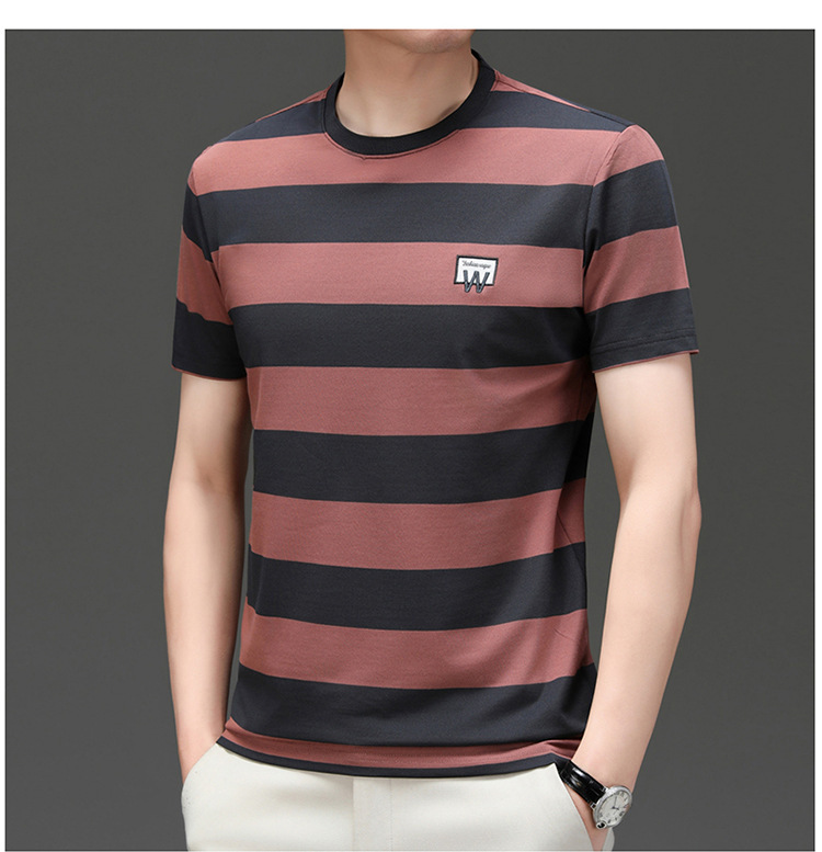 Áo thun ngắn tay dành cho nam với thiết kế cổ tròn dễ mặc. Sản phẩm có họa tiết sọc phối màu nổi bật, tạo điểm nhấn trẻ trung và năng động. Kiểu dáng thoải mái, phù hợp cho mùa hè. Bạn có thể dễ dàng kết hợp với quần short hoặc quần jeans để tạo nên những bộ trang phục hằng ngày một cách đơn giản. Chất vải mềm mại, mang lại cảm giác dễ chịu khi mặc cả ngày dài. | Tên sản phẩm: Áo Thun Nam Ngắn Tay Hàng Mùa Hè Phong Cách Trẻ Trung - Thời Trang Nam | Mã sản phẩm: B8080 - Giá: 770.000đ | Mã nhà sản xuất: TOREGS-G02Hình ảnh sản phẩm
