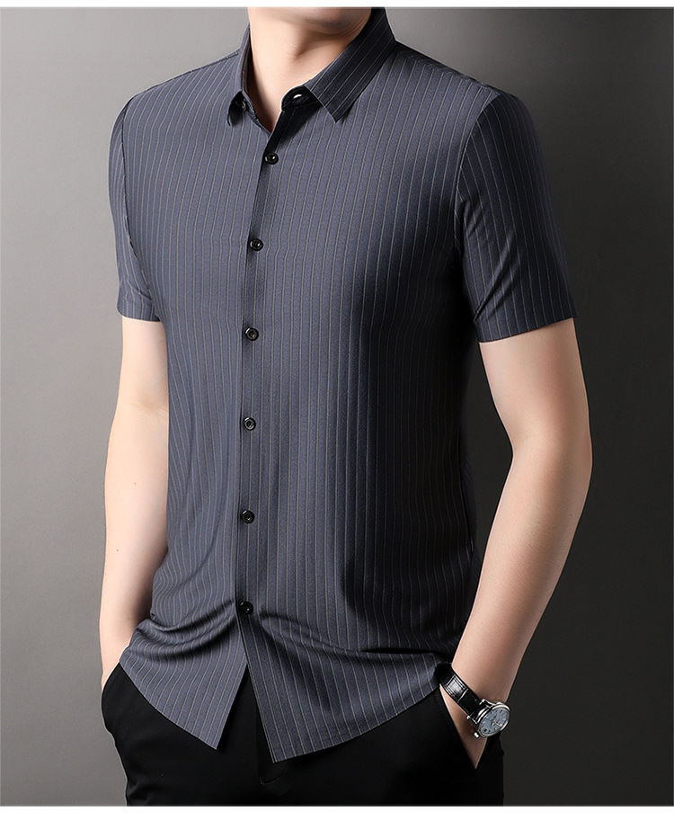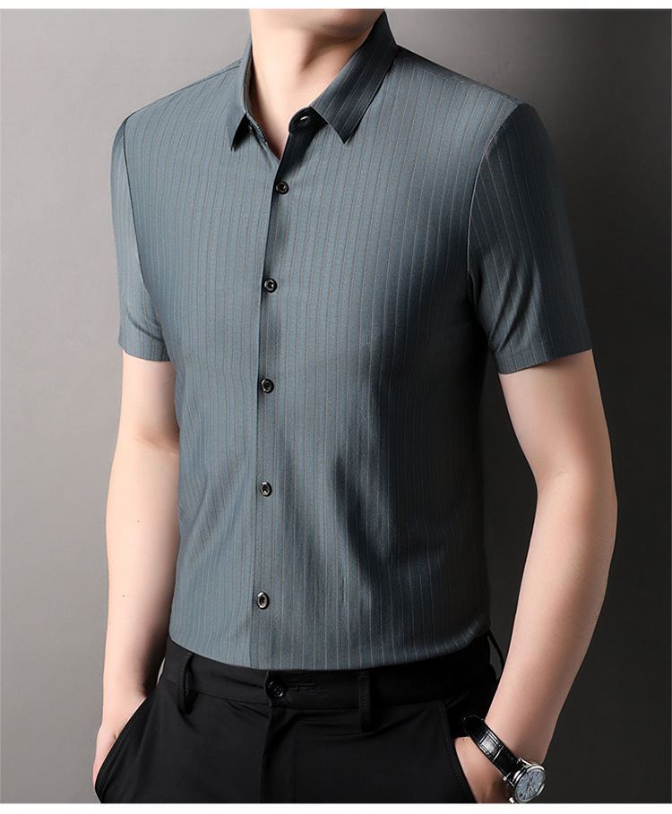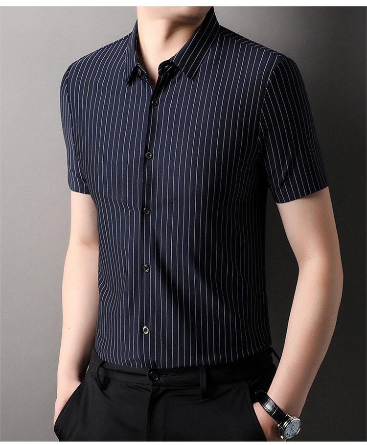 Áo sơ mi ngắn tay kiểu dáng kẻ sọc, dành riêng cho các bậc cha trong dịp hè 2024. Chất vải mềm nhẹ, ít nhăn nên rất tiện lợi khi mặc đi làm hoặc dạo phố. Thiết kế ôm vừa người, cổ áo và tay áo cắt may gọn gàng. Có thể mặc kết hợp với quần tây hoặc quần vải thông thường. Dễ dàng giặt sạch và không cần ủi nhiều, phù hợp cho những ngày bận rộn. | Tên sản phẩm: Áo Sơ Mi Nam Ngắn Tay Hàng Mùa Hè Trung Niên - Thời Trang Nam | Mã sản phẩm: B8125 - Giá: 780.000đ | Mã nhà sản xuất: TOREGS-G02Hình ảnh sản phẩm