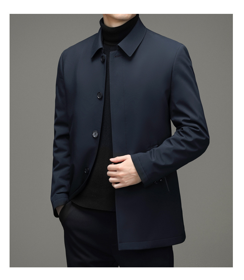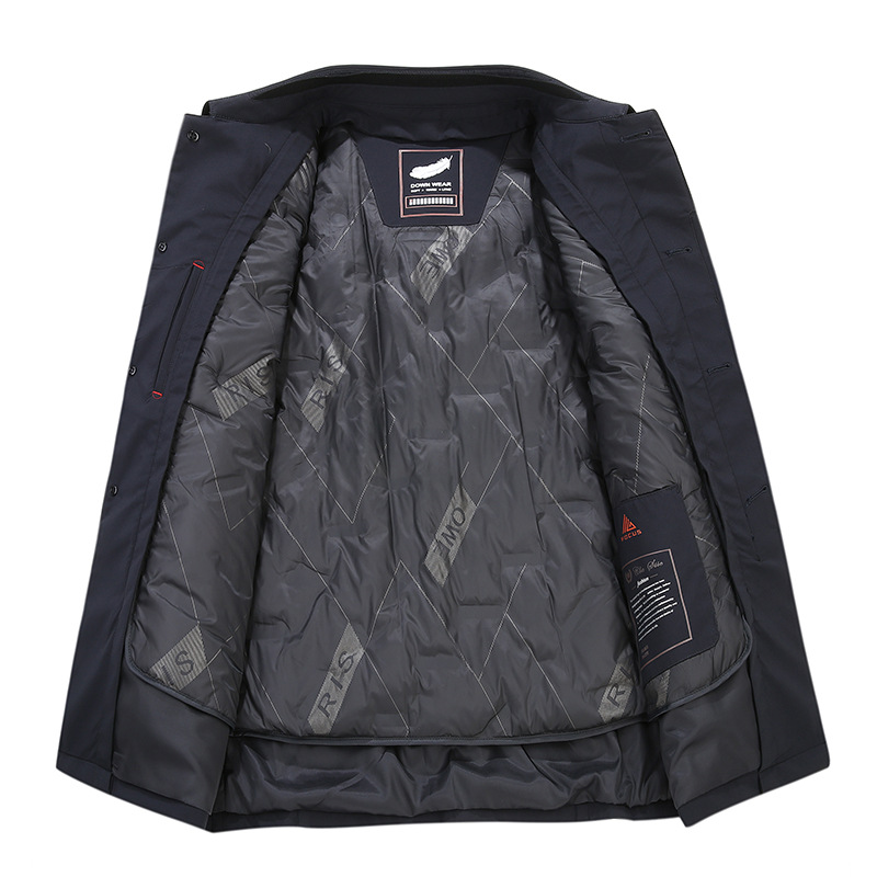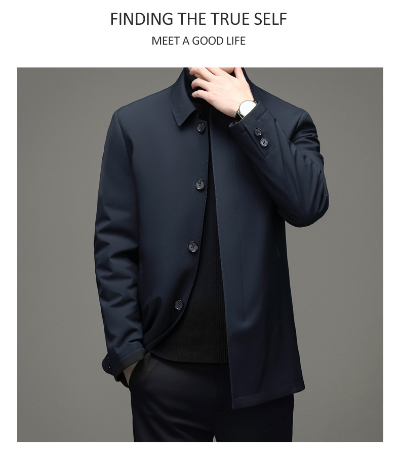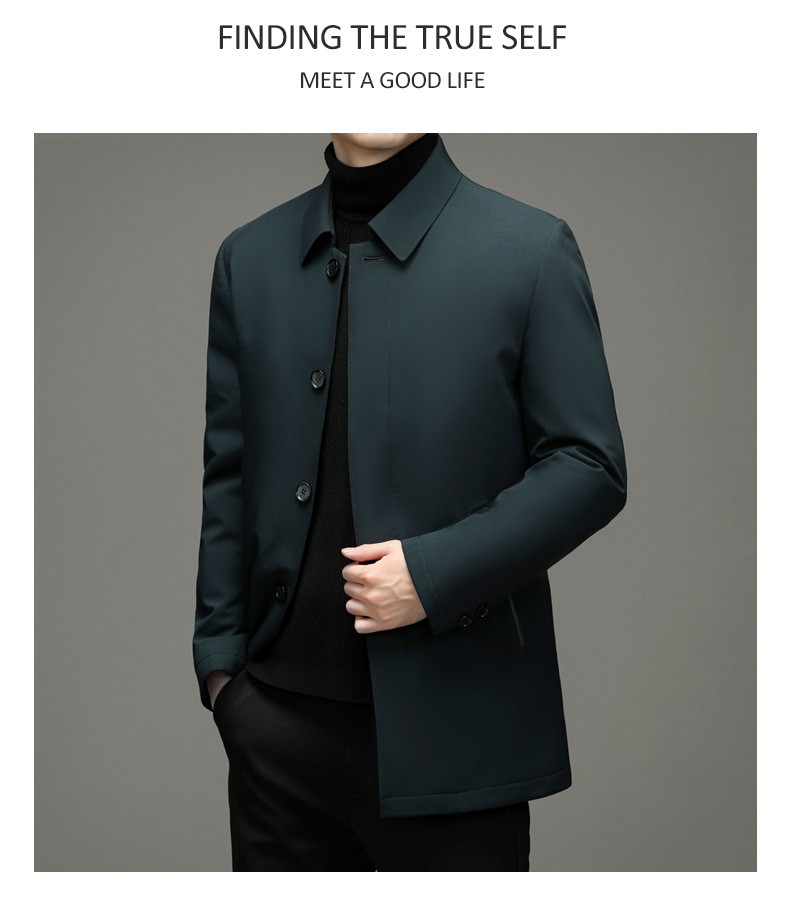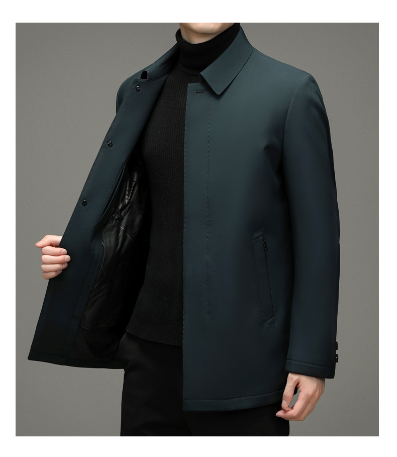 Áo khoác dành cho nam giới, có lớp bên trong được lót bằng lông vũ tơi nhẹ của vịt, giữ ấm tốt. Kiểu áo có cổ bẻ, hàng cúc được giấu kín tạo nên vẻ lịch sự. Thiết kế dáng ôm vừa vặn, phù hợp cho công việc hay những dịp đi lại hằng ngày. Mặc áo bên ngoài áo sơ mi hoặc áo thun, dễ dàng phối đồ và giữ ấm trong thời tiết mát mẻ. | Tên sản phẩm: Áo Khoác Nam Kín Cổ Trung Niên - Thời Trang Nam | Mã sản phẩm: B8165 - Giá: 2.160.000đ | Mã nhà sản xuất: SUDI-G05Hình ảnh sản phẩm