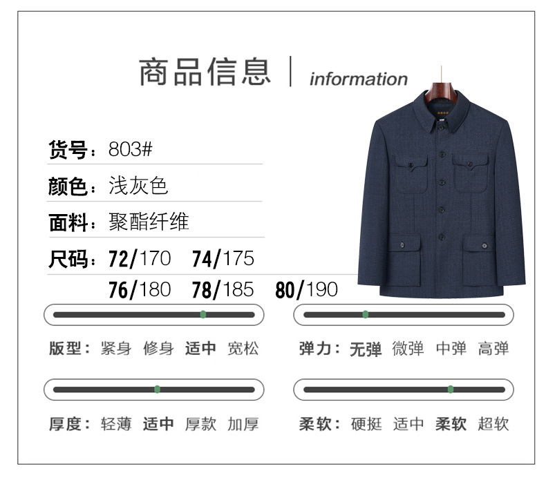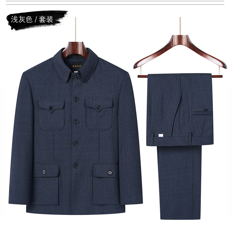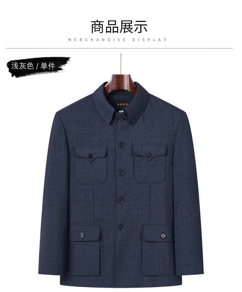 Bộ trang phục này mang phong cách thiết kế cổ điển, dành riêng cho các bậc cha, ông. Áo khoác và quần may vừa vặn, tạo cảm giác thoải mái, lịch sự khi mặc. Kiểu dáng trang nhã phù hợp cho những dịp gặp mặt gia đình hoặc các sự kiện vào mùa xuân và mùa thu. Sản phẩm dễ dàng phối cùng áo bên trong và giày tây. Chỉ cần giặt nhẹ và phơi khô là bộ đồ đã sẵn sàng cho những lần sử dụng tiếp theo. | Tên sản phẩm: Áo Khoác Nam Hàng Mùa Xuân Thu Đông Trung Niên - Thời Trang Nam | Mã sản phẩm: B8237 - Giá: 1.090.000đ | Mã nhà sản xuất: SUDAP-G03Hình ảnh sản phẩm