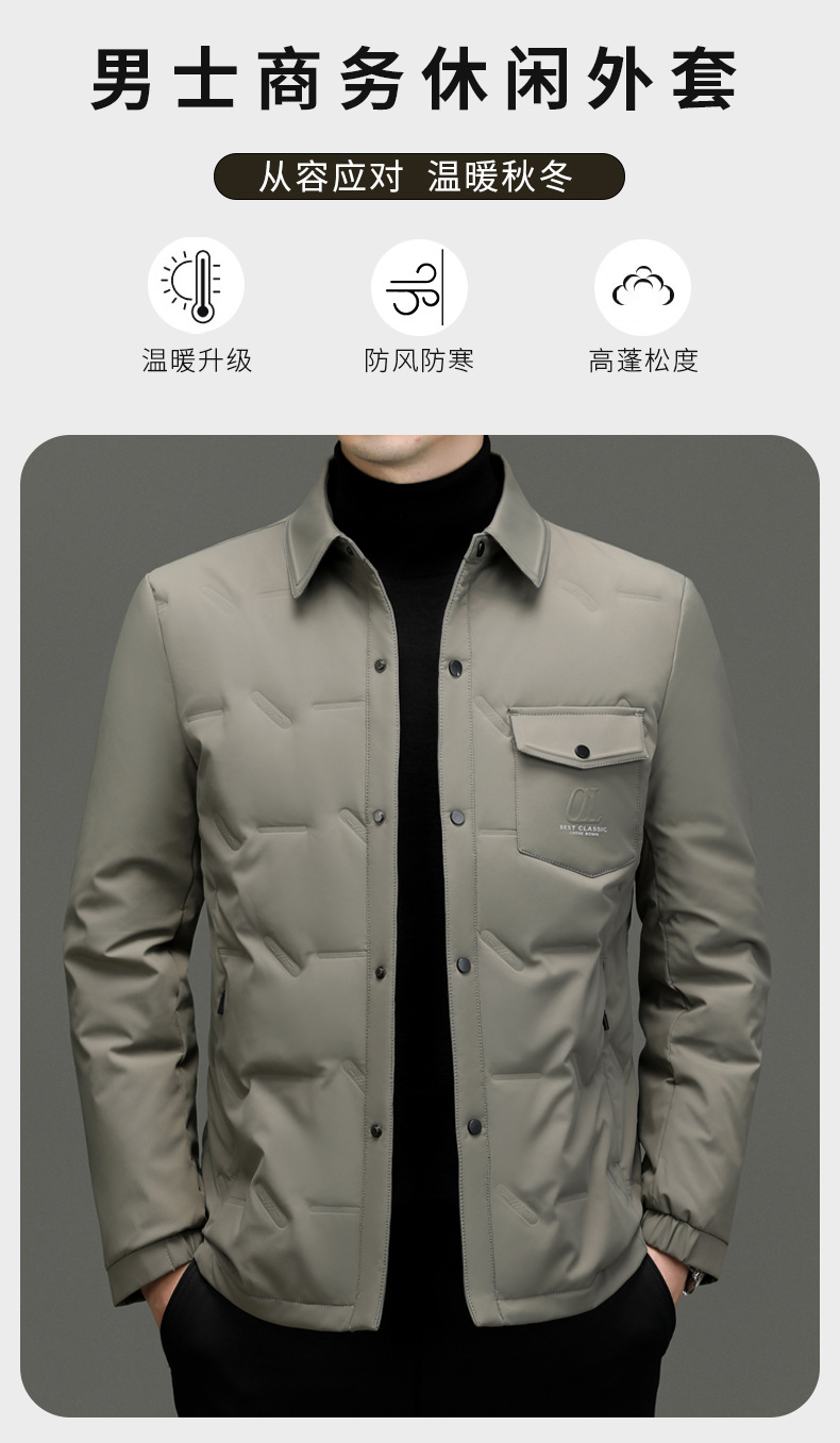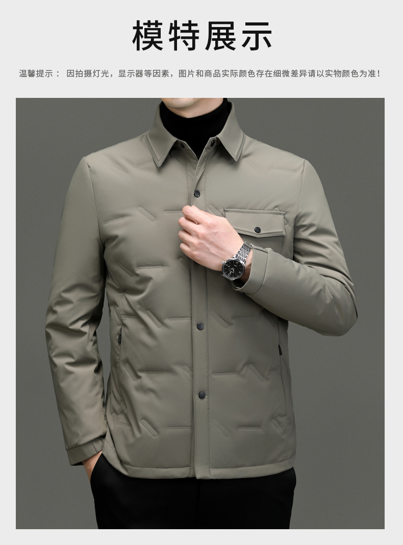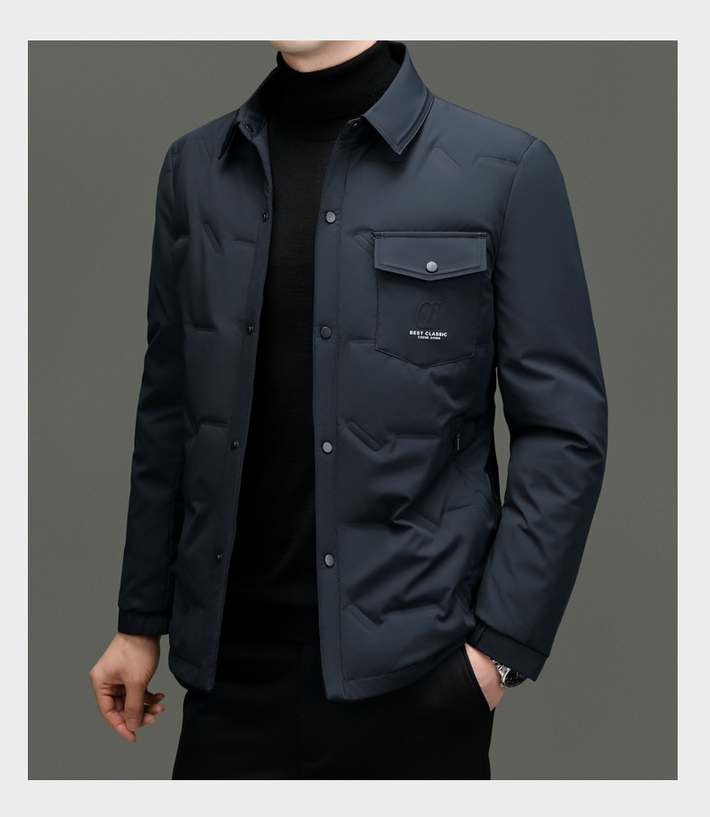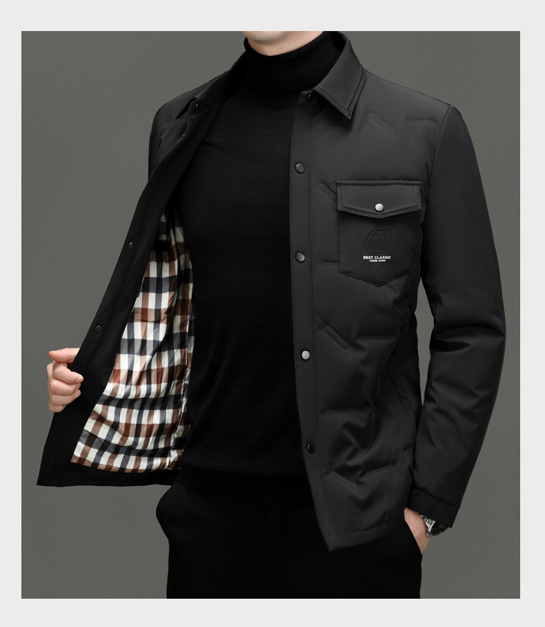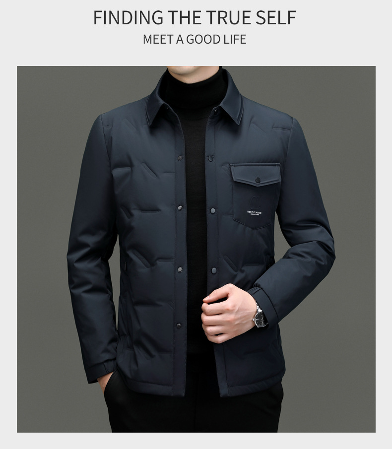 Áo khoác mùa lạnh dành cho nam, được lót bên trong bằng lớp lông vũ từ loài ngỗng trắng tự nhiên, mang đến khả năng giữ ấm nhẹ nhàng. Kiểu dáng cổ bẻ phù hợp cho cả công sở và dạo phố. Chất vỏ ngoài mềm mại như lụa, thoáng khí và ít bám bụi. Có thể mặc trực tiếp hoặc phối cùng áo thun, áo len bên trong. Dễ dàng vệ sinh bằng cách giặt máy thông thường. | Tên sản phẩm: Áo Khoác Nam Kín Cổ Hàng Mùa Xuân Thu Đông Trung Niên - Thời Trang Nam | Mã sản phẩm: B8244 - Giá: 2.160.000đ | Mã nhà sản xuất: SUDI-G05Hình ảnh sản phẩm