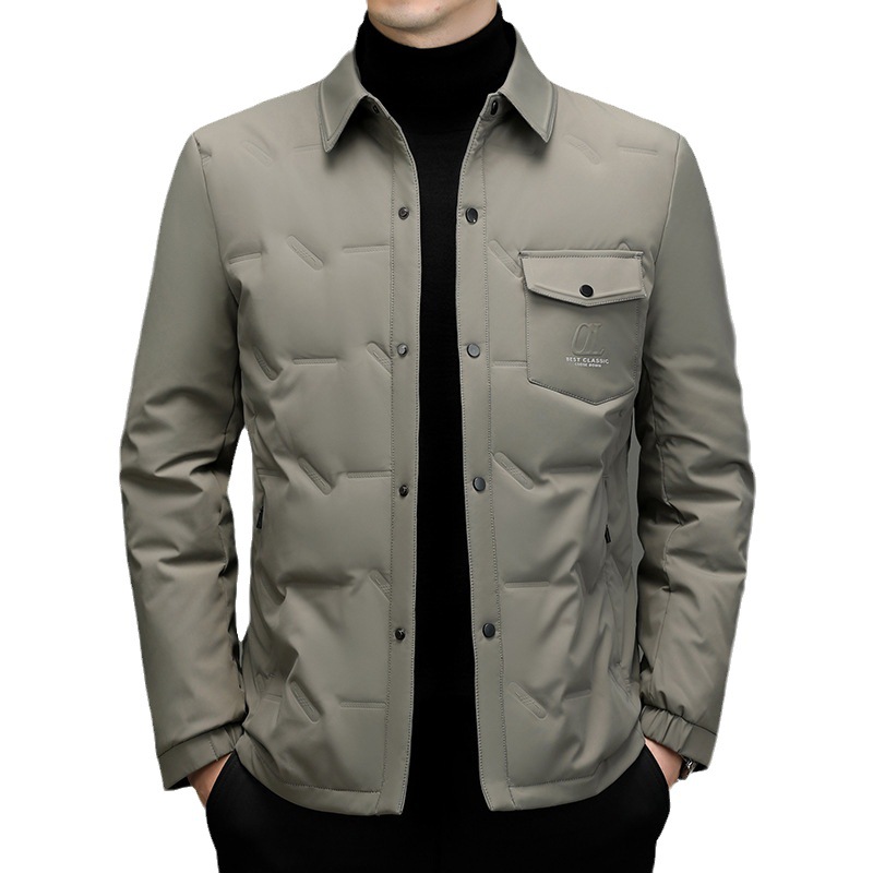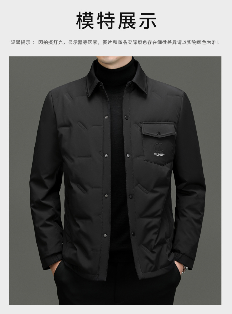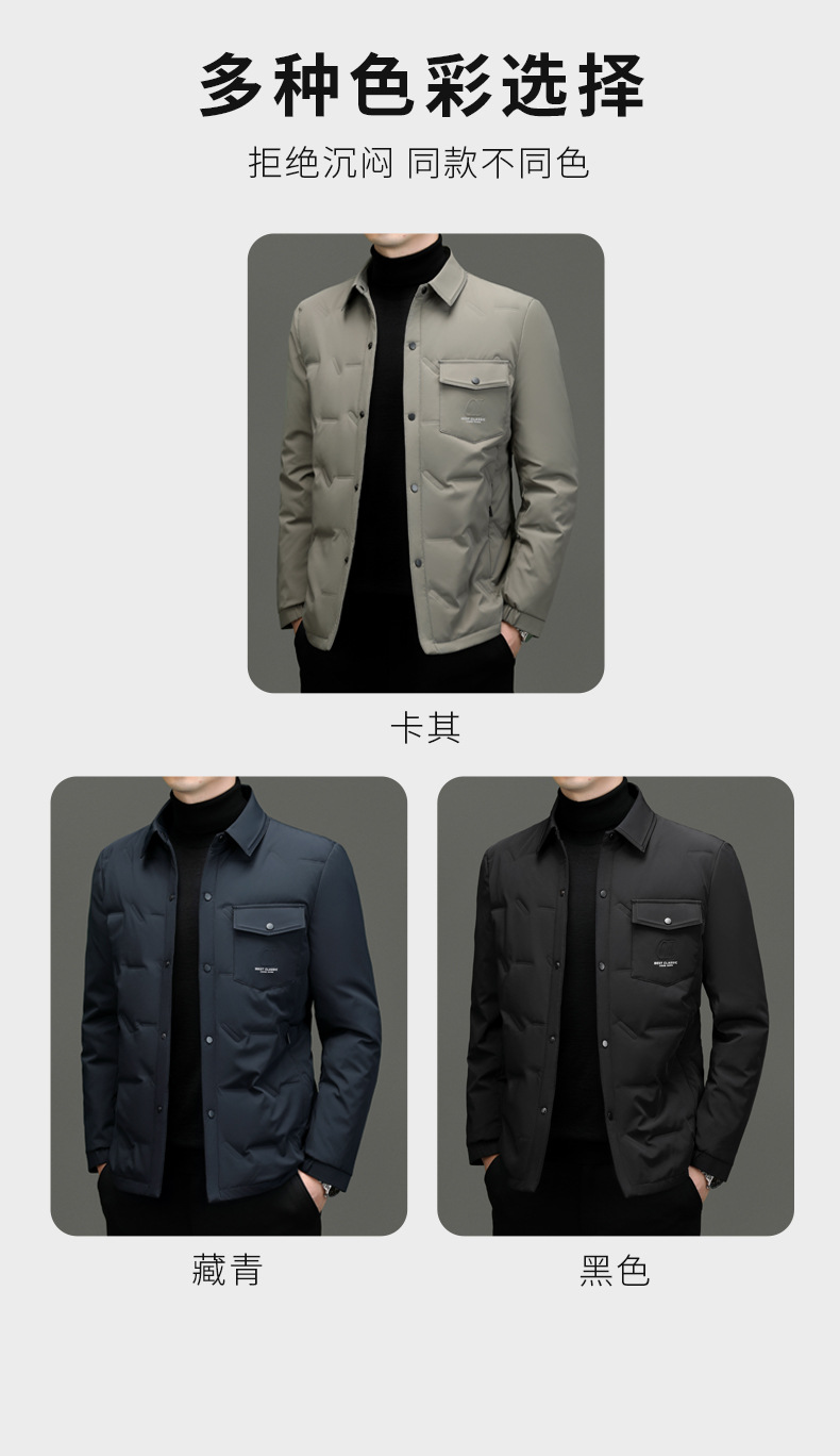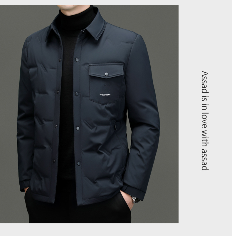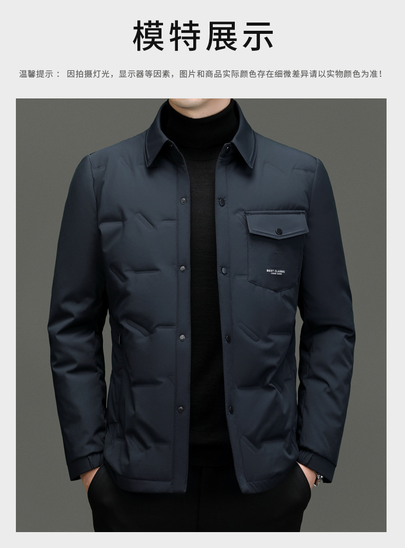 Áo khoác mùa lạnh dành cho nam, được lót bên trong bằng lớp lông vũ từ loài ngỗng trắng tự nhiên, mang đến khả năng giữ ấm nhẹ nhàng. Kiểu dáng cổ bẻ phù hợp cho cả công sở và dạo phố. Chất vỏ ngoài mềm mại như lụa, thoáng khí và ít bám bụi. Có thể mặc trực tiếp hoặc phối cùng áo thun, áo len bên trong. Dễ dàng vệ sinh bằng cách giặt máy thông thường. | Tên sản phẩm: Áo Khoác Nam Kín Cổ Hàng Mùa Xuân Thu Đông Trung Niên - Thời Trang Nam | Mã sản phẩm: B8244 - Giá: 2.160.000đ | Mã nhà sản xuất: SUDI-G05Hình ảnh sản phẩm