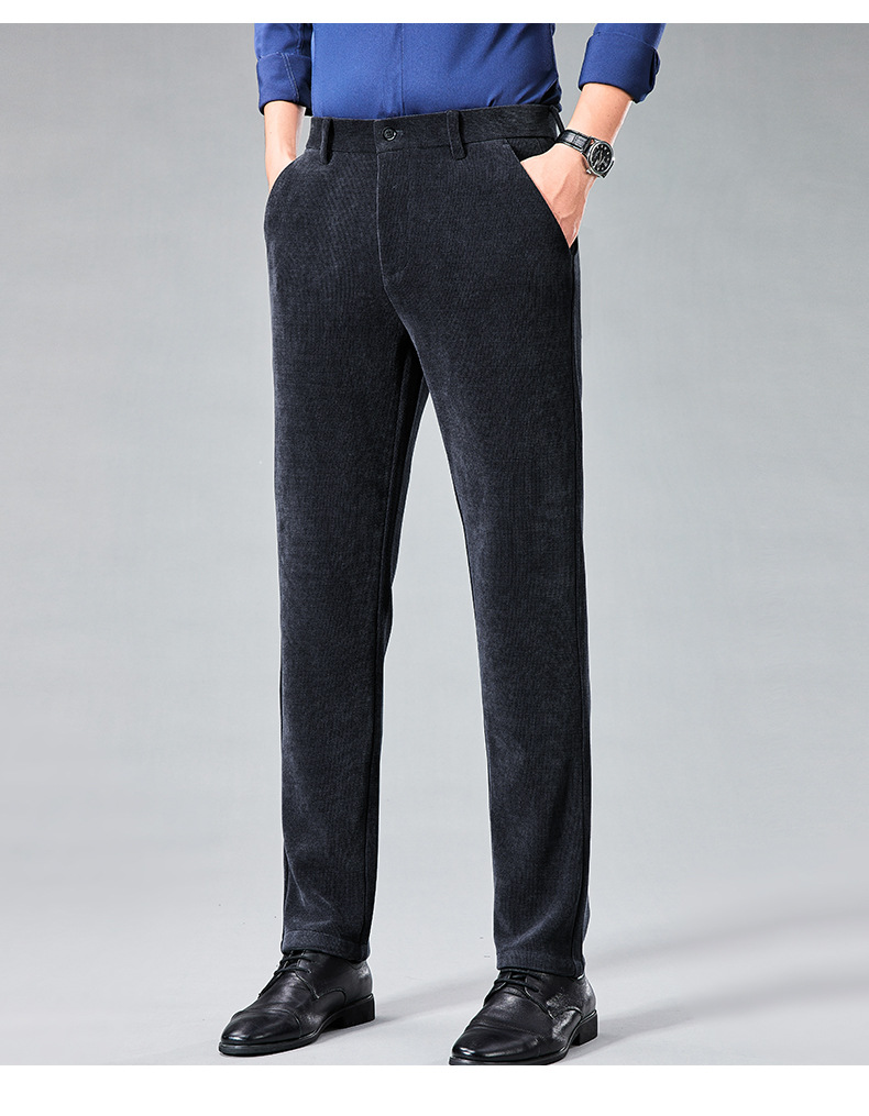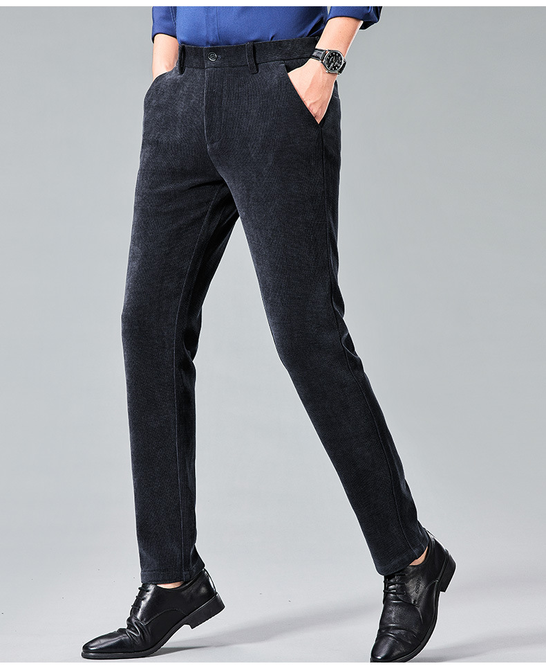 Chiếc quần dành cho nam giới này được làm từ chất liệu nhung sợi đan dày dặn, mang đến cảm giác ấm áp và thoải mái khi mặc vào mùa thu đông. Kiểu dáng ống thẳng tạo vẻ lịch sự nhẹ nhàng, phù hợp cho cả công sở và những lúc thư giãn. Bạn có thể dễ dàng phối cùng áo thun, áo len hay áo sơ mi để có những trang cá nhân gọn gàng. Sản phẩm giữ nhiệt tốt, giúp bạn giữ ấm trong những ngày trời se lạnh. | Tên sản phẩm: Quần Nam Dày Ấm Hàng Mùa Xuân Thu Đông - Thời Trang Nam | Mã sản phẩm: B8302 - Giá: 940.000đ | Mã nhà sản xuất: QUDL-G03Hình ảnh sản phẩm
