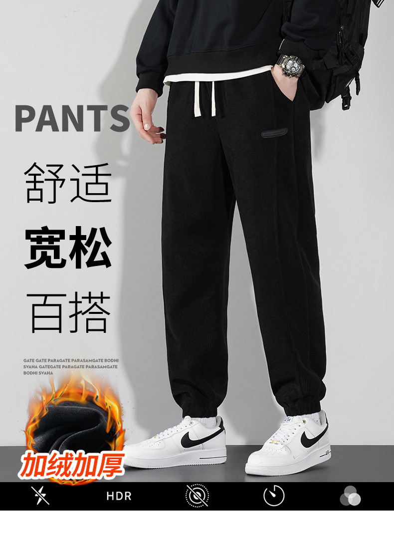 Chiếc quần dáng thể thao này được thiết kế cho mùa lạnh, với lớp lót bên trong bằng vải mềm mại giữ ấm tốt. Chất vải dày dặn, có sọc mờ tạo cảm giác ấm áp. Kiểu dáng rộng rãi thoải mái, phần ống gập lại và có dây rút để điều chỉnh vừa vặn. Sản phẩm phù hợp cho nhiều hoạt động hằng ngày, giúp bạn dễ dàng vận động mà vẫn giữ được sự ấm áp trong tiết trời se lạnh. | Tên sản phẩm: Quần Nam Dày Ấm Hàng Mùa Xuân Thu Đông - Thời Trang Nam | Mã sản phẩm: B8341 - Giá: 580.000đ | Mã nhà sản xuất: QUDL-G01Hình ảnh sản phẩm