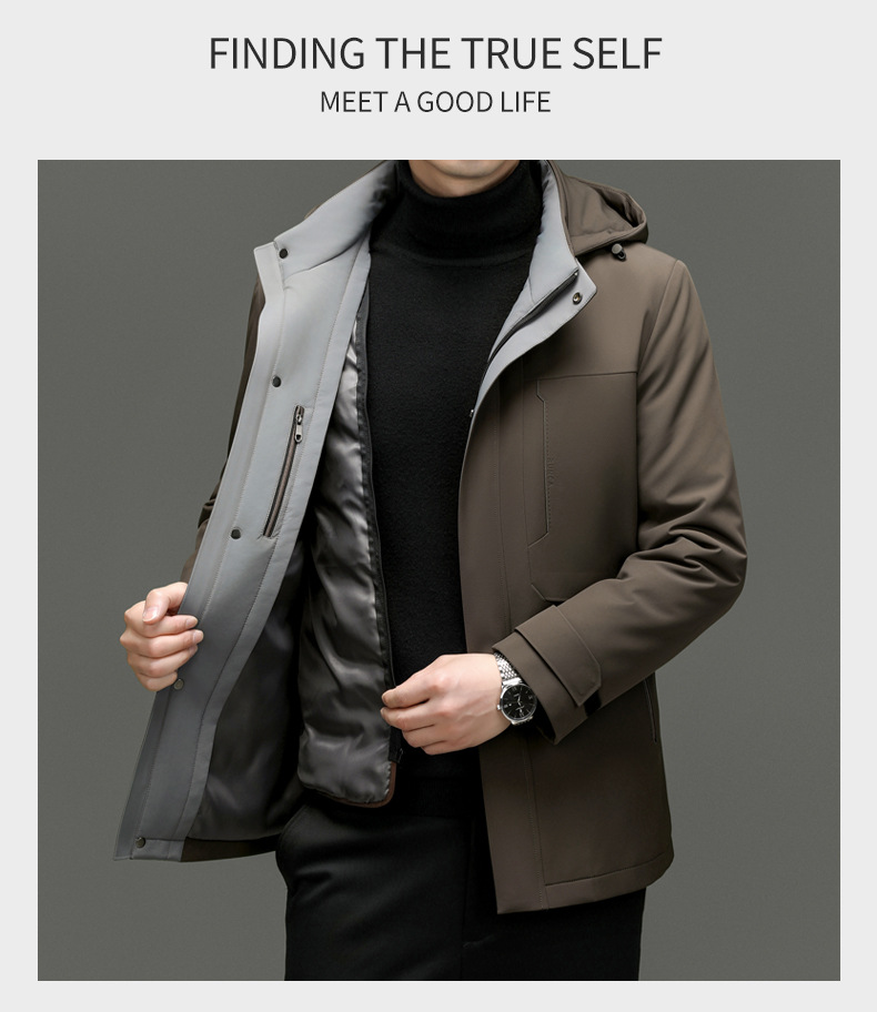 Áo khoác dành cho nam, được làm từ chất liệu vải mềm mại như lụa sữa, bên trong chứa đến 90% lông vũ từ ngỗng trắng, giữ ấm rất tốt. Áo có mũ trùm tiện lợi, thiết kế một màu dễ phối đồ và sử dụng kỹ thuật dán keo toàn bộ giúp chắn gió và ngăn nước hiệu quả. Kiểu dáng phù hợp cho các bậc cha, trung niên. Khi mặc, chỉ cần khoác ngoài là đủ ấm áp và thoải mái cho những ngày trời lạnh. | Tên sản phẩm: Áo Khoác Nam Mũ Liền Trung Niên - Thời Trang Nam | Mã sản phẩm: B8354 - Giá: 3.650.000đ | Mã nhà sản xuất: SUDI-G06Hình ảnh sản phẩm