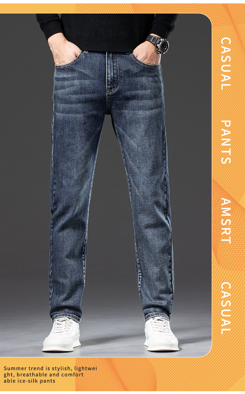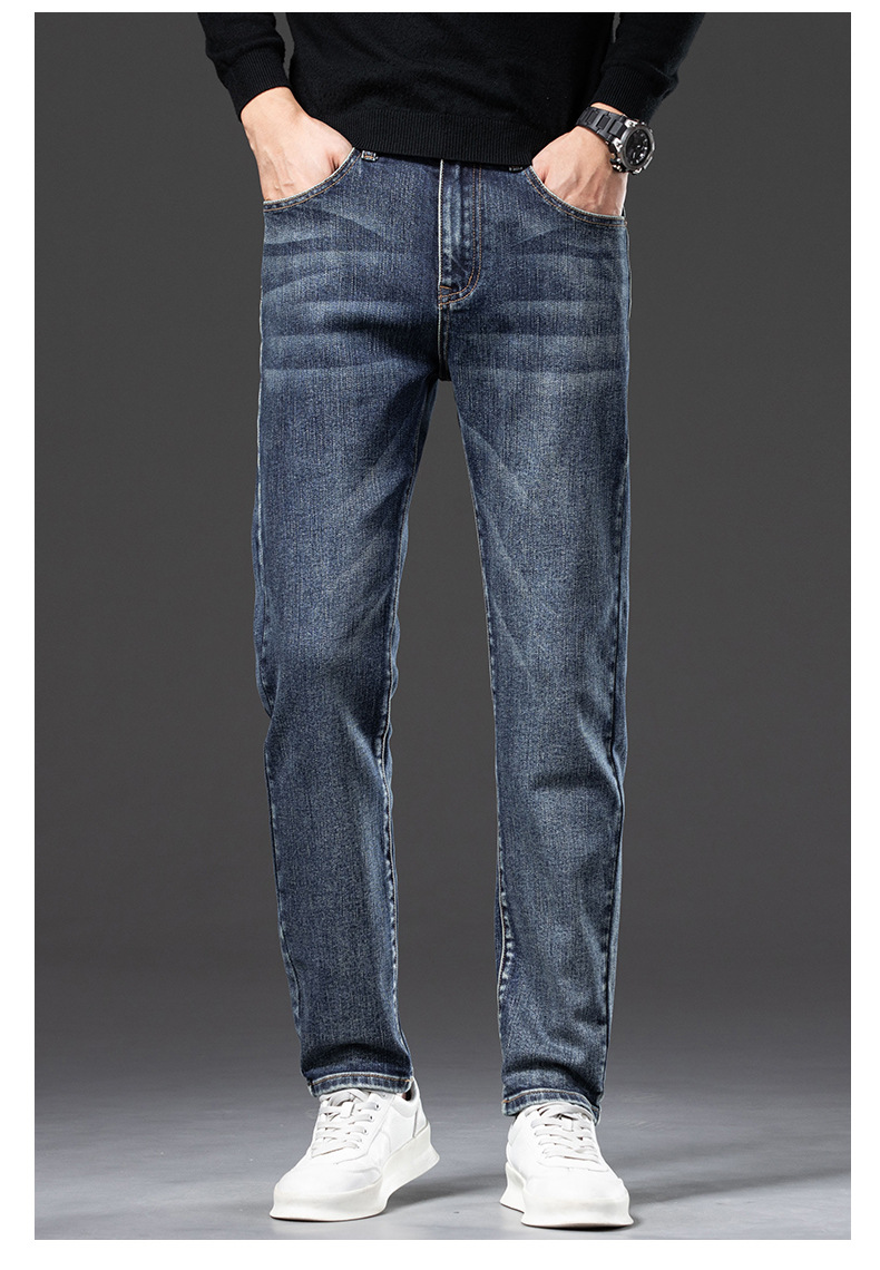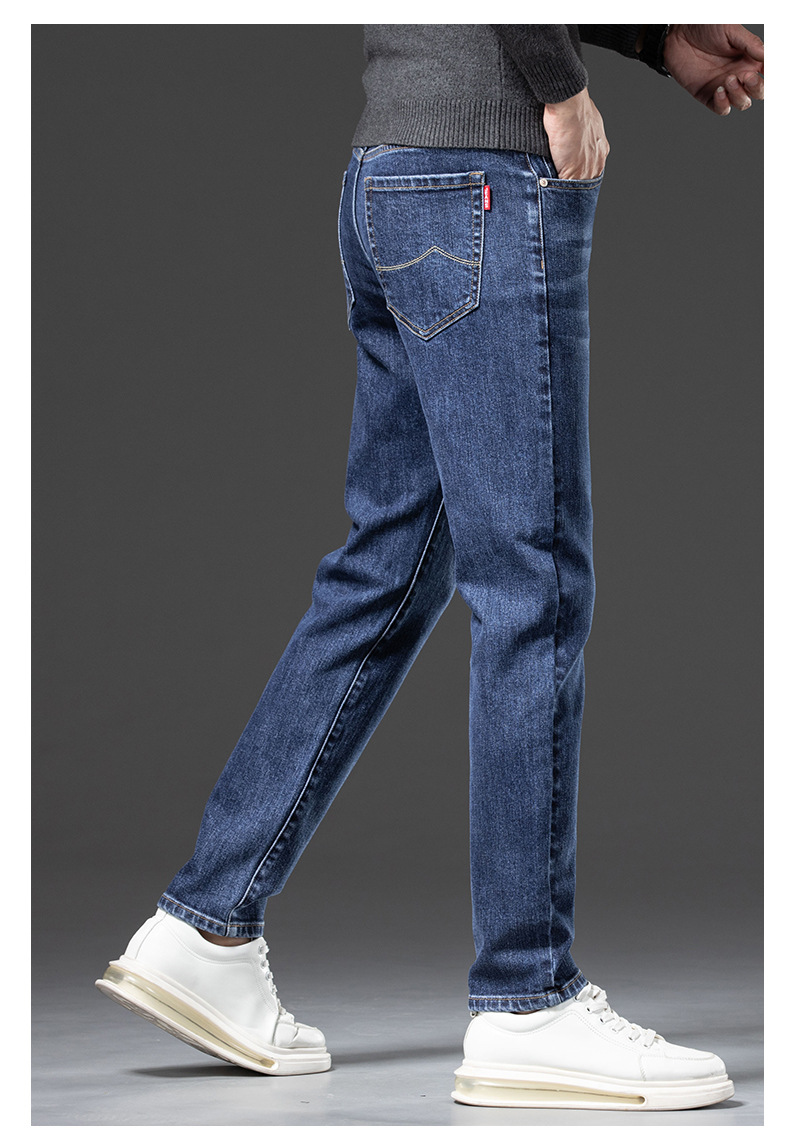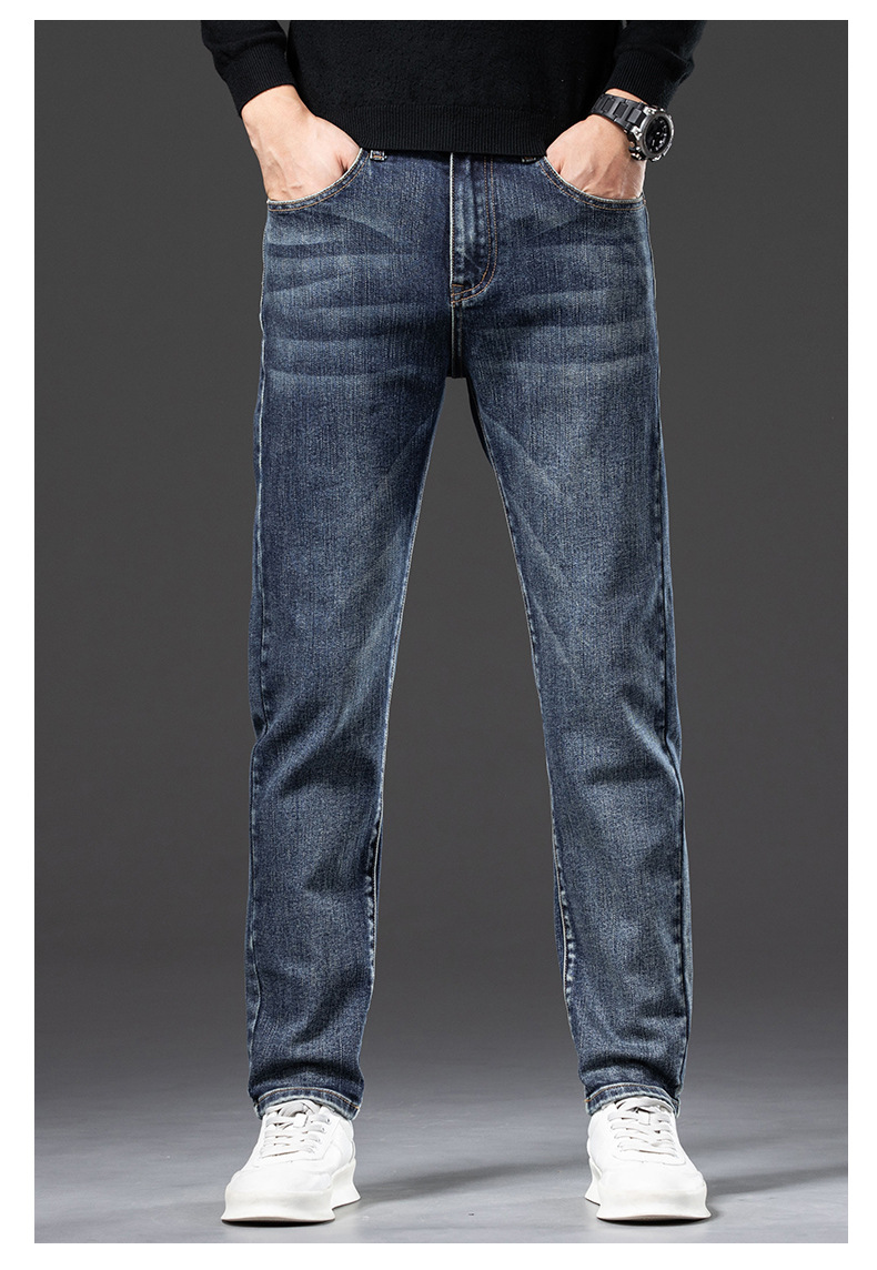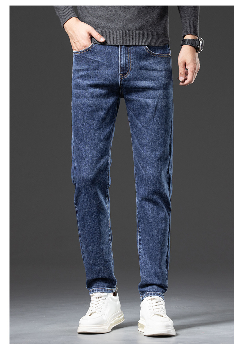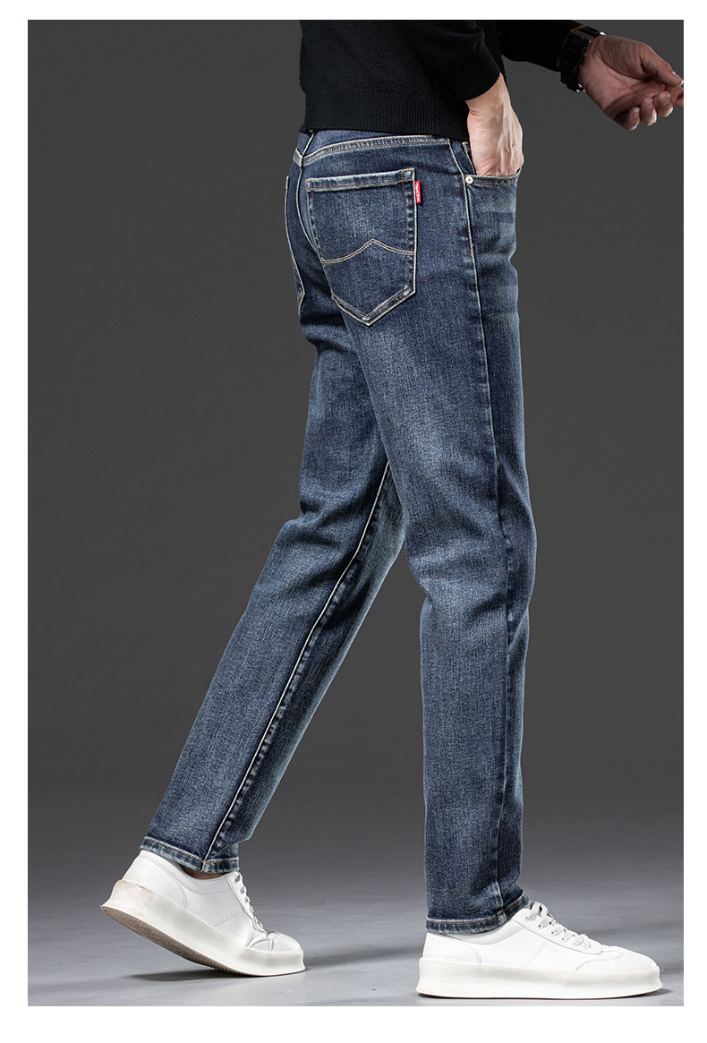 Chiếc quần jeans này có kiểu dáng ống thẳng, phù hợp cho cả tiết trời thu đông và mùa xuân. Chất vải co giãn nhẹ tạo cảm giác thoải mái, dễ chịu khi mặc và vận động. Thiết kế mang phong cách thời trang công sở, lịch sự nhưng vẫn trẻ trung. Bạn có thể kết hợp với áo sơ mi hoặc áo thun để tạo nên những bộ trang phục hàng ngày. | Tên sản phẩm: Quần Nam Chất Liệu Jean Bò Hàng Mùa Xuân Thu Đông - Thời Trang Nam | Mã sản phẩm: B8422 - Giá: 870.000đ | Mã nhà sản xuất: GUDNG-G03Hình ảnh sản phẩm