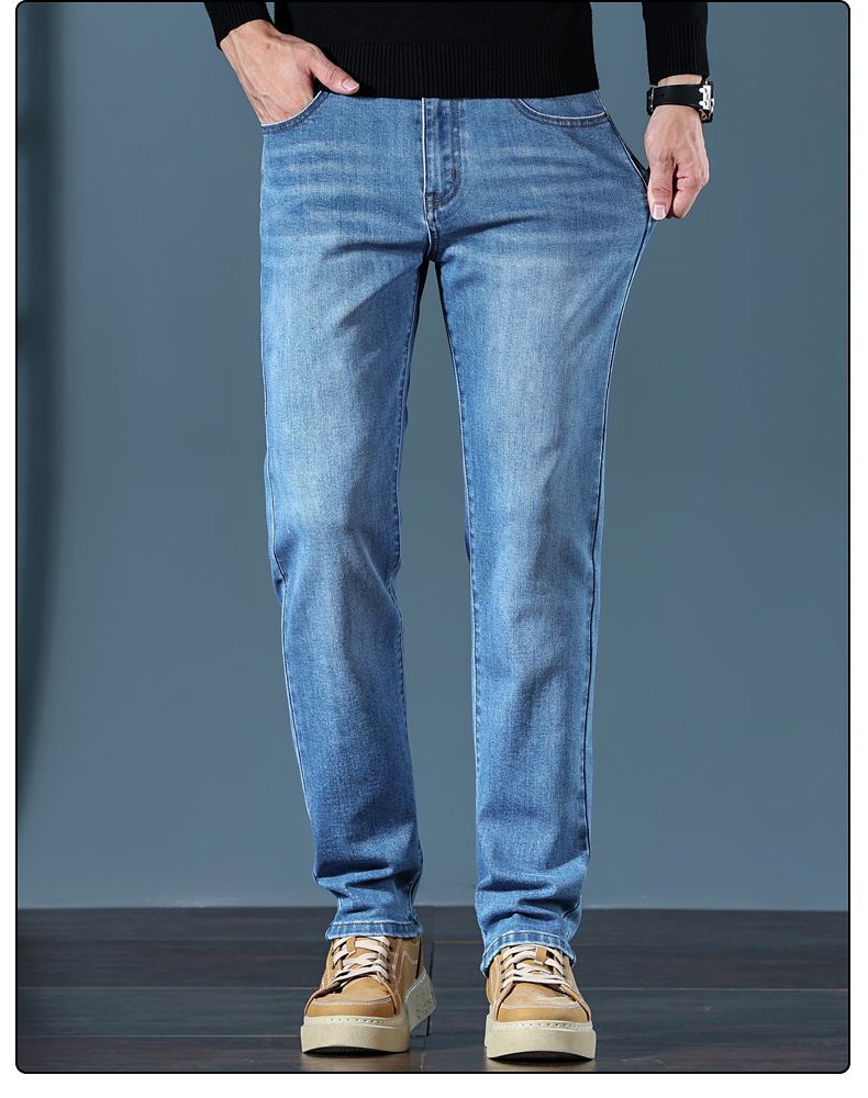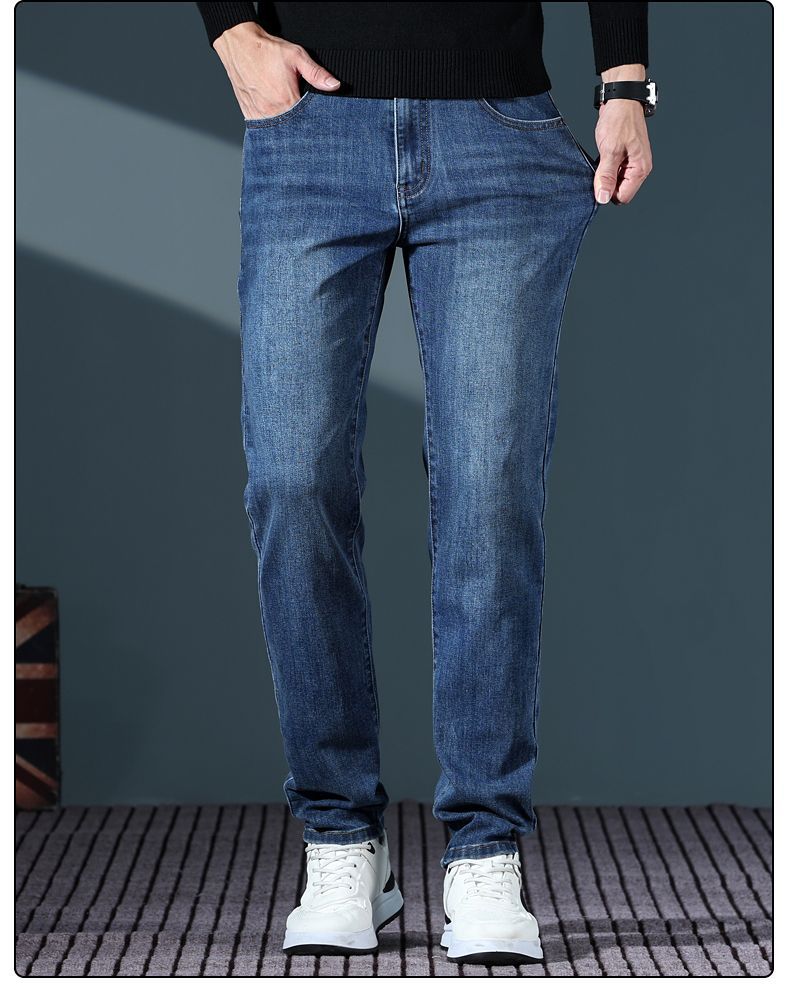 Chiếc quần jeans này có kiểu dáng thẳng vừa vặn, ôm nhẹ vào form người mà không gây cảm giác gò bó nhờ chất liệu co giãn nhẹ. Đây là mẫu thiết kế mới cho mùa thu đông, với phần lưng được may cao vừa phải, tạo cảm giác thoải mái và hỗ trợ tốt hơn khi mặc. Bạn có thể dễ dàng phối hợp với áo thun, áo sơ mi hay áo len để tạo nên những phong cách khác nhau, phù hợp cho nhiều hoạt động hằng ngày. | Tên sản phẩm: Quần Nam Chất Liệu Jean Bò Dáng Ôm Hàng Mùa Xuân Thu Đông Phong Cách Trẻ Trung - Thời Trang Nam | Mã sản phẩm: B8442 - Giá: 870.000đ | Mã nhà sản xuất: GUDNG-G03Hình ảnh sản phẩm