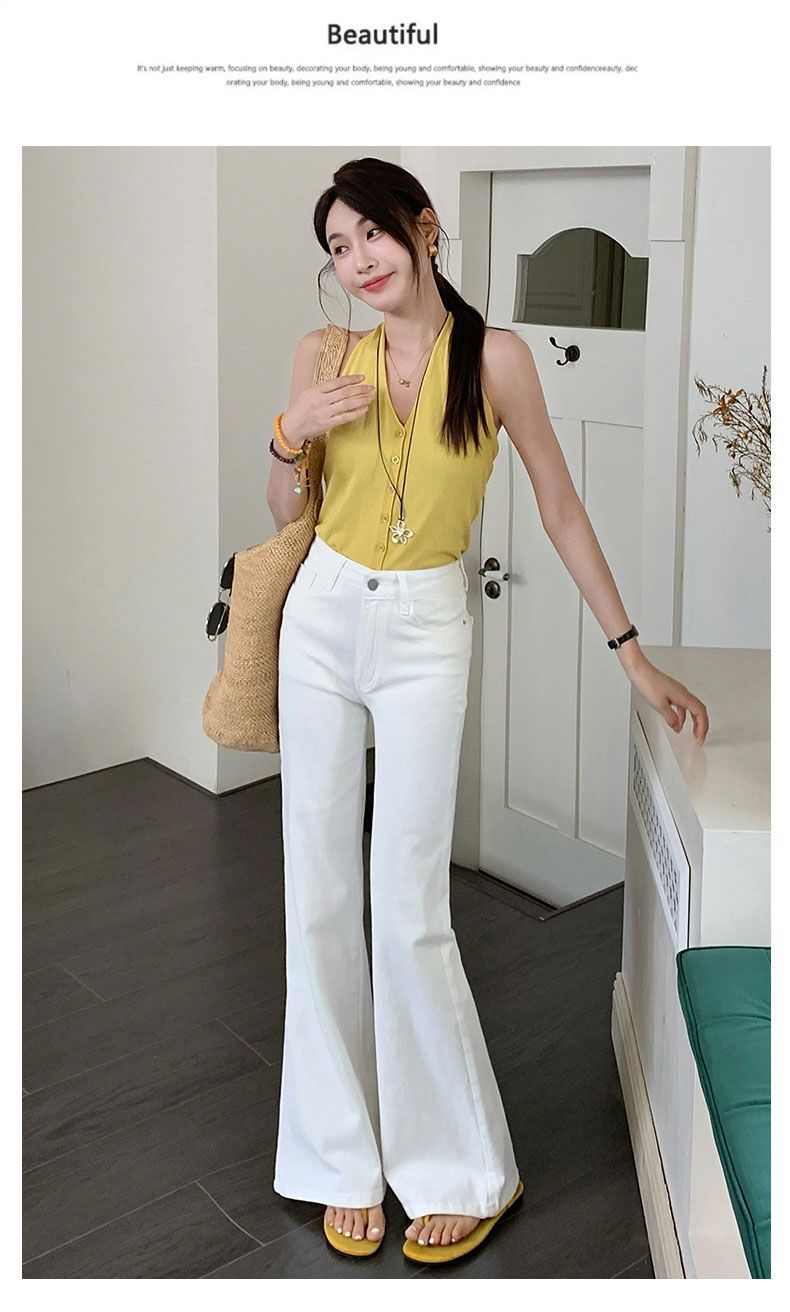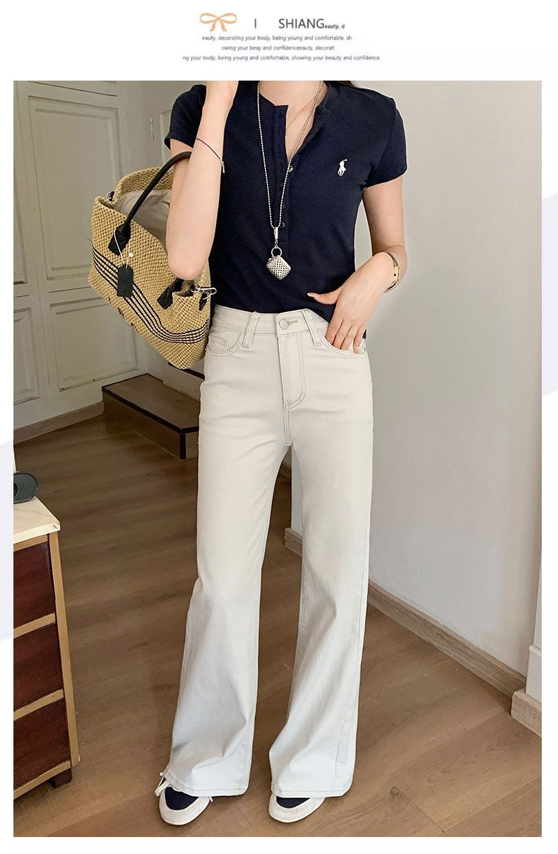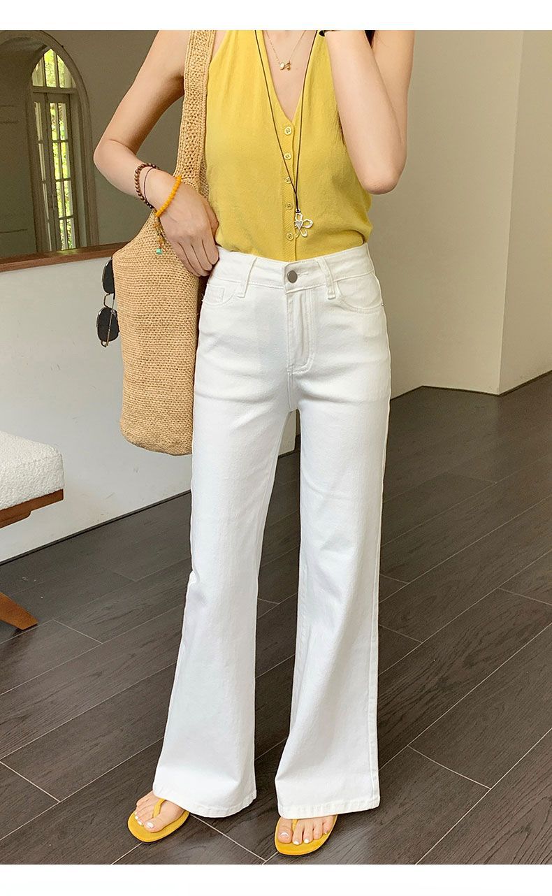 Chiếc quần dành cho những ngày đầu thu, với sắc màu trắng ngà dịu nhẹ. Kiểu dáng ống loe kết hợp cùng phần thân trên dáng thẳng và cạp cao, tạo nên vẻ đẹp thanh lịch, thoải mái. Chất vải jeans co giãn nhẹ giúp bạn dễ dàng vận động. Cách phối đồ rất đơn giản: hãy kết hợp cùng áo thun hoặc áo sơ mi để có một vẻ ngoài trẻ trung và năng động. | Tên sản phẩm: Quần Nữ Chất Liệu Jean Bò Hàng Mùa Xuân Thu Đông - Thời Trang Nữ | Mã sản phẩm: B8453 - Giá: 990.000đ | Mã nhà sản xuất: GUDNG-G03Hình ảnh sản phẩm