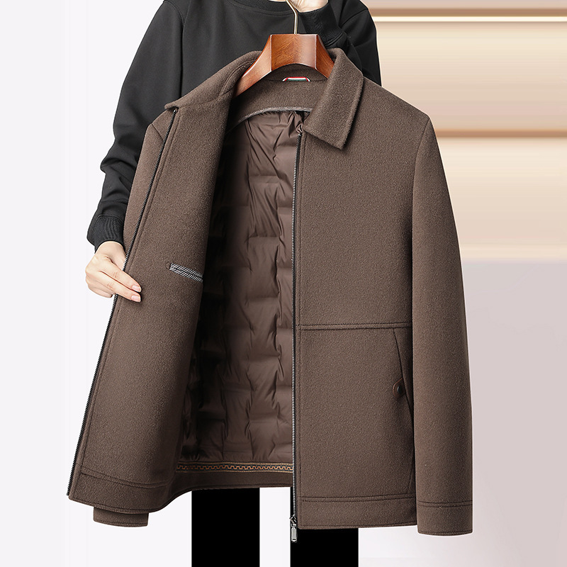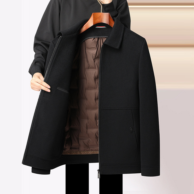 Áo khoác nam thiết kế ngắn gọn, phù hợp cho các bố trung niên. Chất liệu len tự nhiên dệt hai mặt ấm áp, bên trong có lớp lót lông vịt có thể tháo rời linh hoạt. Cổ áo kiểu bẻ mang đến vẻ lịch sự. Sản phẩm mặc trực tiếp ngoài áo thun hoặc áo len, dễ dàng phối cùng quần tây hoặc quần jean. Lớp lót có thể tháo ra khi thời tiết ấm áp hơn. | Tên sản phẩm: Áo Khoác Nam Kín Cổ Trung Niên - Thời Trang Nam | Mã sản phẩm: B8472 - Giá: 3.190.000đ | Mã nhà sản xuất: SUDI-G06Hình ảnh sản phẩm
