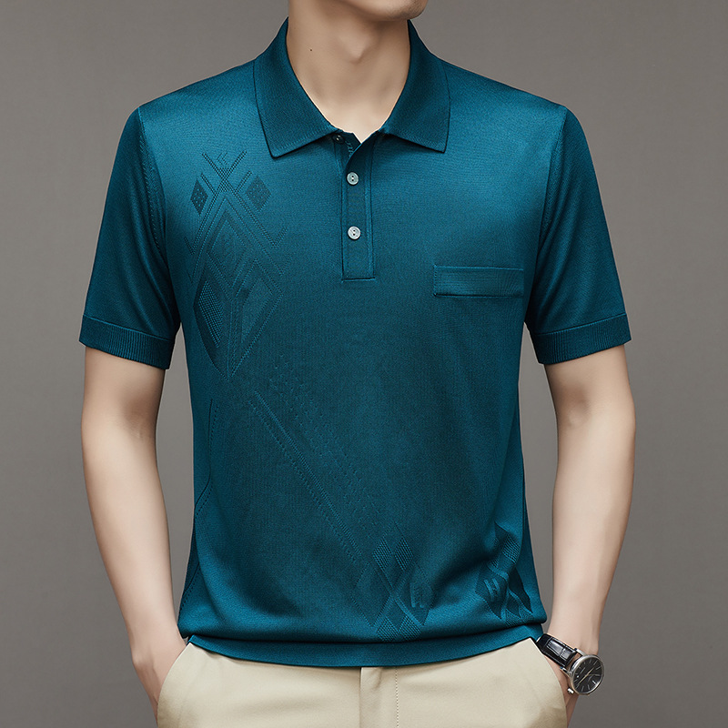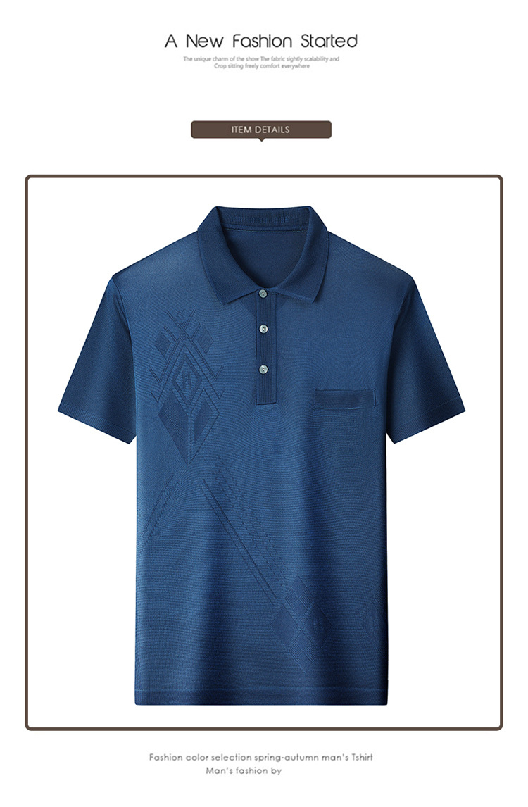 Áo thun ngắn tay dành cho nam, có cổ bẻ kiểu dáng Polo. Chất vải mát lạnh và nhẹ, tạo cảm giác dễ chịu khi mặc, đặc biệt phù hợp cho mùa hè. Sản phẩm có pha sợi ánh nhẹ, mang lại vẻ ngoài lịch sự. Bạn có thể mặc đi làm hoặc dùng trong các sinh hoạt hằng ngày. Giặt nhẹ với nước thường để giữ form áo và chất vải được bền lâu. | Tên sản phẩm: Áo Thun Nam Ngắn Tay Kín Cổ Hàng Mùa Hè Trung Niên - Thời Trang Nam | Mã sản phẩm: B8507 - Giá: 500.000đ | Mã nhà sản xuất: TOREAI-G01Hình ảnh sản phẩm