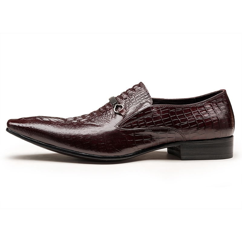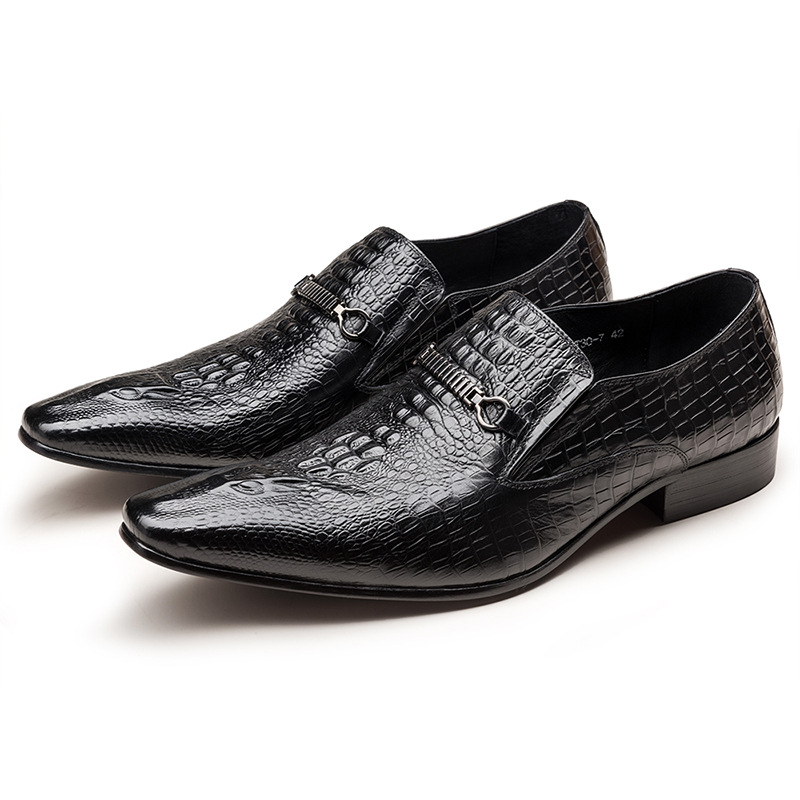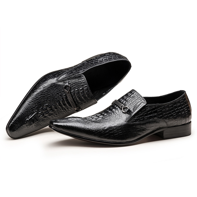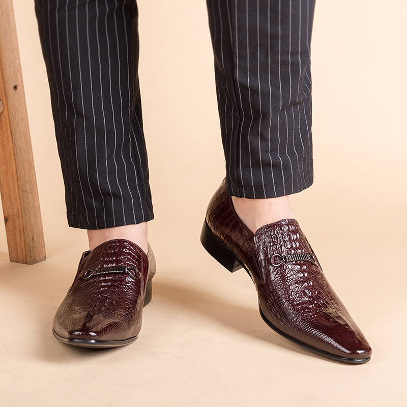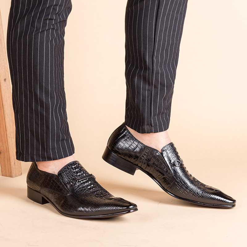 Giày tây nam kiểu dáng thoải mái, mặt giày được dập nổi hoa văn da cá sấu tinh tế. Sản phẩm làm từ lớp da bò thật, mang lại độ bền và cảm giác êm ái khi mang. Thiết kế mũi nhọn và kiểu xỏ chân tiện lợi, phù hợp cho cả những buổi làm việc hay dạo phố thư giãn. Bạn có thể kết hợp cùng quần âu hoặc quần jeans để có vẻ ngoài chỉn chu. | Tên sản phẩm: Giày Da Nam Chất Liệu Da Bò Vân Da Cá Sấu Mũi Nhọn Họa Tiết Hoa - Giày Dép Nam | Mã sản phẩm: B8539 - Giá: 2.860.000đ | Mã nhà sản xuất: SHDN-G06Hình ảnh sản phẩm