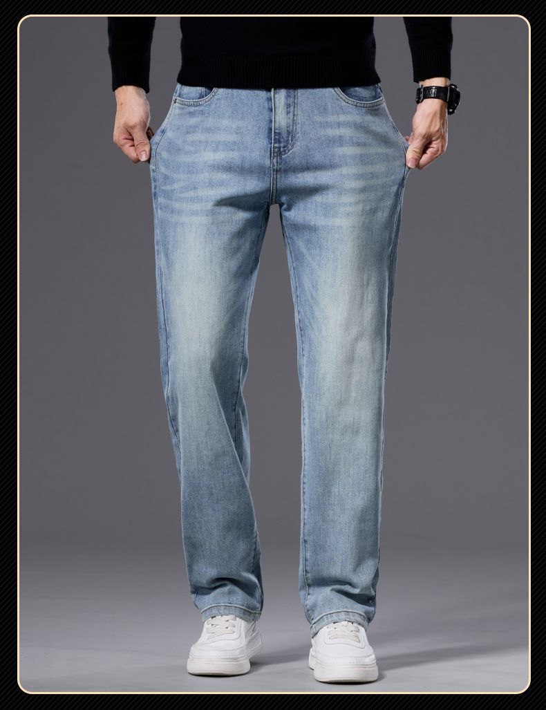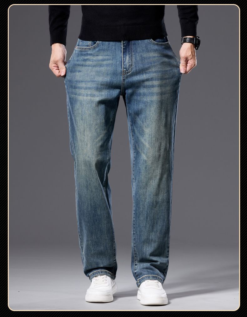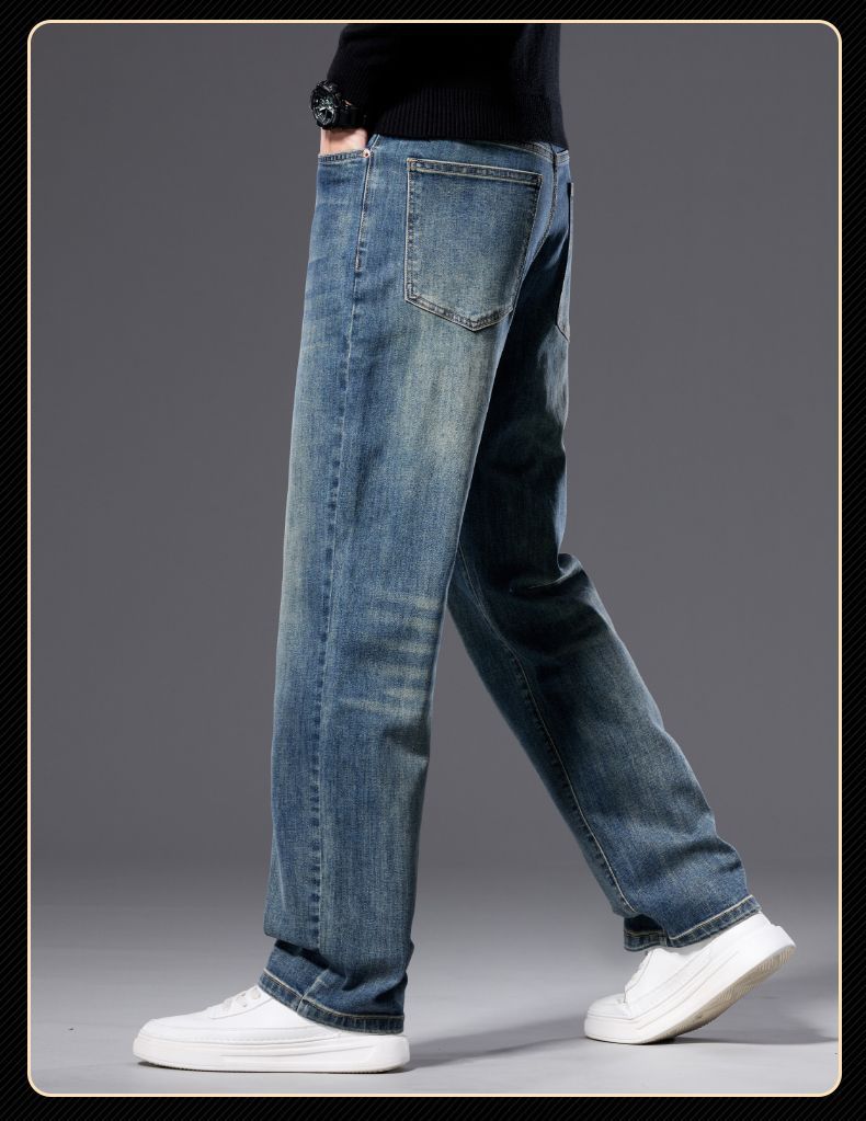 Chiếc quần jeans này có kiểu dáng ống thẳng mang phong cách cổ điển, phù hợp cho mùa thu. Chất vải dày dặn giúp giữ ấm nhẹ trong tiết trời se lạnh. Thiết kế đơn giản nhưng tinh tế, dễ dàng kết hợp với nhiều loại áo và giày khác nhau. Bạn có thể mặc đi làm, đi chơi hay trong các sinh hoạt hằng ngày. Sản phẩm dành cho nam giới, mang lại sự thoải mái và vừa vặn khi mặc. | Tên sản phẩm: Quần Nam Chất Liệu Jean Bò Hàng Mùa Xuân Thu Đông Phục Cổ Cổ Điển - Thời Trang Nam | Mã sản phẩm: B8614 - Giá: 990.000đ | Mã nhà sản xuất: GUDNG-G03Hình ảnh sản phẩm