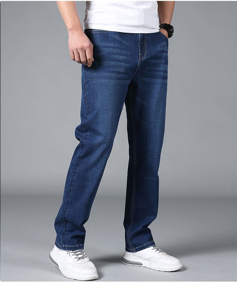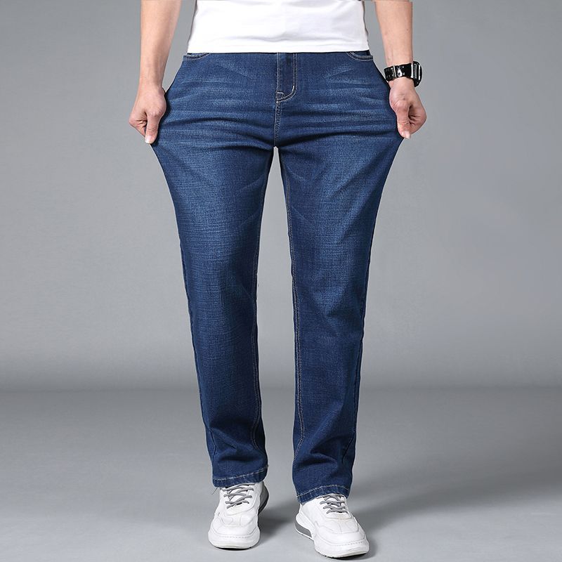 Quần jeans nam này được thiết kế dáng suông thẳng, phần ống rộng rãi thoải mái. Sản phẩm có phiên bản dài hơn, rất phù hợp cho những người có chiều cao. Chất vải co giãn nhẹ, mang lại cảm giác dễ chịu khi mặc cả vào mùa xuân và mùa thu. Bạn có thể phối cùng áo thun và giày thể thao cho phong cách hằng ngày. | Tên sản phẩm: Quần Nam Chất Liệu Jean Bò Hàng Mùa Xuân Thu Đông - Thời Trang Nam | Mã sản phẩm: B8634 - Giá: 940.000đ | Mã nhà sản xuất: GUDNG-G03Hình ảnh sản phẩm