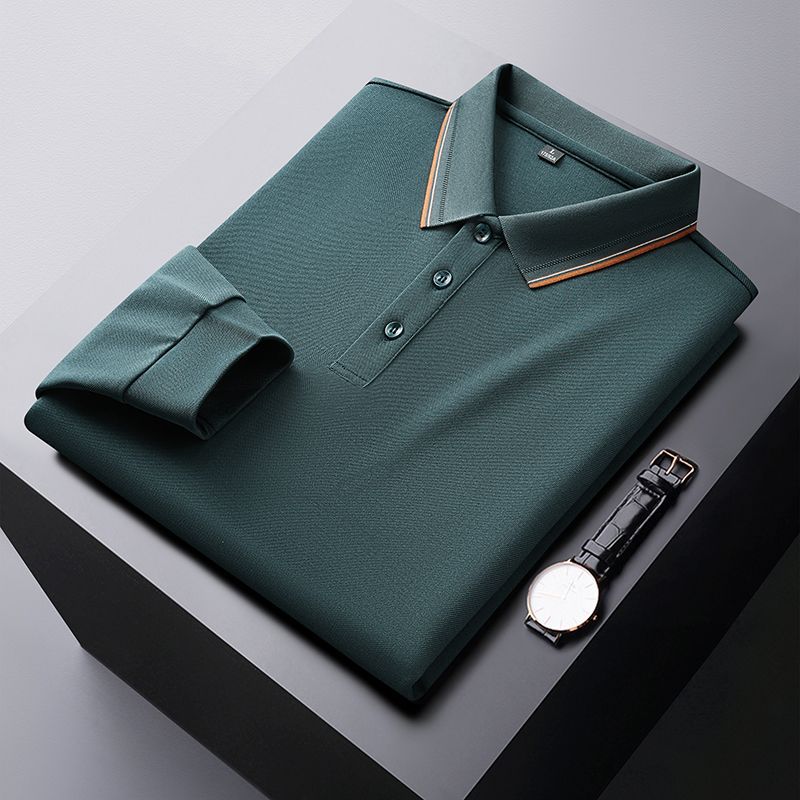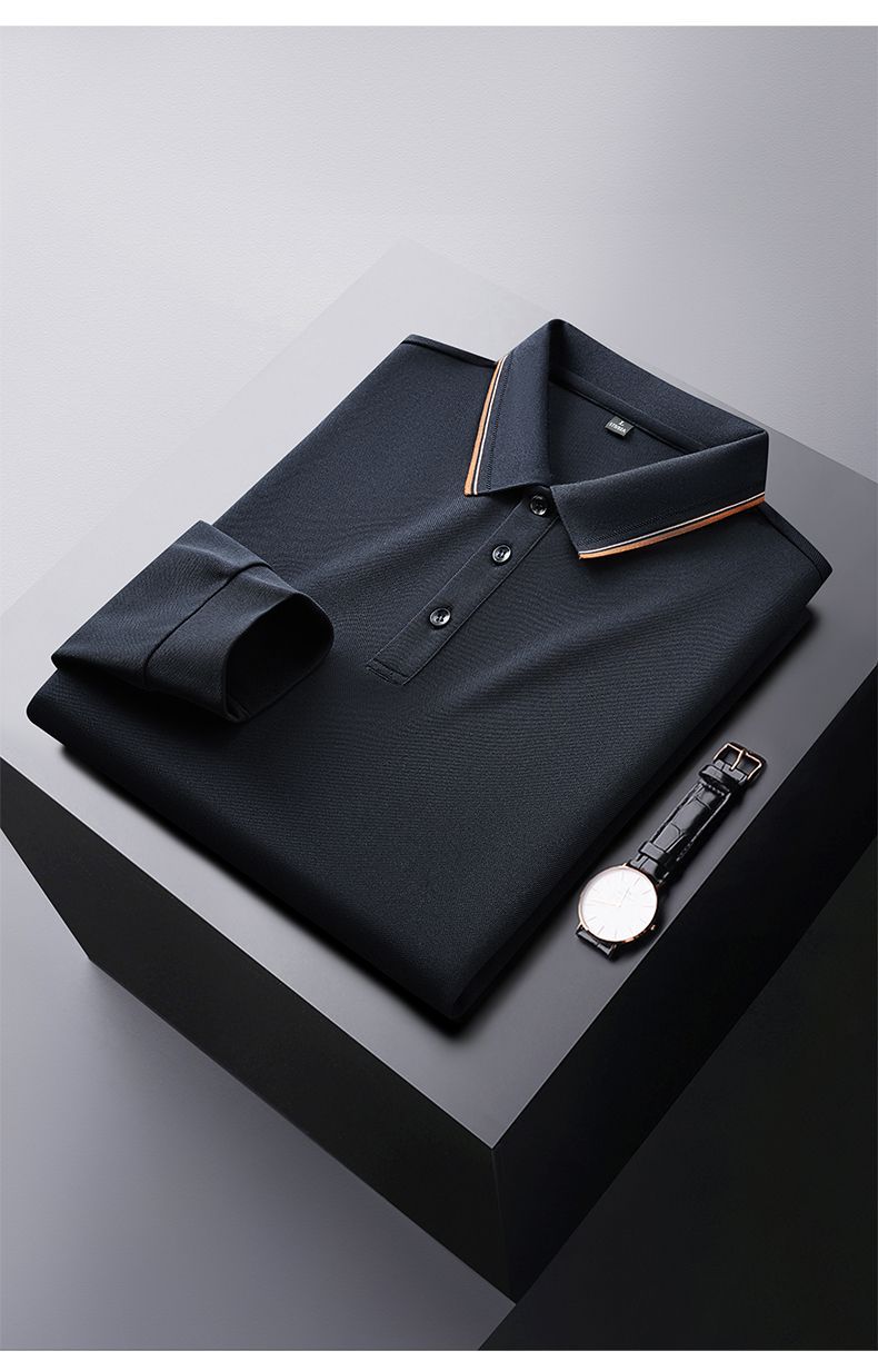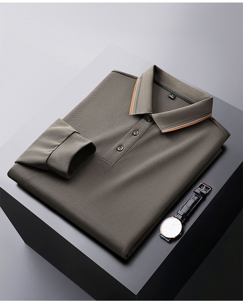 Áo dài tay kiểu polo nam dành cho mùa thu, có cổ bẻ và thiết kế đơn giản với màu sắc thuần nhất. Sản phẩm được dệt từ sợi tơ tằm tự nhiên, mang lại cảm giác mềm mại, nhẹ nhàng và thoáng mát khi mặc. Kiểu dáng linh hoạt, dễ dàng phối hợp với nhiều loại trang phục khác nhau. Có thể mặc làm áo bên trong hoặc mặc riêng đều phù hợp. Giữ áo luôn bền đẹp bằng cách giặt tay và phơi ở nơi râm mát. | Tên sản phẩm: Áo Sơ Mi Nam Chất Liệu Lụa Tơ Tằm Dài Tay Kín Cổ Hàng Mùa Xuân Thu Đông - Thời Trang Nam | Mã sản phẩm: B8680 - Giá: 880.000đ | Mã nhà sản xuất: GUDNG-G03Hình ảnh sản phẩm