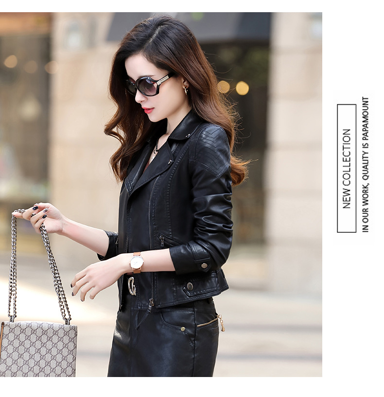 Áo khoác da nữ dáng ngắn, kiểu dáng jacket cá tính phù hợp tiết trời thu đông. Chất liệu da mềm mại giúp giữ ấm nhẹ nhàng, không gây cứng hay bí bách khi mặc. Thiết kế ôm vừa vặn với các chi tiết khóa kéo và phối túi tiện lợi. Dễ dàng phối cùng quần jeans và áo thun để tạo vẻ ngoài năng động. Bảo quản nơi khô ráo, tránh tiếp xúc trực tiếp với nguồn nhiệt cao. | Tên sản phẩm: Áo Da Nữ Hàng Mùa Xuân Thu Đông - Thời Trang Nữ | Mã sản phẩm: B8777 - Giá: 1.440.000đ | Mã nhà sản xuất: WODIG-G04Hình ảnh sản phẩm