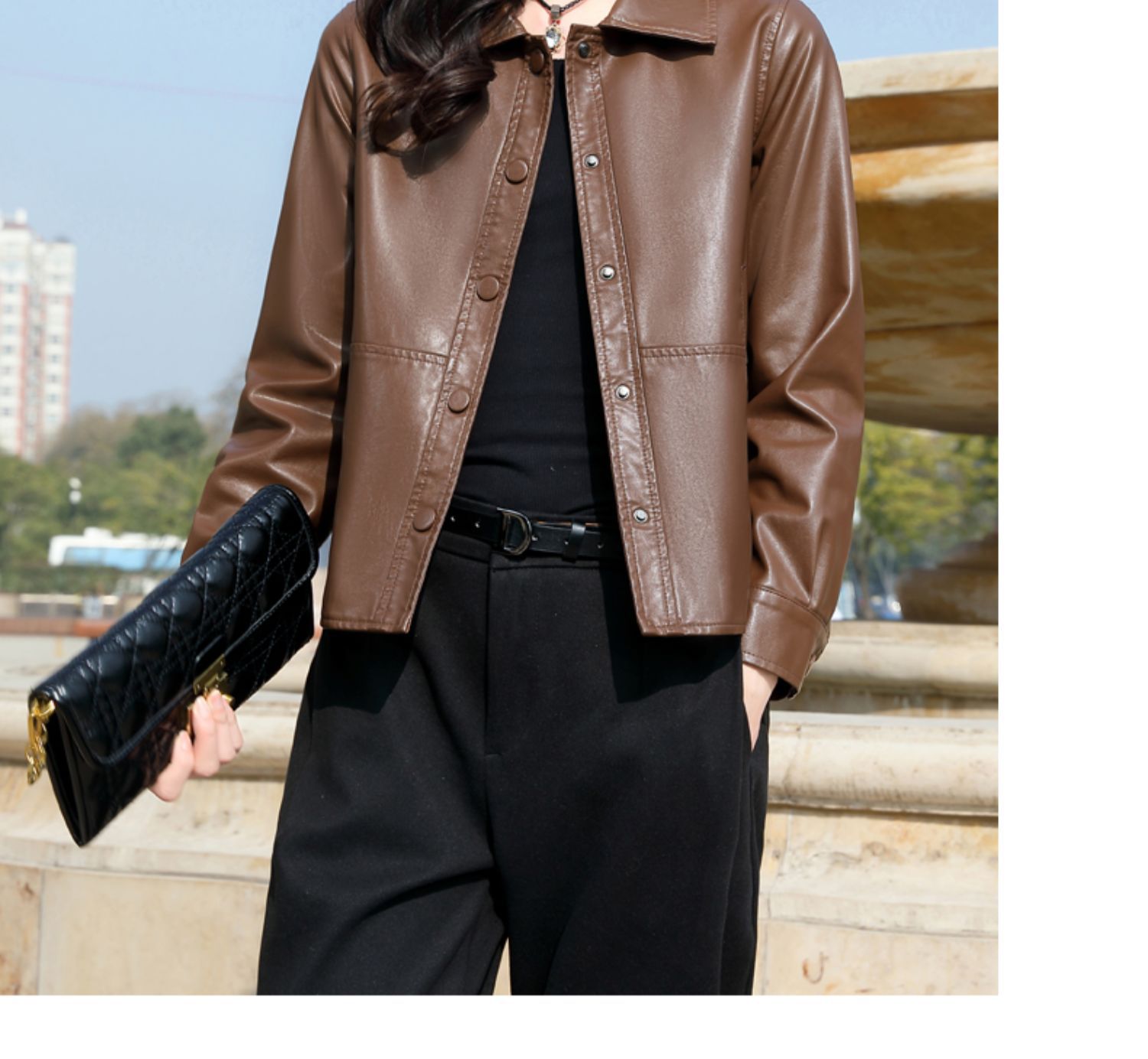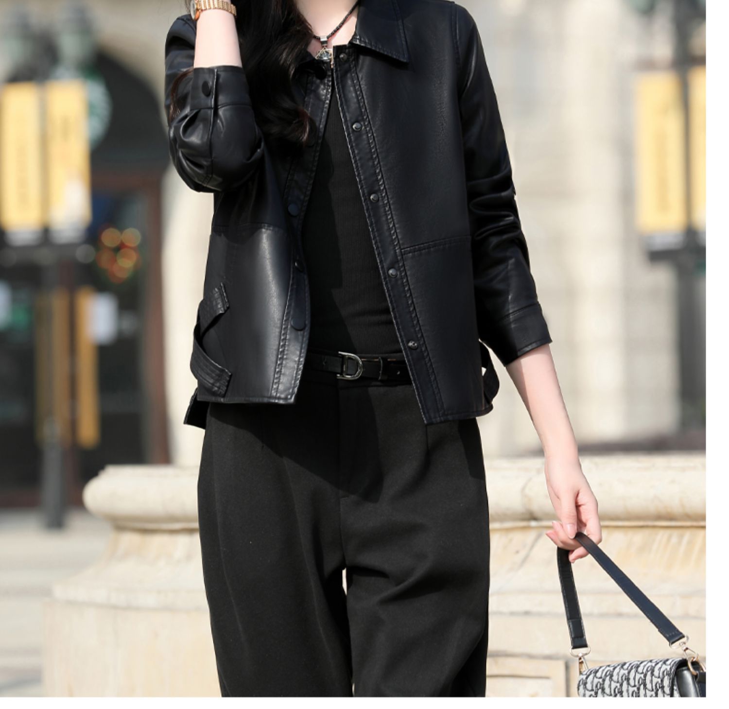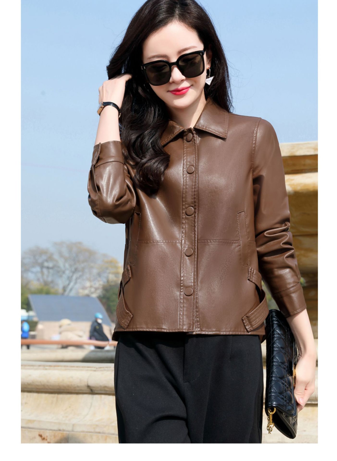 Áo khoác mỏng kiểu dáng ngắn gọn, dành riêng cho tiết trời sang thu. Chất liệu vải giả da mềm mại, tạo cảm giác dễ chịu khi mặc. Thiết kế ôm vừa vặn giúp tôn dáng, phù hợp phối cùng nhiều loại trang phục như quần jeans hay váy. Bạn có thể mặc hằng ngày để đi làm, đi chơi. Chỉ cần khoác nhẹ bên ngoài là đã có ngay vẻ ngoài năng động và trẻ trung. | Tên sản phẩm: Áo Da Nữ Trông Trẻ Hơn Tuổi Hàng Mùa Xuân Thu Đông - Thời Trang Nữ | Mã sản phẩm: B8784 - Giá: 1.540.000đ | Mã nhà sản xuất: WODIG-G04Hình ảnh sản phẩm