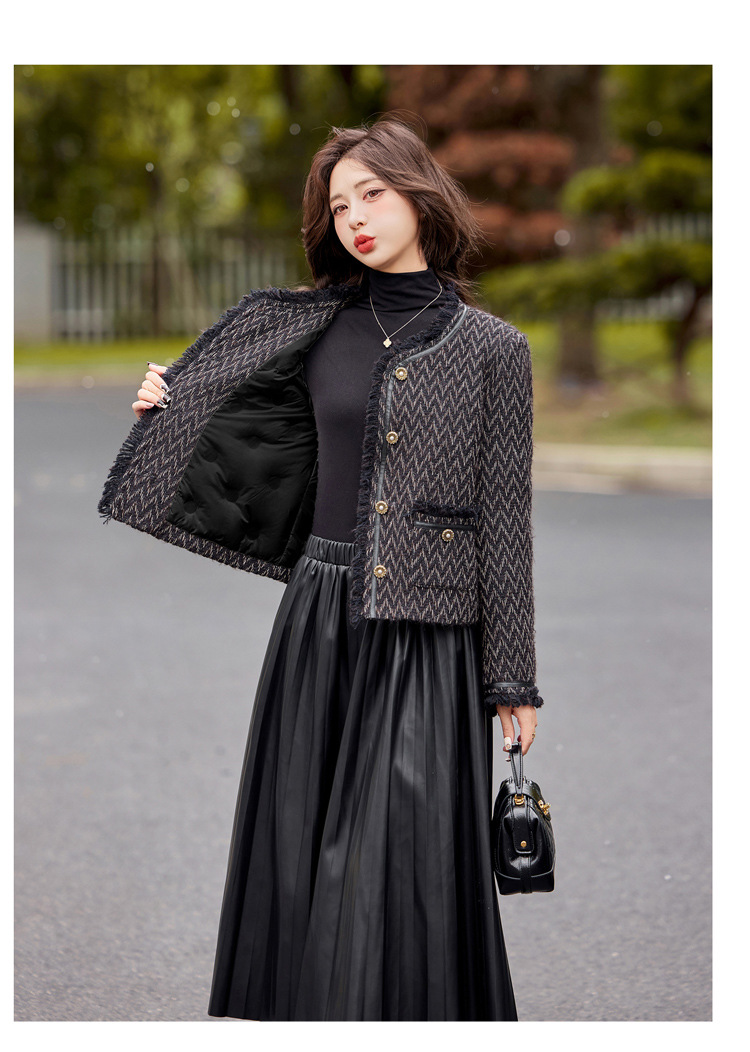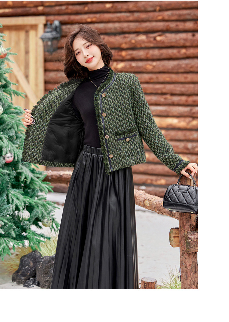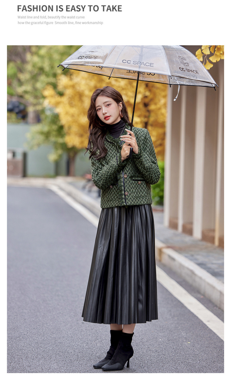 Áo khoác nữ dáng dài, phù hợp mặc khi trời lạnh. Kiểu dáng kết hợp họa tiết vân rủ và hàng cúc đơn phía trước. Chất liệu bên ngoài bằng vải dệt dày, bên trong có lớp lông mềm giữ ấm. Có thể mặc khi đi làm hoặc dạo phố. Phối cùng quần tây hoặc váy liền đều phù hợp. Giúp người mặc giữ ấm mà vẫn gọn gàng. | Tên sản phẩm: Áo Khoác Nữ Hàng Mùa Xuân Thu Đông - Thời Trang Nữ | Mã sản phẩm: B8819 - Giá: 2.410.000đ | Mã nhà sản xuất: HADG-G05Hình ảnh sản phẩm