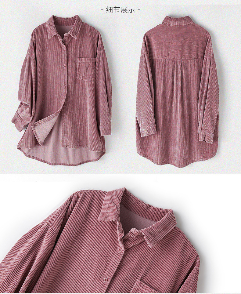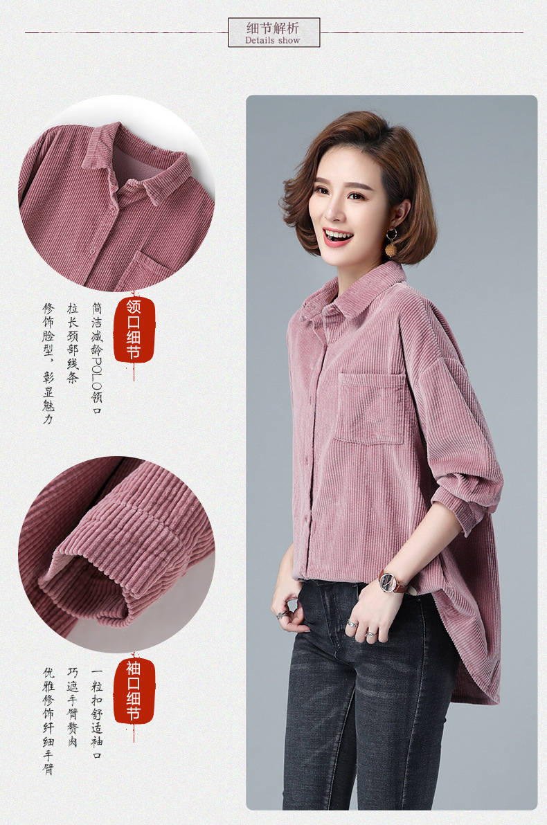 Áo sơ mi nữ chất liệu nhung sợi, kiểu dáng dễ phối đồ cho các dịp trong năm. Thiết kế theo phong cách trẻ trung, hiện đại với những đường nét cách điệu tinh tế. Sản phẩm có thể mặc như áo khoác nhẹ hoặc kết hợp cùng nhiều loại trang phục khác. Dùng làm áo mặc hàng ngày, phù hợp cho thời tiết mát mẻ. Chất vải mềm mại mang lại sự thoải mái khi sử dụng. | Tên sản phẩm: Áo Khoác Nữ Dài Tay Hàng Mùa Xuân Thu Đông Phong Cách Hàn Quốc - Thời Trang Nữ | Mã sản phẩm: B8888 - Giá: 1.240.000đ | Mã nhà sản xuất: WODTH-G04Hình ảnh sản phẩm