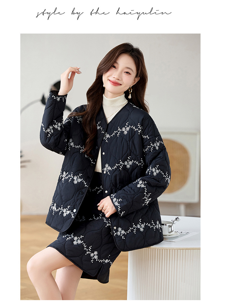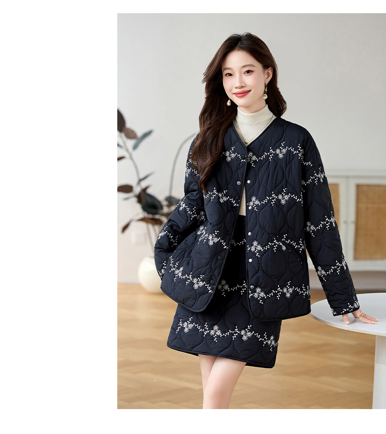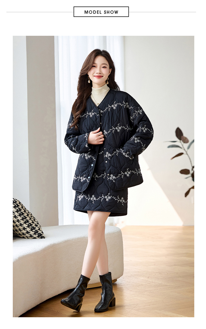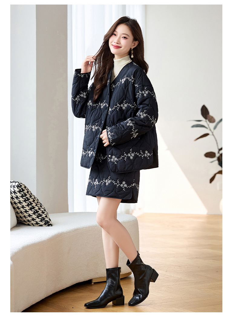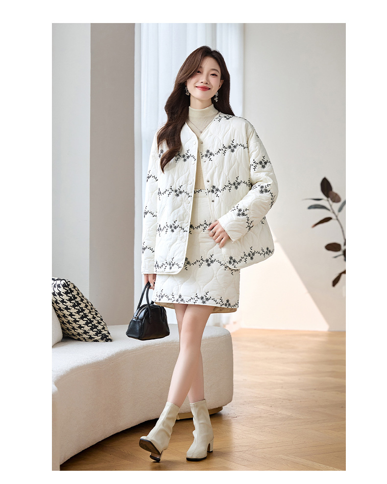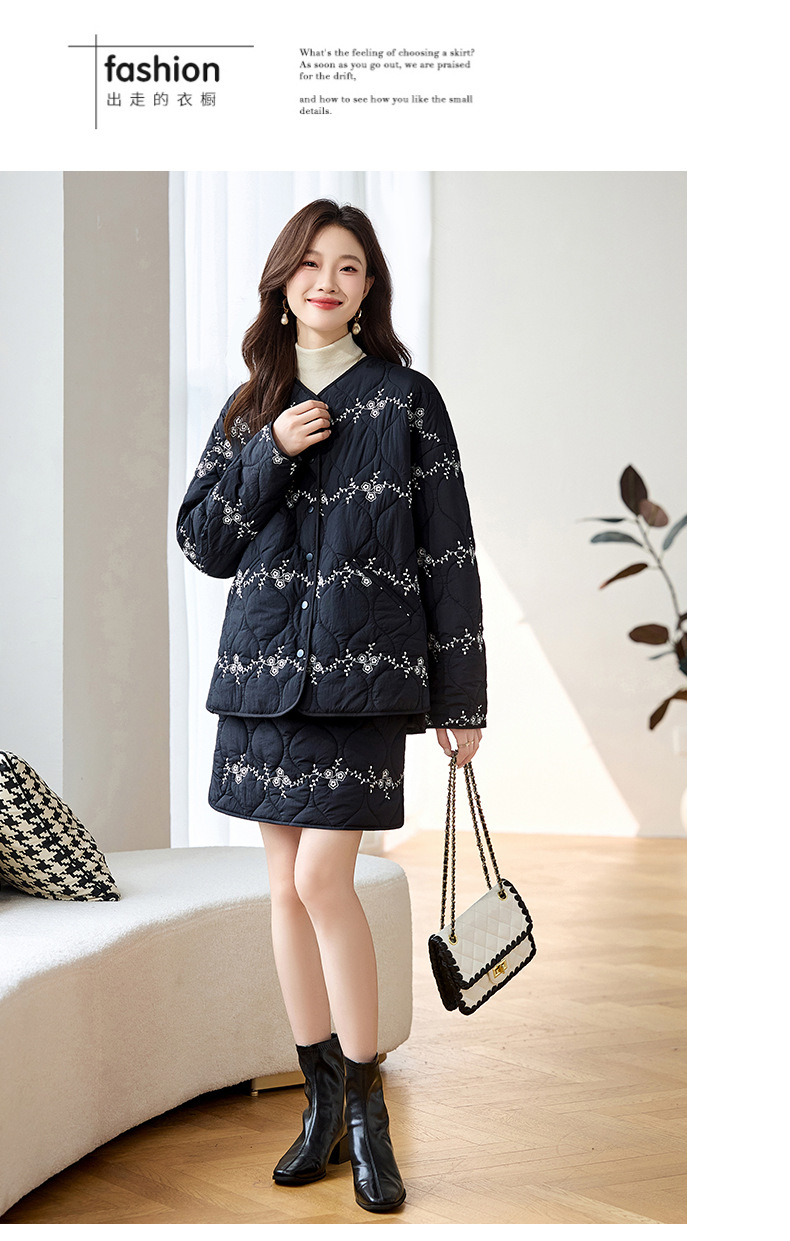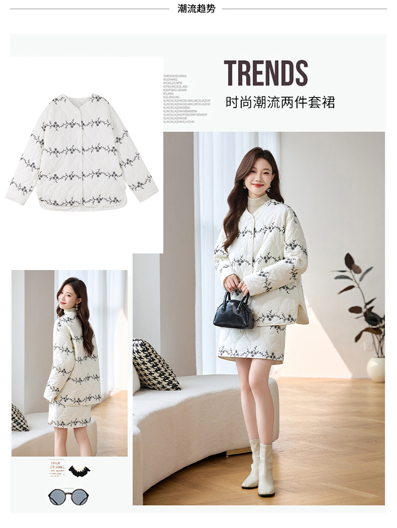 Bộ trang phục hai mảnh này gồm áo khoác dáng dài và chân váy ngắn, được thiết kế theo phong cách trẻ trung, năng động. Chất vải mềm mại, bên trong có lớp lót ấm áp, thích hợp mặc trong tiết trời se lạnh. Họa tiết in nổi bật tạo điểm nhấn cho bộ trang phục. Bạn có thể phối cùng giày thể thao và túi xách để tạo nên vẻ ngoài cá tính, thoải mái cho những buổi gặp gỡ bạn bè hoặc dạo phố. | Tên sản phẩm: Đồ Bộ Nữ Chất Liệu Vải Bông Cả Bộ 2 Món Họa Tiết Hoa Dày Ấm Hàng Mùa Xuân Thu Đông Phong Cách Hàn Quốc - Thời Trang Nữ | Mã sản phẩm: B8901 - Giá: 1.830.000đ | Mã nhà sản xuất: HADG-G05Hình ảnh sản phẩm