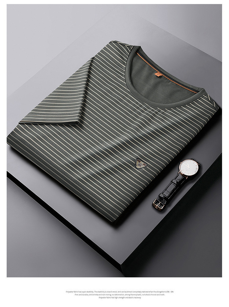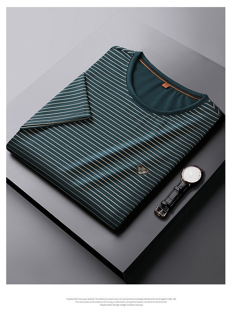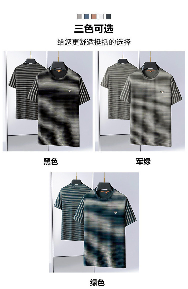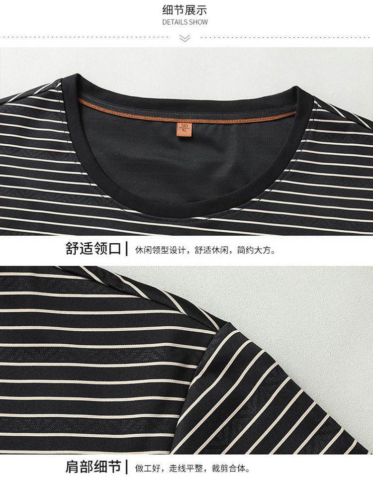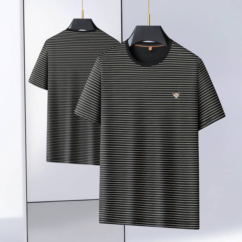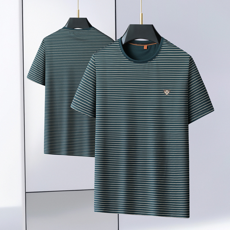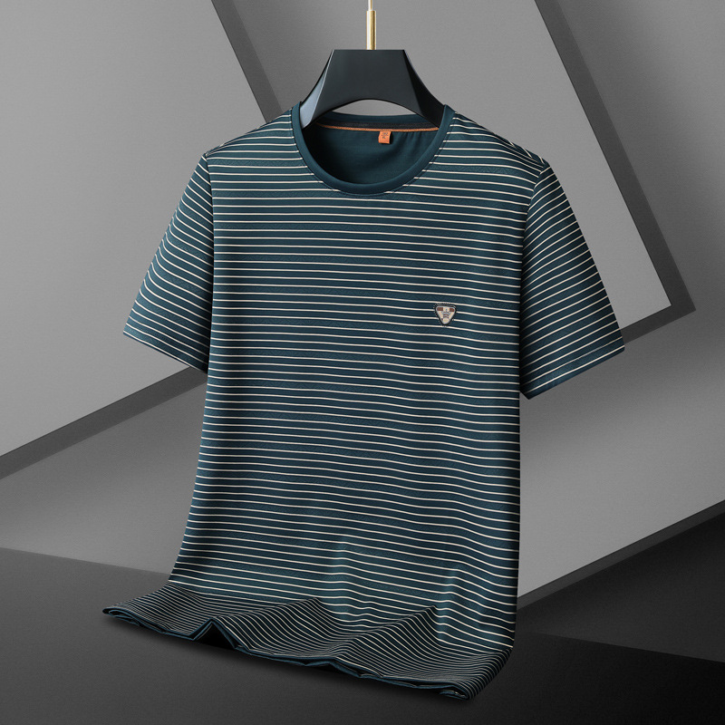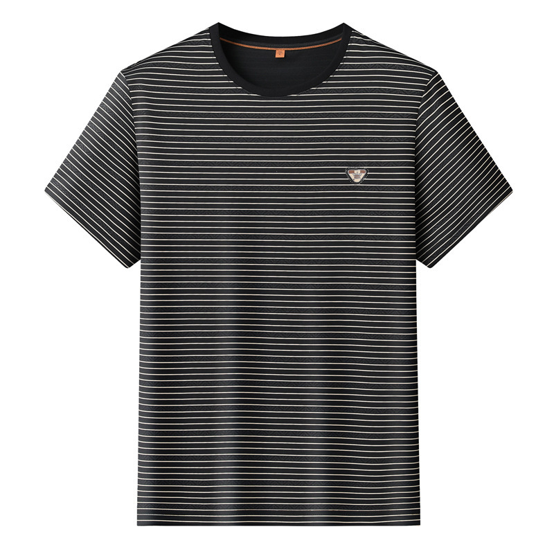 Áo thun ngắn tay dành cho nam, kiểu dáng cổ tròn với họa tiết sọc. Sản phẩm được may từ chất vải mát lạnh, mang lại cảm giác dễ chịu khi mặc vào mùa hè. Thiết kế có phần rộng rãi hơn, giúp tôn lên vóc dáng một cách cân đối. Bạn có thể mặc hàng ngày, kết hợp cùng quần shorts hoặc quần dài để tạo nên những bộ trang phục thoải mái. | Tên sản phẩm: Áo Thun Nam Big Size Ngoại Cỡ Ngắn Tay Hàng Mùa Hè - Thời Trang Nam | Mã sản phẩm: B9036 - Giá: 720.000đ | Mã nhà sản xuất: SUDER-G02Hình ảnh sản phẩm