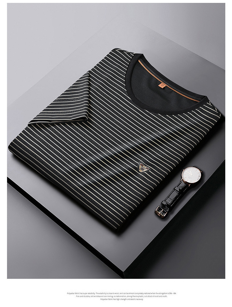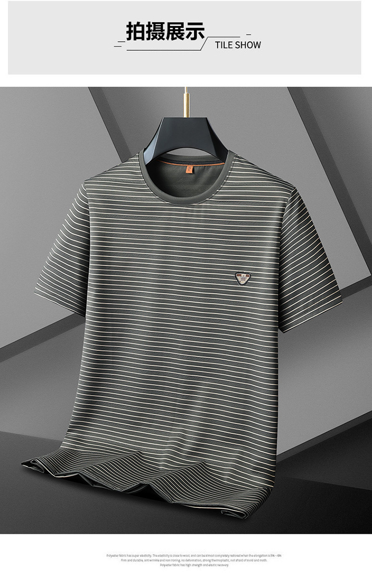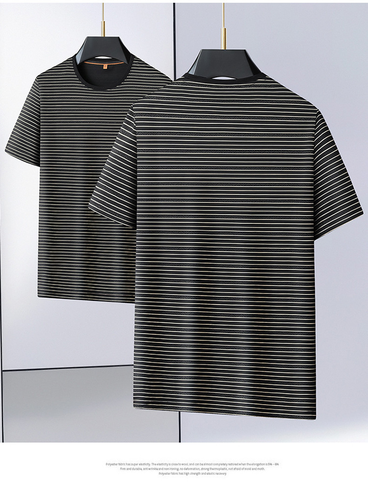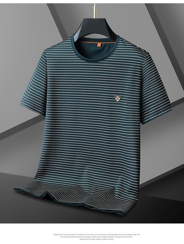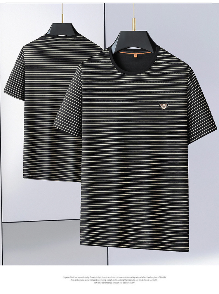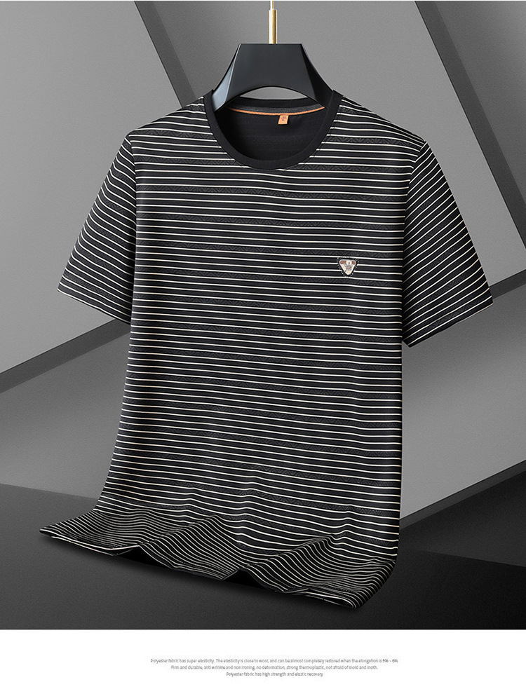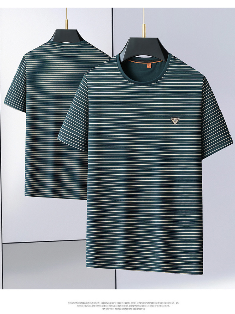 Áo thun ngắn tay dành cho nam, kiểu dáng cổ tròn với họa tiết sọc. Sản phẩm được may từ chất vải mát lạnh, mang lại cảm giác dễ chịu khi mặc vào mùa hè. Thiết kế có phần rộng rãi hơn, giúp tôn lên vóc dáng một cách cân đối. Bạn có thể mặc hàng ngày, kết hợp cùng quần shorts hoặc quần dài để tạo nên những bộ trang phục thoải mái. | Tên sản phẩm: Áo Thun Nam Big Size Ngoại Cỡ Ngắn Tay Hàng Mùa Hè - Thời Trang Nam | Mã sản phẩm: B9036 - Giá: 720.000đ | Mã nhà sản xuất: SUDER-G02Hình ảnh sản phẩm