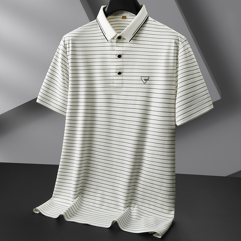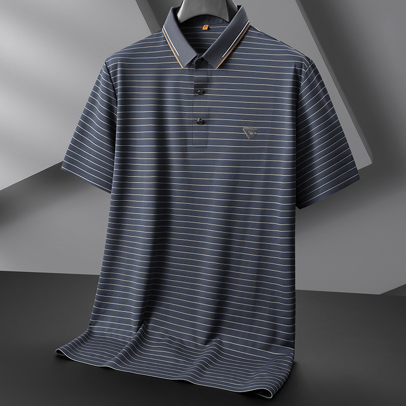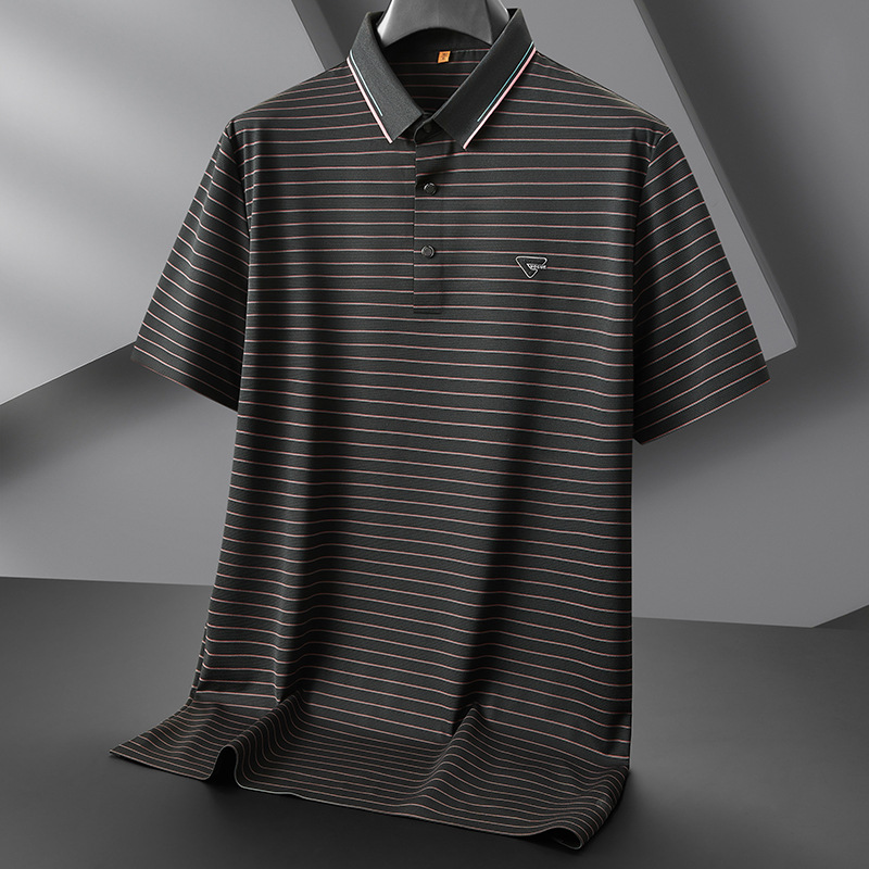 Áo thun ngắn tay dành cho nam, thiết kế kiểu áo polo cổ bẻ với họa tiết sọc. Sản phẩm có form rộng rãi, phù hợp cho người có thân hình mập mạp. Chất vải mềm mại, thoáng mát, dễ chịu khi mặc vào mùa hè. Bạn có thể mặc đi làm trong môi trường không quy định nghiêm ngặt hoặc dùng làm trang phục đi chơi hàng ngày. Giặt với nước thường và phơi ở nơi thoáng mát để giữ form áo. | Tên sản phẩm: Áo Thun Nam Big Size Ngoại Cỡ Ngắn Tay Kín Cổ Hàng Mùa Hè - Thời Trang Nam | Mã sản phẩm: B9070 - Giá: 1.020.000đ | Mã nhà sản xuất: SUDER-G03Hình ảnh sản phẩm