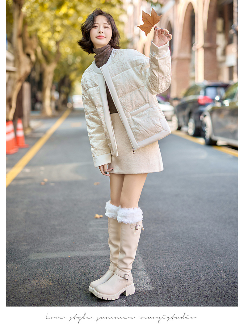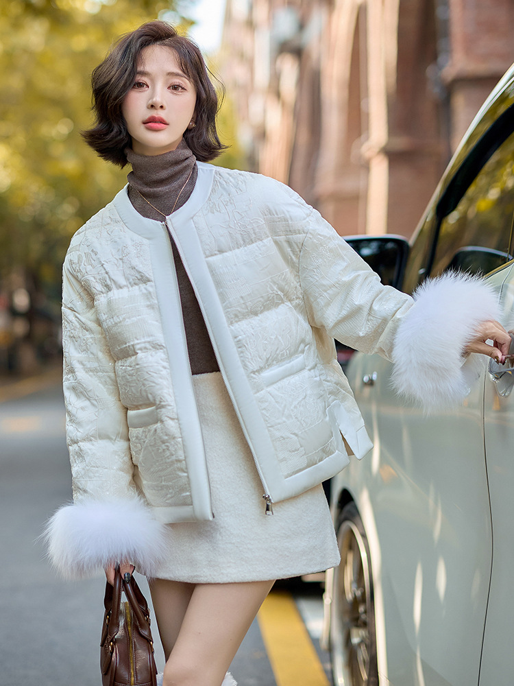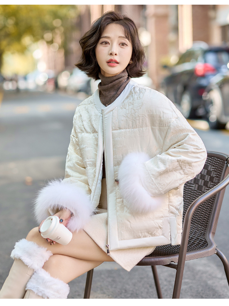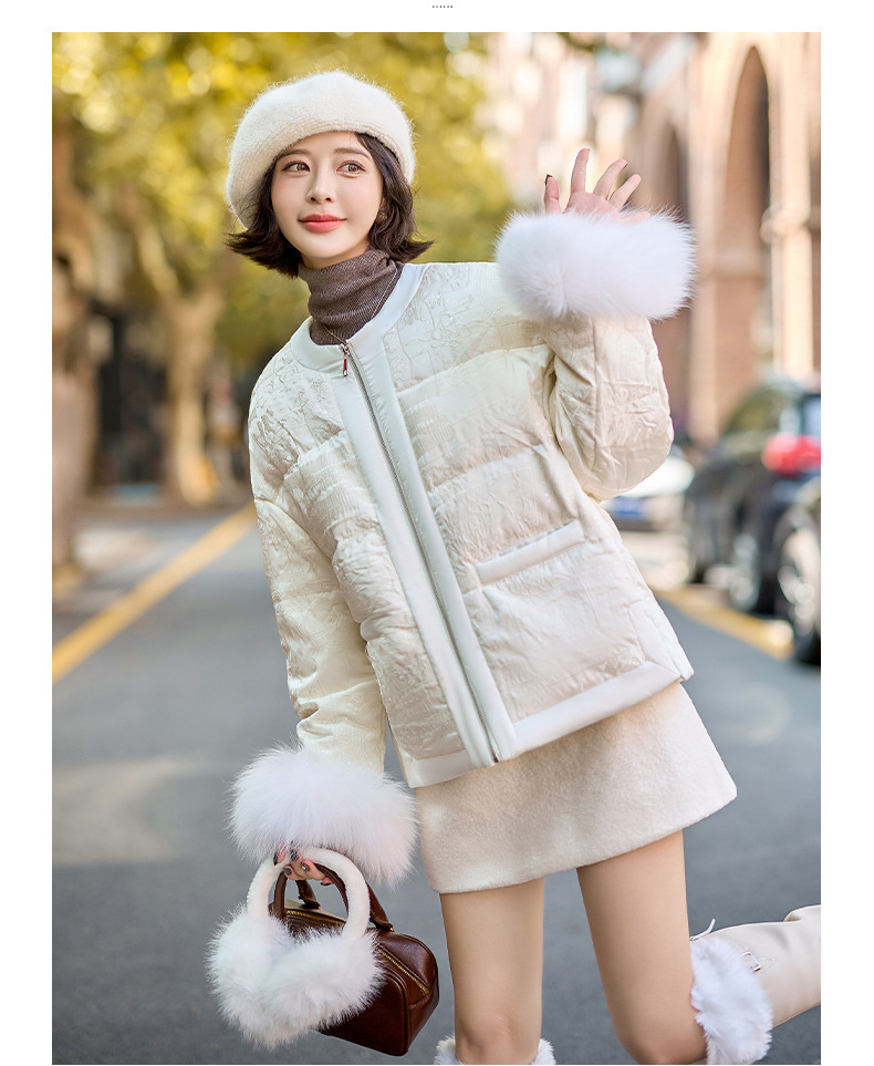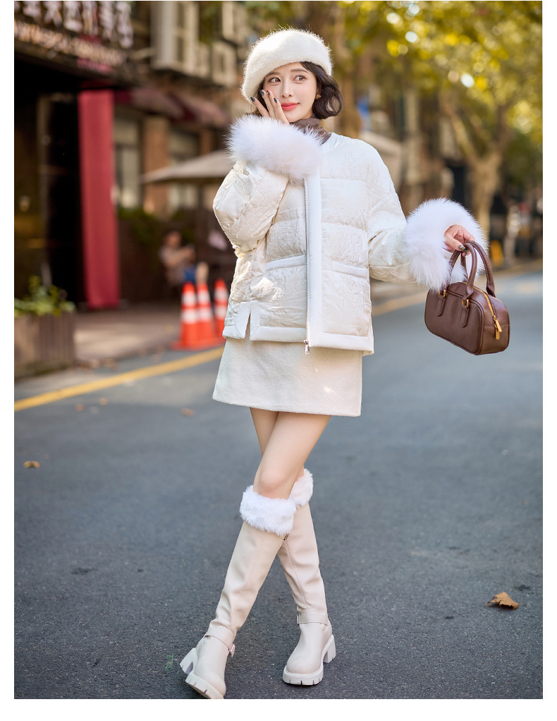 Áo khoác nữ dáng ngắn, thiết kế theo phong cách thanh lịch, dành riêng cho tiết trời lạnh. Sản phẩm được lót bằng lớp lông vũ mềm mại, giữ ấm tốt. Cổ áo bo tròn, phần tay áo được điểm xuyến viền lông mềm mại tạo điểm nhấn. Bạn có thể mặc cùng quần jeans và áo thun để tạo vẻ ngoài năng động, hoặc phối với váy để có diện mạo dịu dàng. | Tên sản phẩm: Áo Khoác Nữ Hàng Mùa Xuân Thu Đông - Thời Trang Nữ | Mã sản phẩm: B9157 - Giá: 3.920.000đ | Mã nhà sản xuất: HADG-G06Hình ảnh sản phẩm