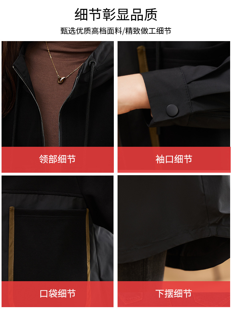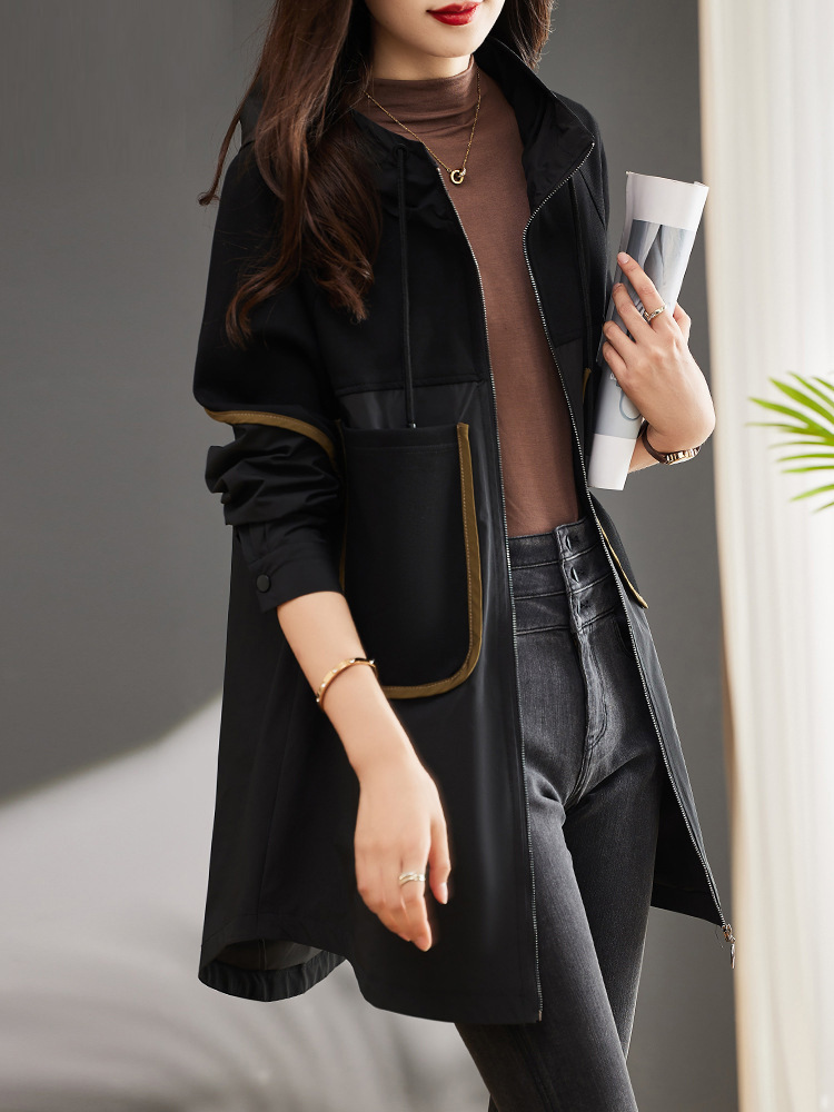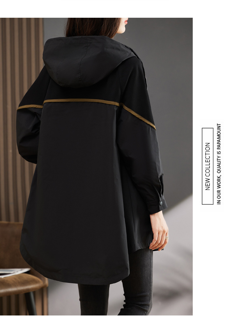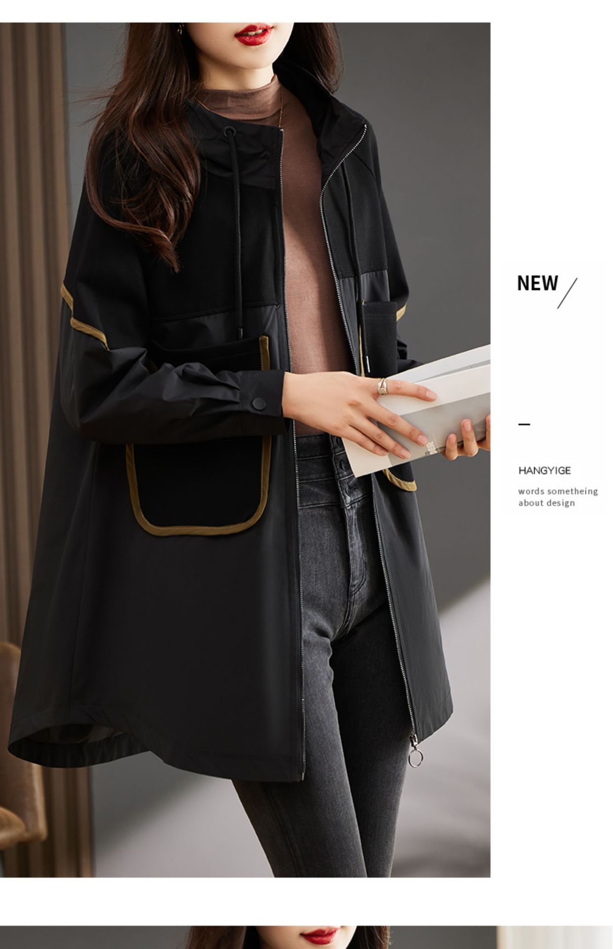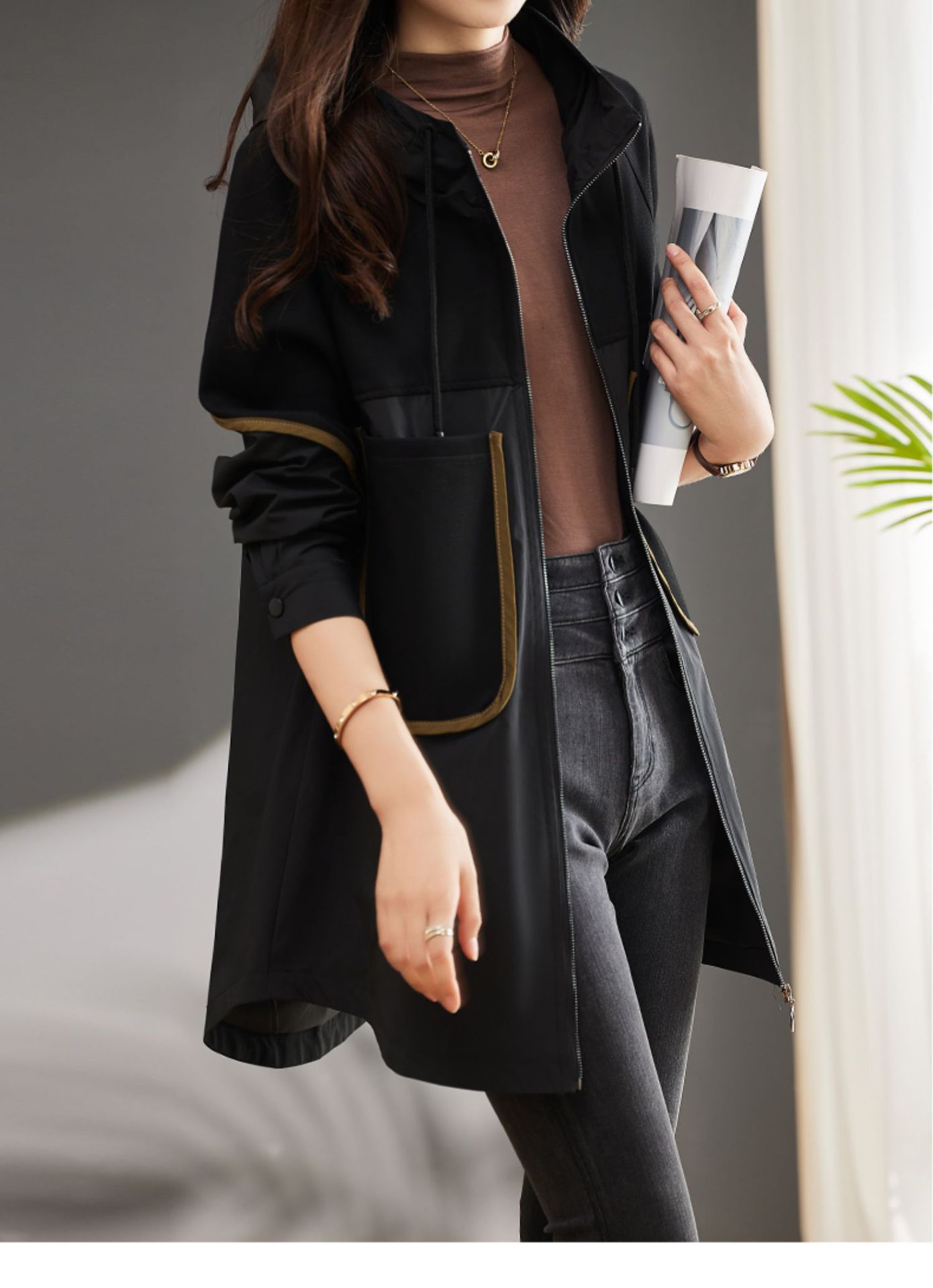 Áo khoác mỏng dành cho nữ, thiết kế dáng dài vừa phải phù hợp với nhiều chiều cao. Chất liệu nhẹ, mềm mại mang lại sự thoải mái khi mặc vào tiết trời mùa xuân hay mùa thu. Sản phẩm có mũ trùm tiện lợi và túi rộng, kiểu dáng năng động. Màu đen dễ dàng phối với nhiều trang phục khác nhau. Có thể mặc như áo khoác ngoài hàng ngày, giúp chắn gió và giữ ấm nhẹ. | Tên sản phẩm: Áo Khoác Nữ Mũ Liền Hàng Mùa Xuân Thu Đông - Thời Trang Nữ | Mã sản phẩm: B9171 - Giá: 1.540.000đ | Mã nhà sản xuất: WODIG-G04Hình ảnh sản phẩm