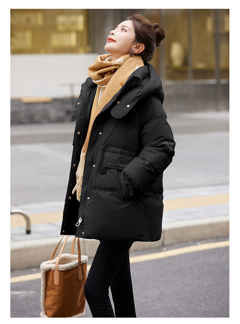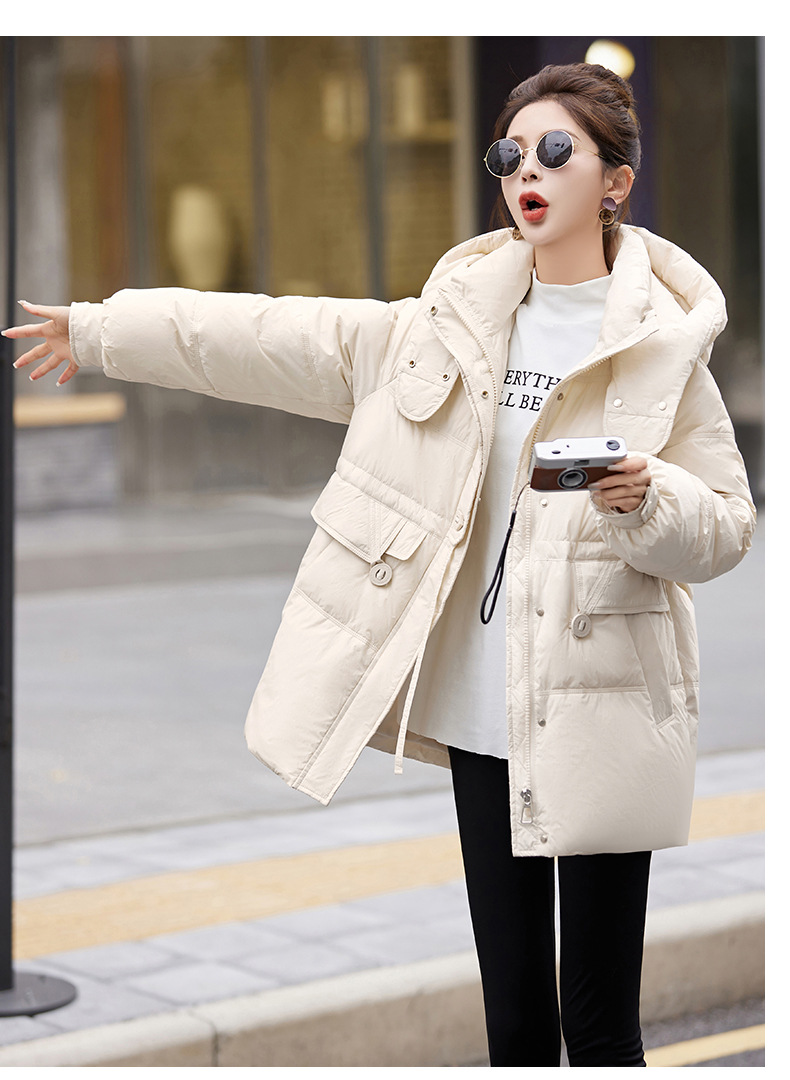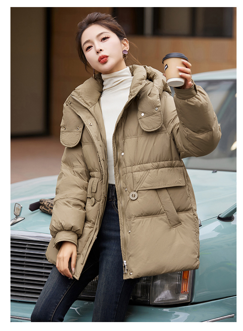 Áo khoác nữ dáng dài có mũ, thiết kế trẻ trung và hiện đại. Sản phẩm sử dụng lớp lông vũ tự nhiên bên trong, giúp giữ ấm tốt cho những ngày thời tiết lạnh giá. Áo có phần mũ trùm đầu tiện lợi và túi rộng để giữ ấm đôi tay. Bạn có thể mặc áo khi đi làm, đi học hoặc tham gia các hoạt động ngoài trời. Chất liệu nhẹ và ấm, tạo cảm giác thoải mái và dễ chịu khi mặc cả ngày. | Tên sản phẩm: Áo Khoác Nữ Mũ Liền Dày Ấm Hàng Mùa Xuân Thu Đông - Thời Trang Nữ | Mã sản phẩm: B9201 - Giá: 4.200.000đ | Mã nhà sản xuất: HADG-G06Hình ảnh sản phẩm