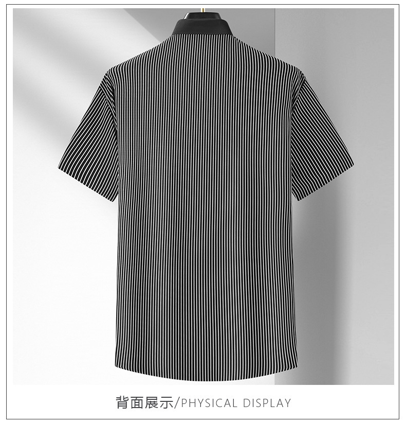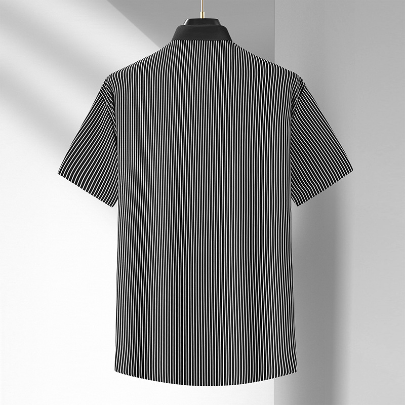 Áo thun ngắn tay dành cho nam, có form dáng rộng rãi thoải mái. Sản phẩm có các sọc dọc, chất vải mát lạnh và mềm mại, tạo cảm giác dễ chịu khi mặc. Kiểu dáng phù hợp cho môi trường công sở hoặc dùng hàng ngày. Mặc kèm với quần tây hoặc quần jean đều phù hợp. Dễ dàng giặt sạch và bảo quản như các loại áo thun thông thường. | Tên sản phẩm: Áo Sơ Mi Nam Big Size Ngoại Cỡ Ngắn Tay Hàng Mùa Hè Trung Niên - Thời Trang Nam | Mã sản phẩm: B9203 - Giá: 1.090.000đ | Mã nhà sản xuất: SUDER-G03Hình ảnh sản phẩm