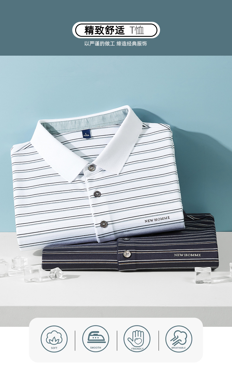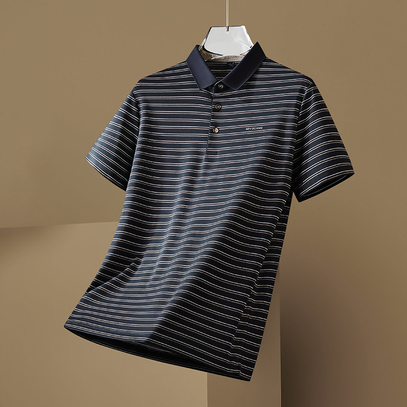 Áo thun cổ bẻ dành cho nam, kiểu dáng polo với các sọc ngang. Sản phẩm được thiết kế dành cho những người có thân hình mập mạp, mang đến sự thoải mái và vừa vặn. Chất vải mềm mại, thấm hút mồ hôi tốt, phù hợp cho những ngày hè oi bức. Bạn có thể mặc đi làm, dạo phố hay trong các sinh hoạt hằng ngày. Dễ dàng phối hợp với quần shorts hoặc quần dài để có một diện mật gọn gàng. | Tên sản phẩm: Áo Thun Nam Big Size Ngoại Cỡ Ngắn Tay Kín Cổ Hàng Mùa Hè Trung Niên - Thời Trang Nam | Mã sản phẩm: B9227 - Giá: 1.020.000đ | Mã nhà sản xuất: SUDER-G03Hình ảnh sản phẩm